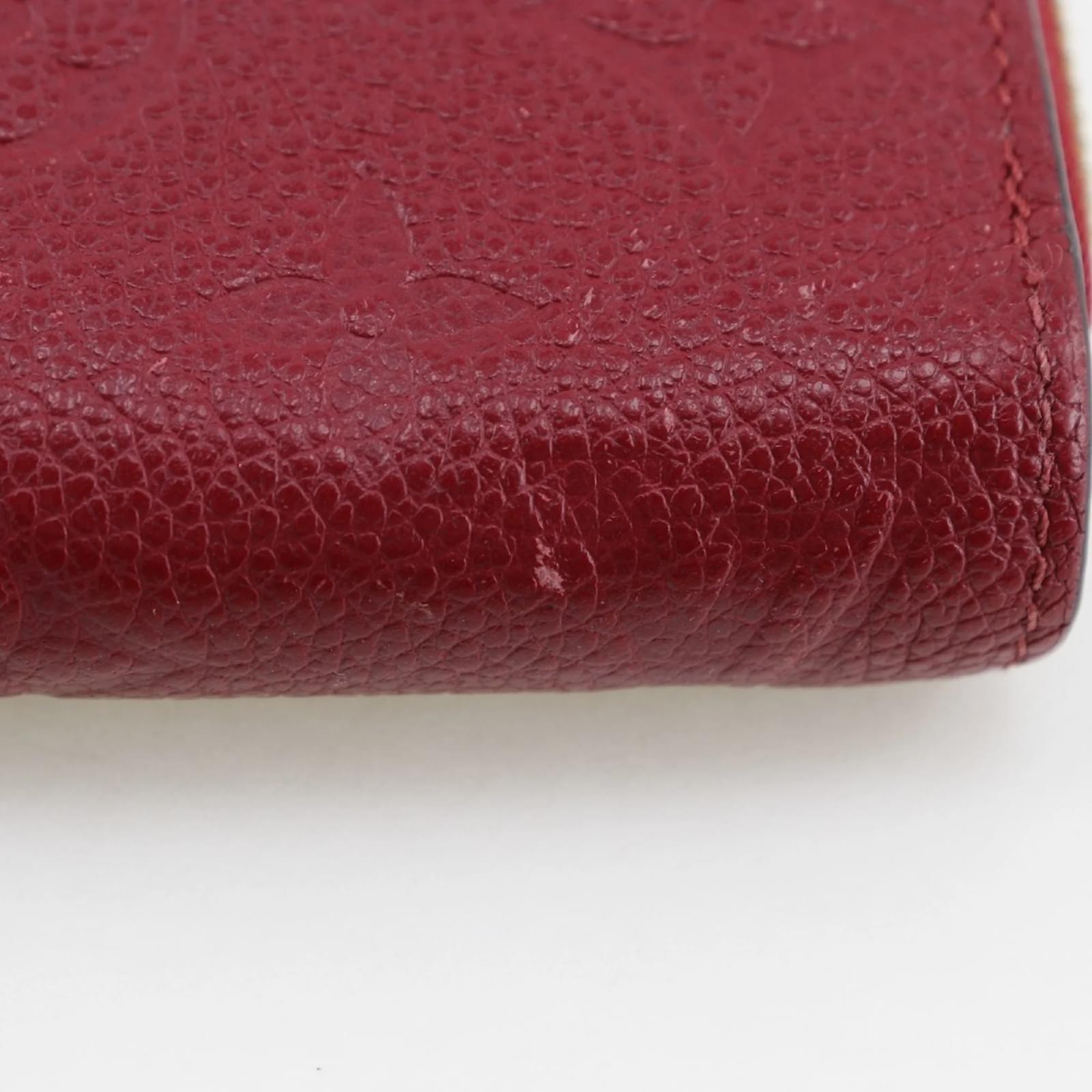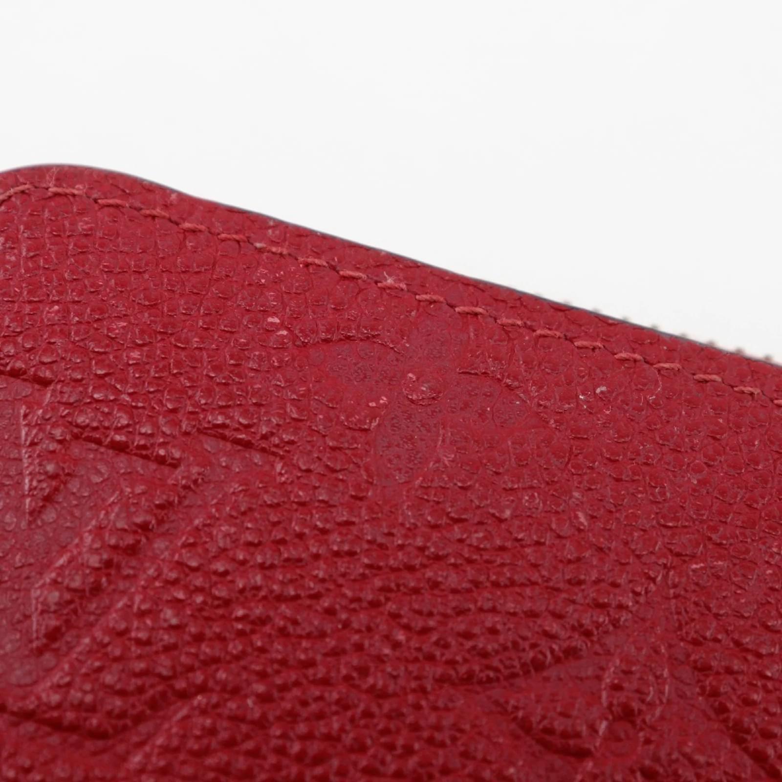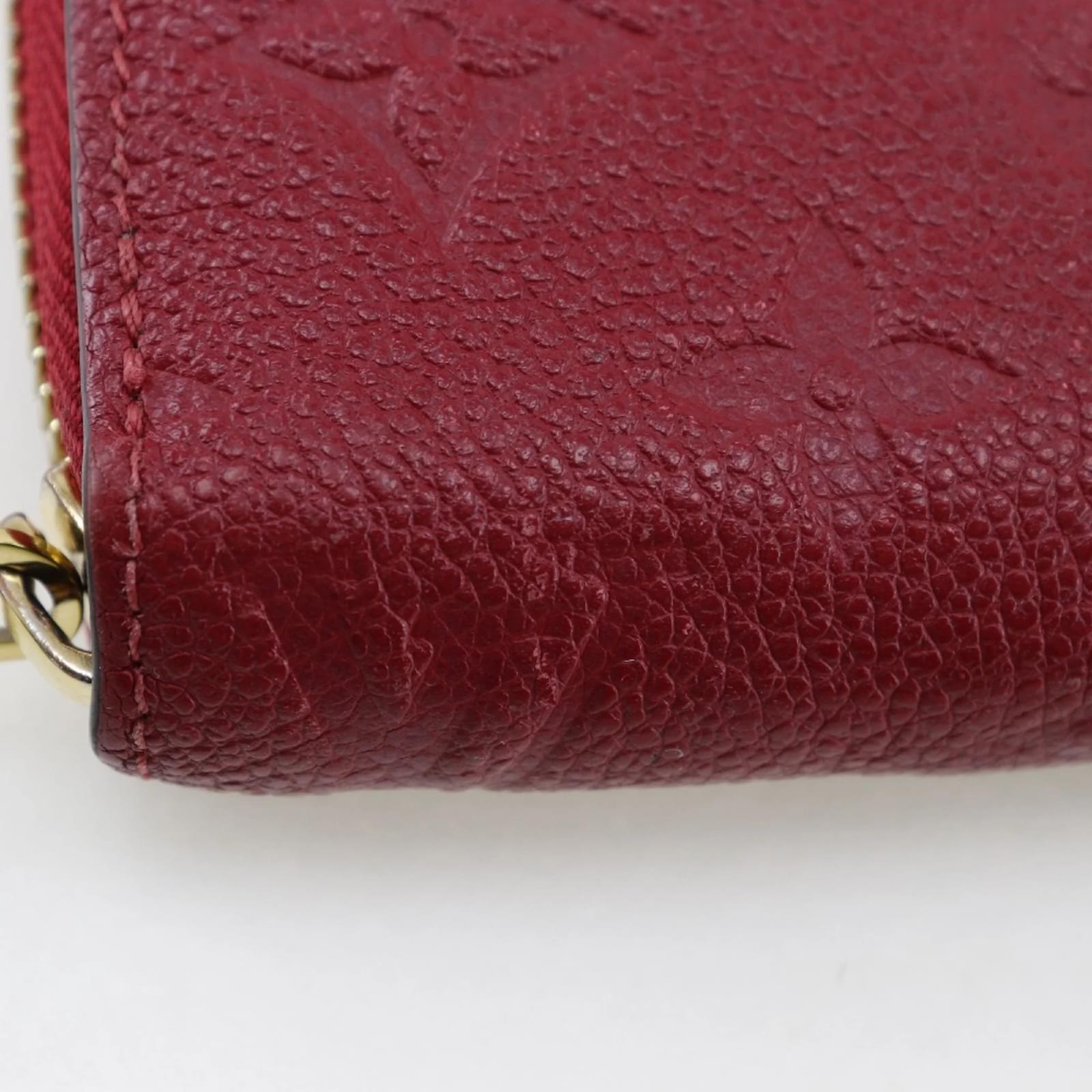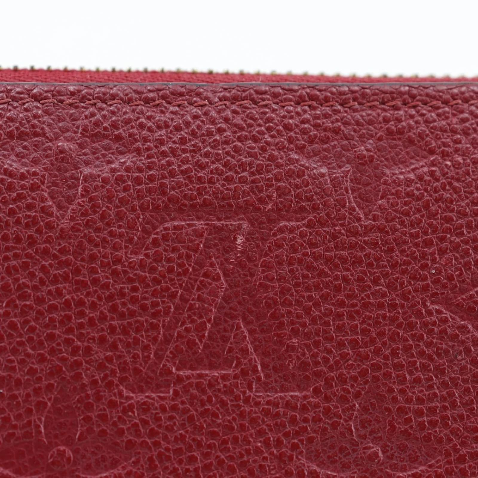 This Louis Vuitton Zippy Wallet, model M60737, features a striking cerise red color crafted from Monogram Empreinte material. Measuring 10.5cm x 19.5cm x 2cm, it is designed to be both stylish and functional. The wallet is categorized as used but is in very good condition, with only slight traces of use, including minor scratches and dirt. It comes with a dust bag for protection. Potential buyers are encouraged to review the images for a detailed view of the item's condition and included accessories.