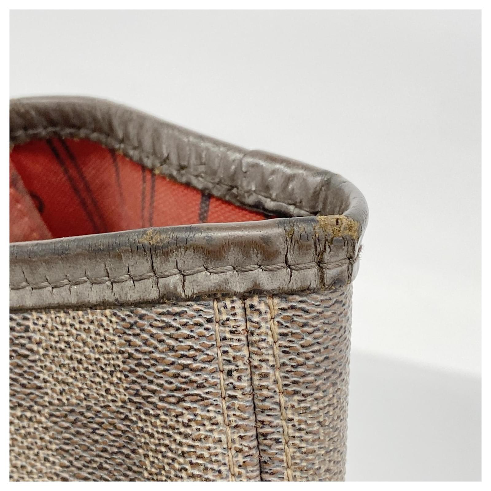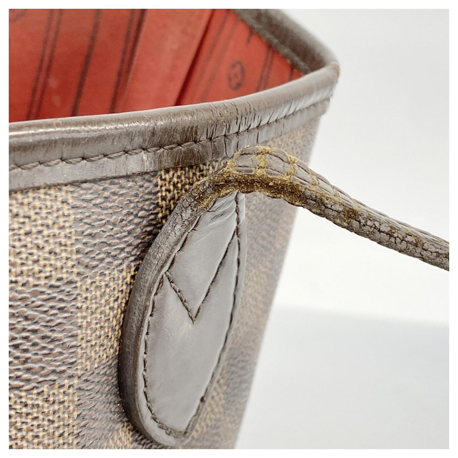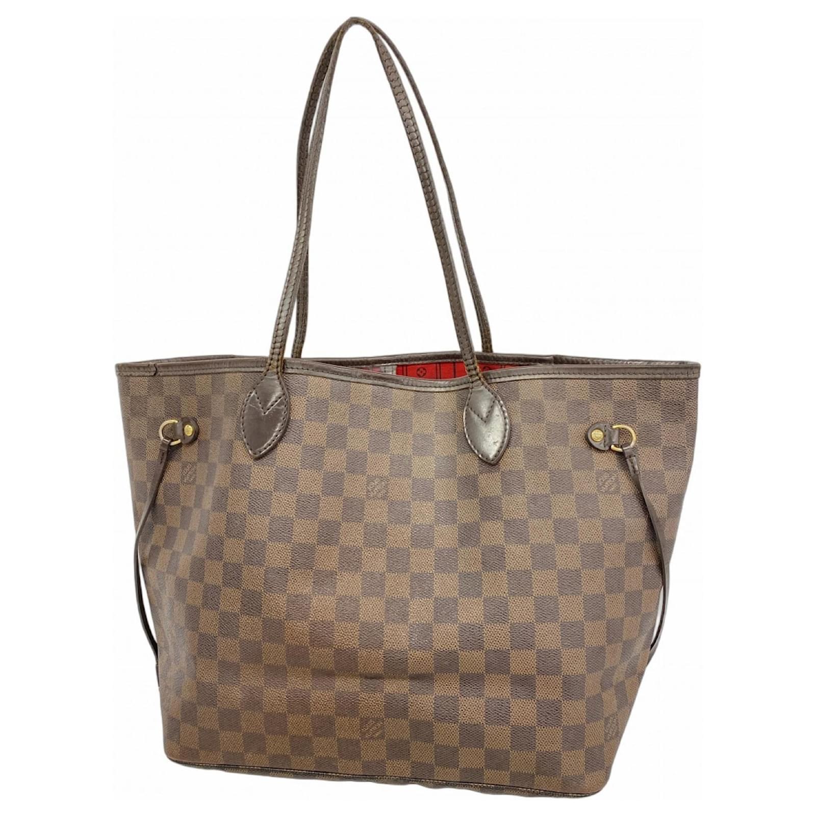 The Louis Vuitton Damier Neverfull MM Tote Bag in Ebene is a stylish choice for everyday use. Measuring 29cm x 32cm x 16cm (11.41'' x 12.59'' x 6.29''), this tote offers ample space for essentials. It is a used item in acceptable condition, showing moderate traces of usage, scratches, and dirt. The bag comes with a dust bag for protection. Customers are advised to review the images before purchasing to understand the item’s condition fully. The bag is part of the renowned Louis Vuitton brand and carries the model number N51105.