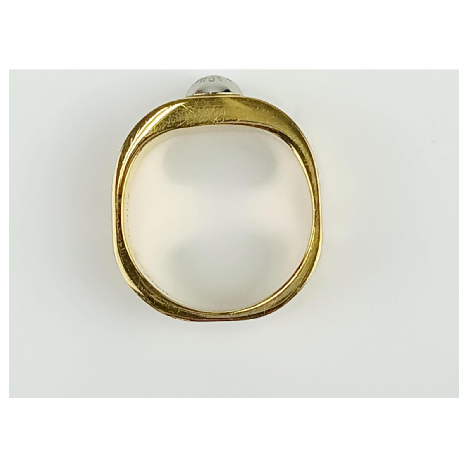 Originating from Italy, this piece is part of the Louis Vuitton brand, known for its luxury items. The ring is classified as used but is in good condition, showing slight traces of use, including minor scratches and dirt. Potential buyers are encouraged to review the provided images for a detailed view of the item's condition and any included accessories.