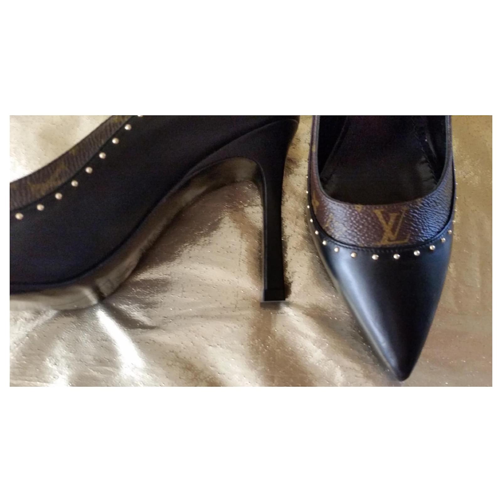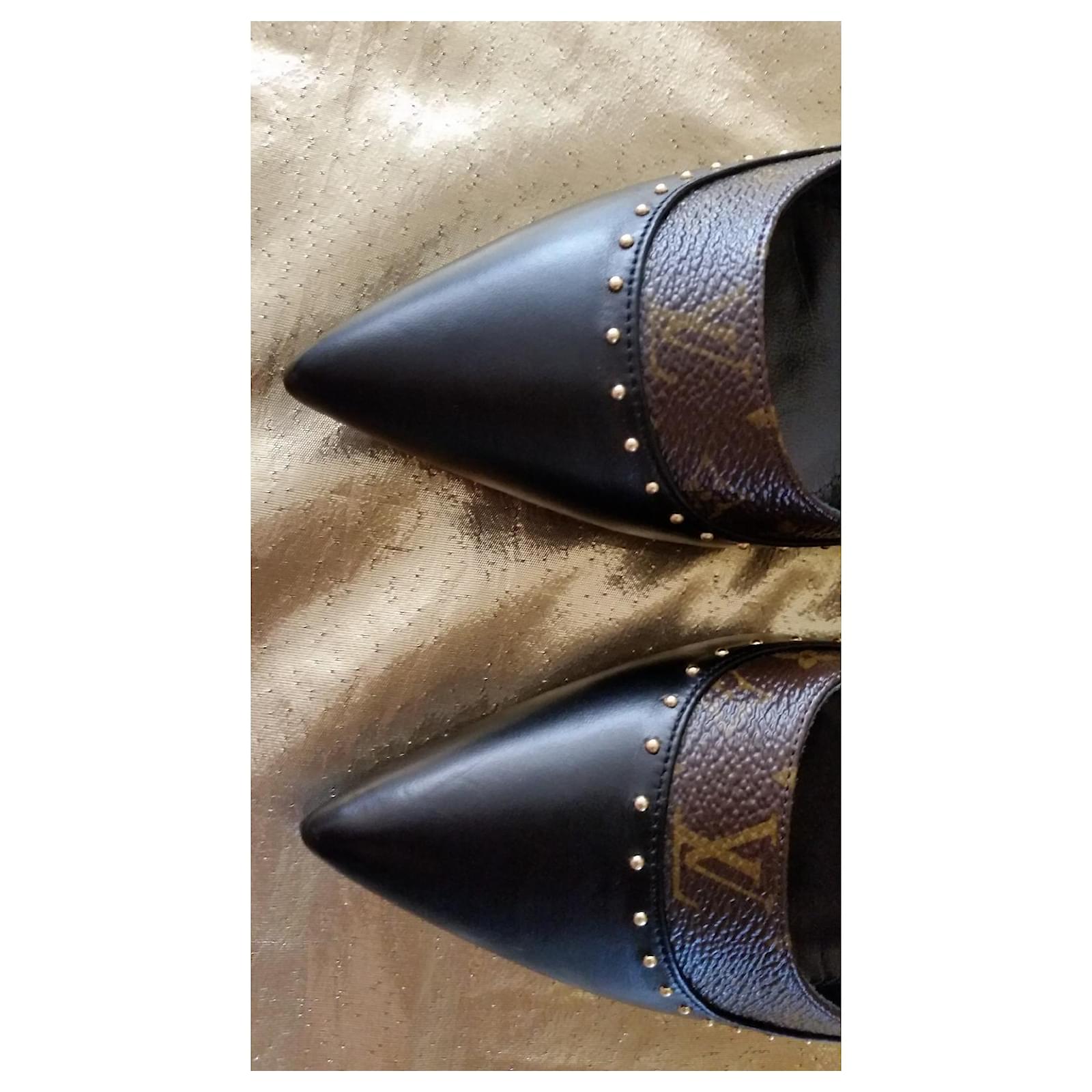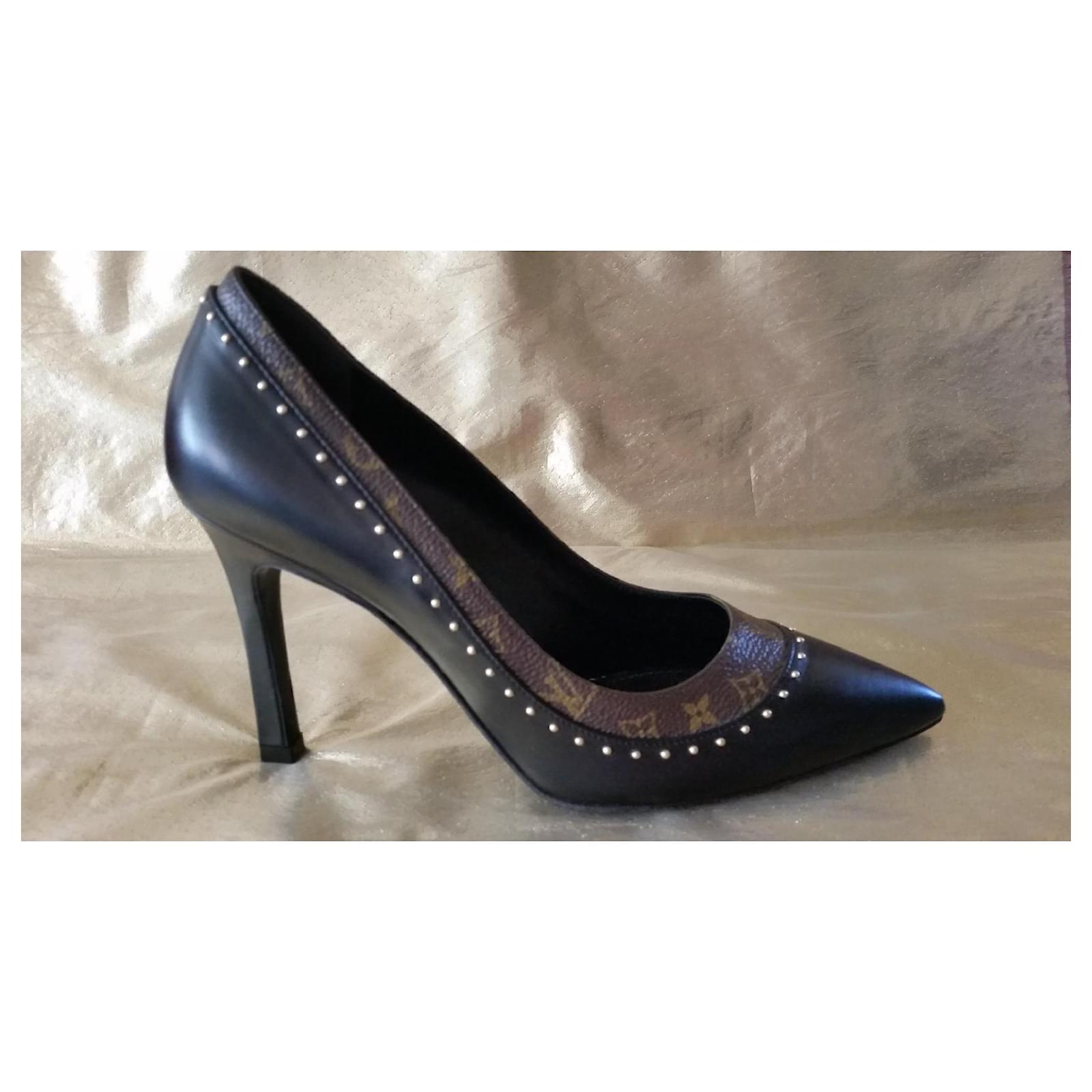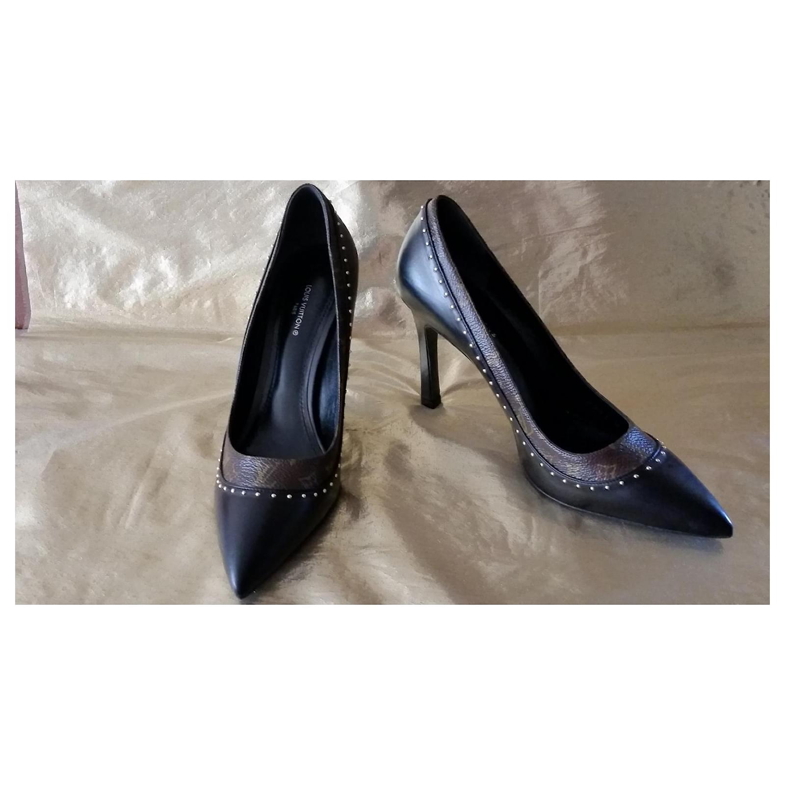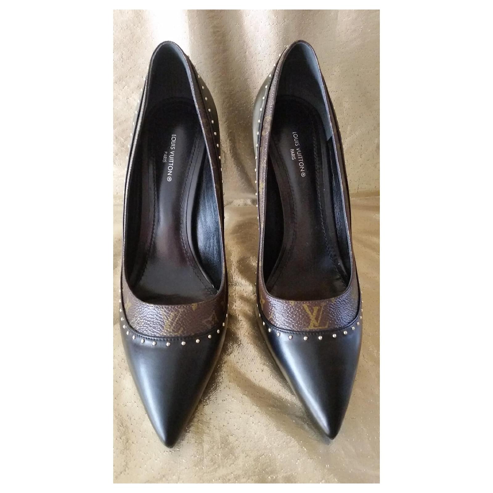 Authentic Louis Vuitton pumps in black and brown leather with the brand's iconic monogram / adorned with gold studs / size 37 / 9.5 cm heels / impeccable condition, new, worn indoors for fitting. Very elegant and comfortable.