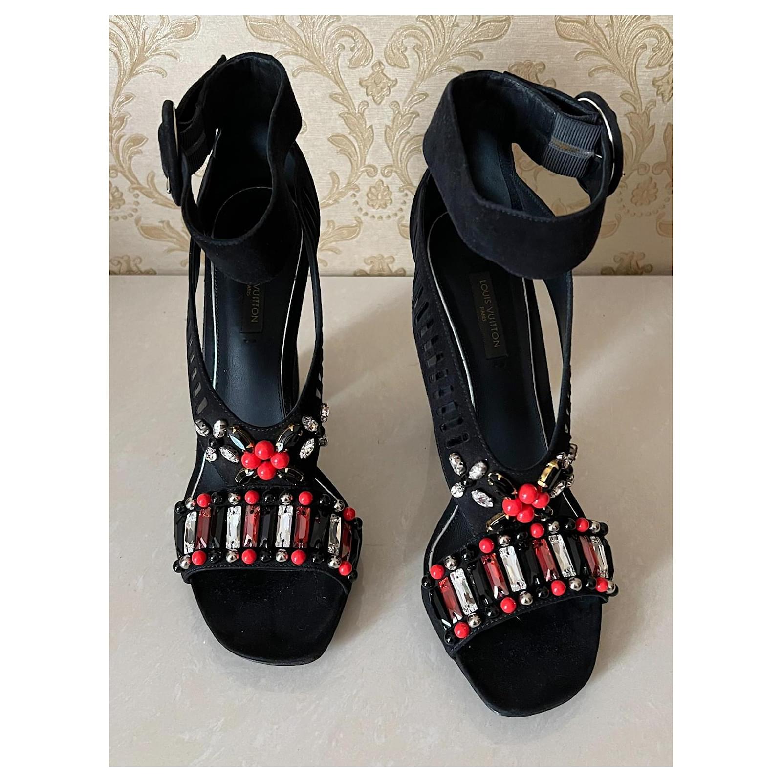 Like new Original LOUIS VUITTON leather shoes Made in ITALY Size 38.5 for 38 Insole length: 25 cm Heel height: 11.5 cm Very beautiful shoes with stones!!!