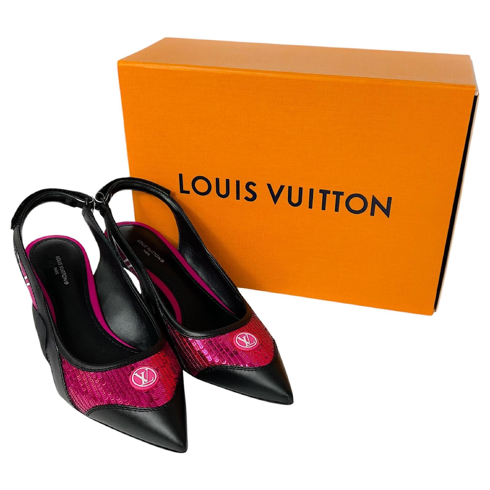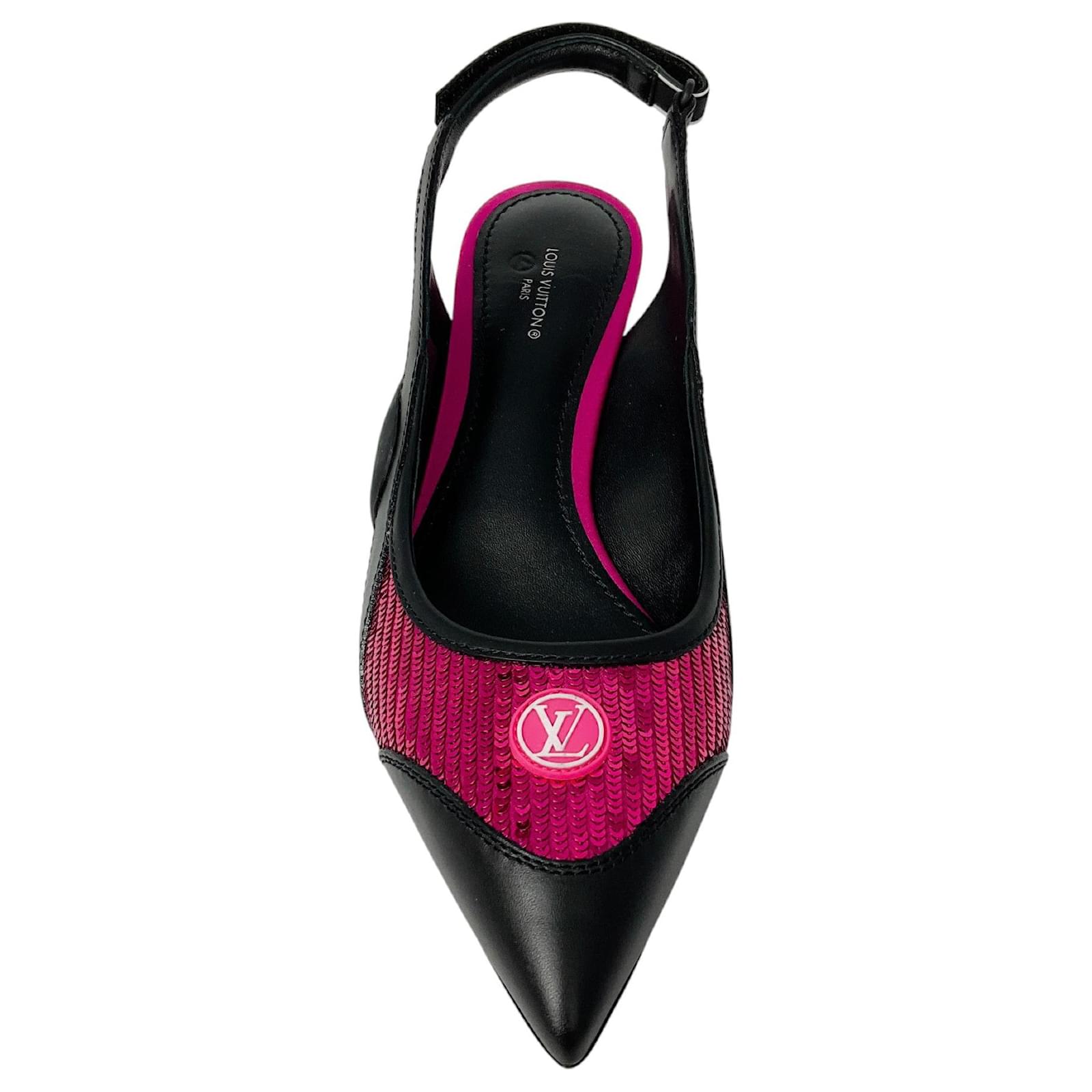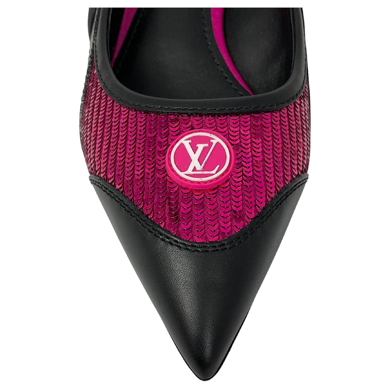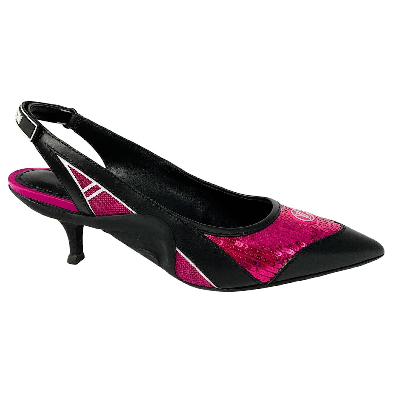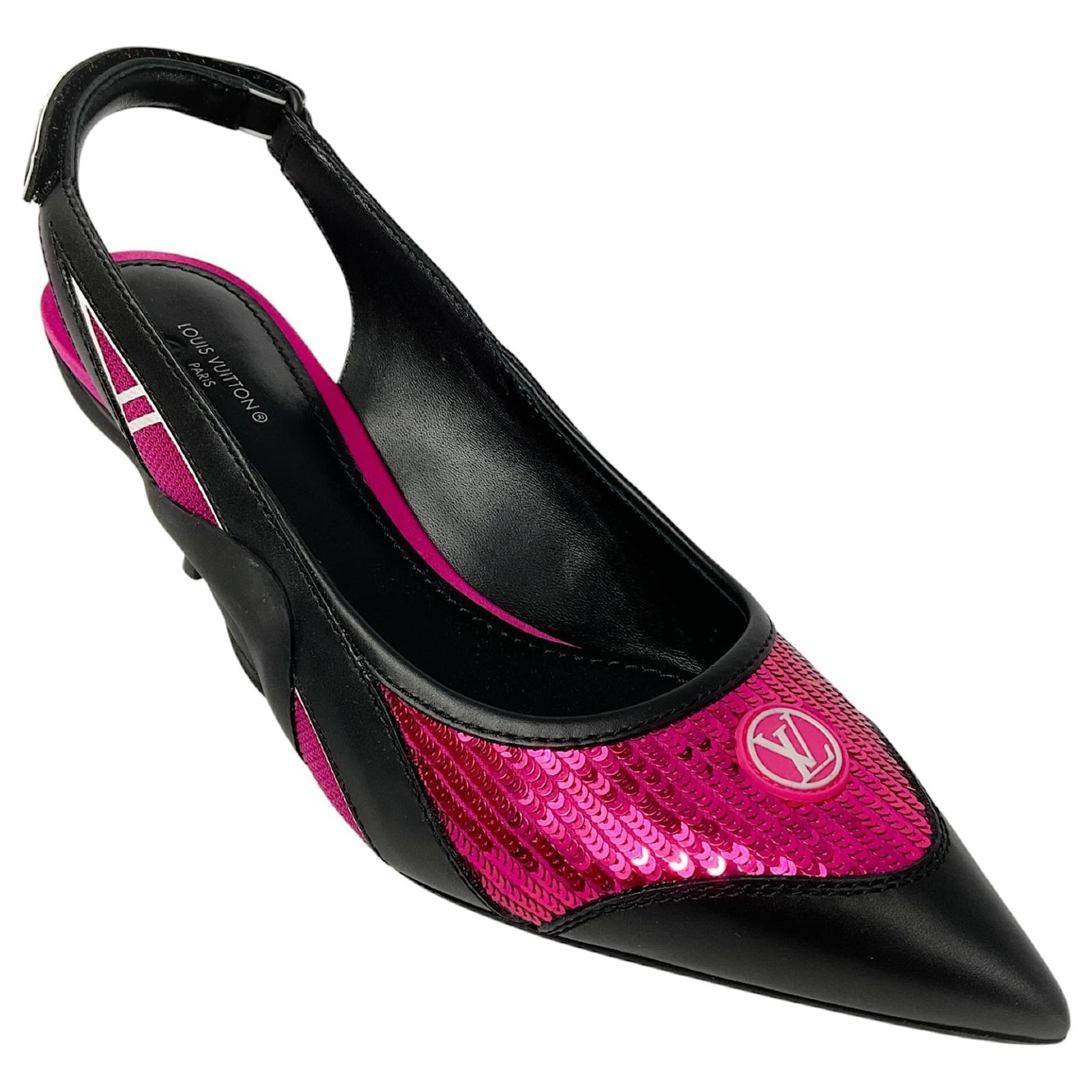 Louis Vuitton Black / Pink Calfskin Sequin Archlight Slingback Pumps