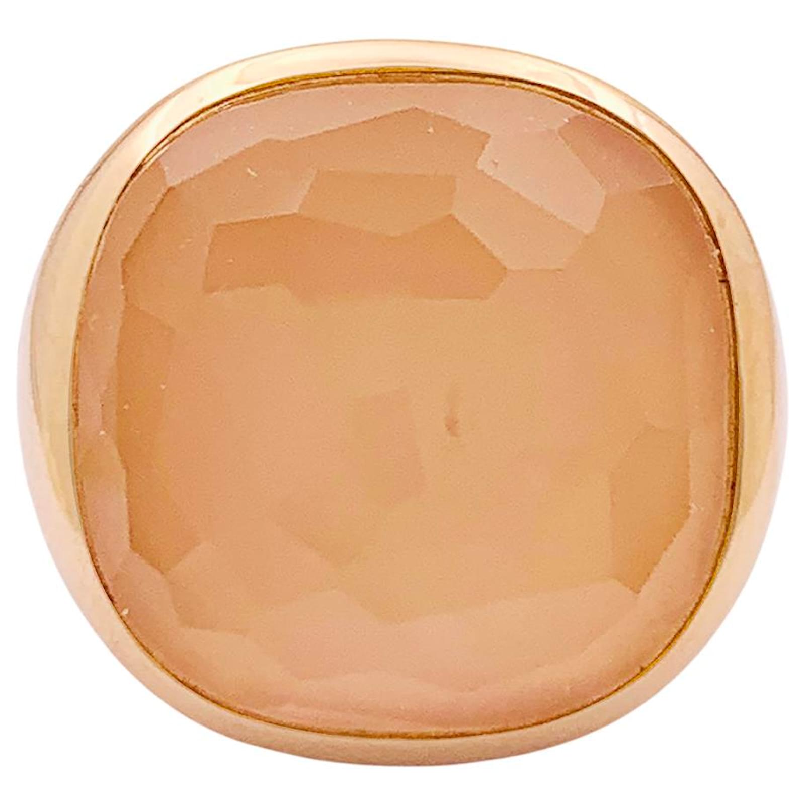 A ring signed by the Pomellato House in 750/000 rose gold, from the 'Cipria' collection, centered with a faceted rose quartz.Small model.