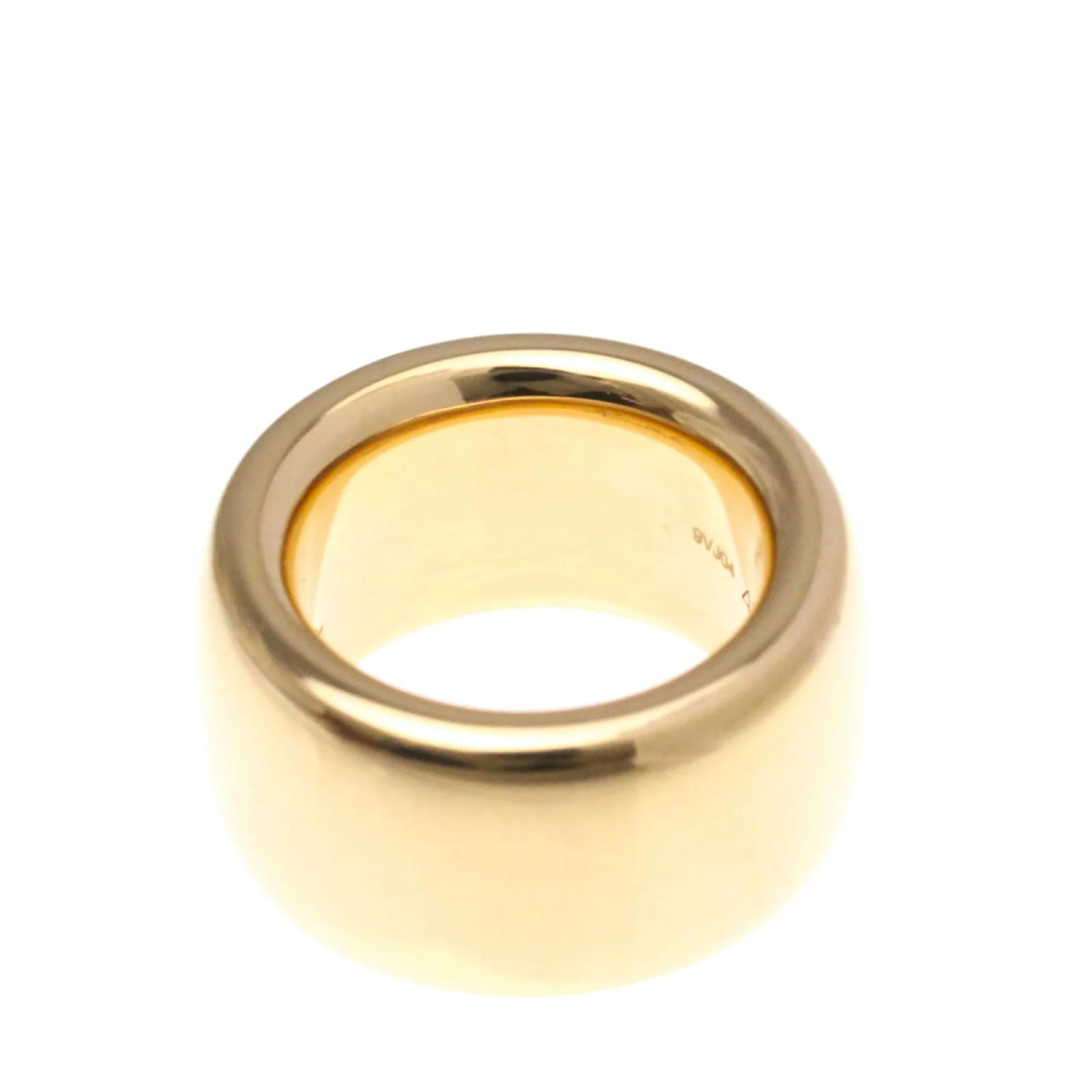 The Pomellato Iconica Band Ring is crafted from 18K pink gold, showcasing a fashionable design without any stones. This medium-large size ring, identified by model code PAC4002_O7000_00000, features a width of 12.4mm and weighs 14g.