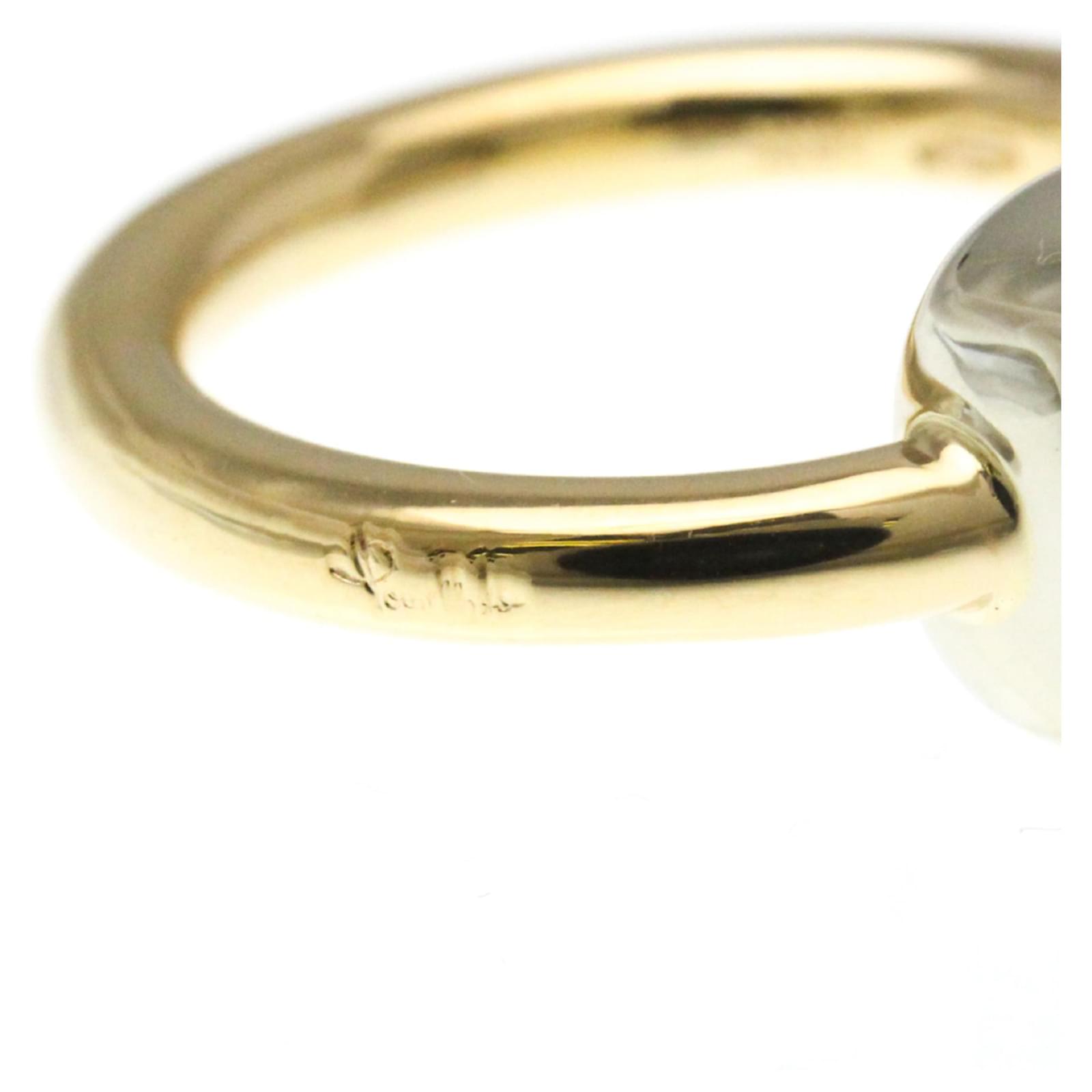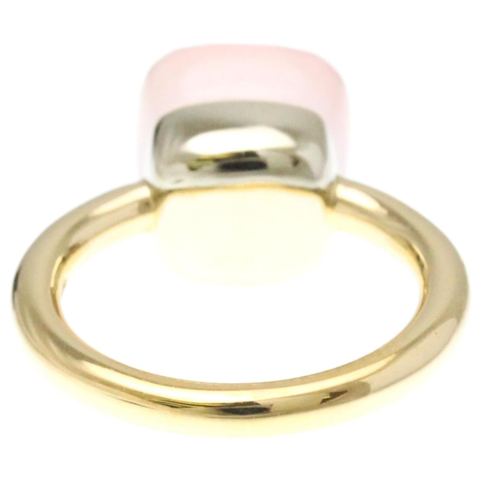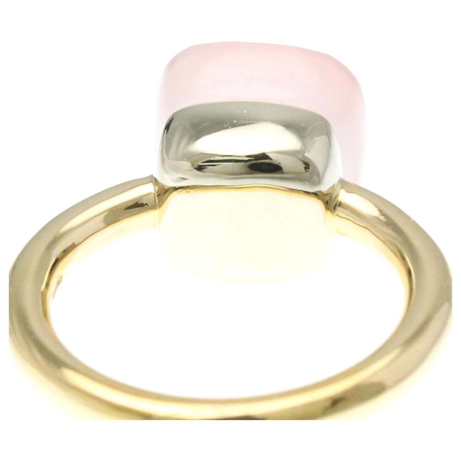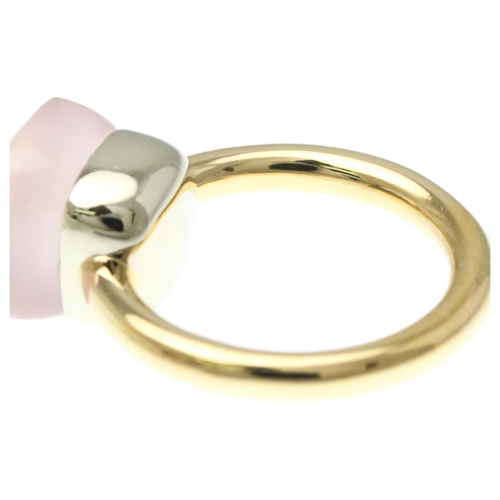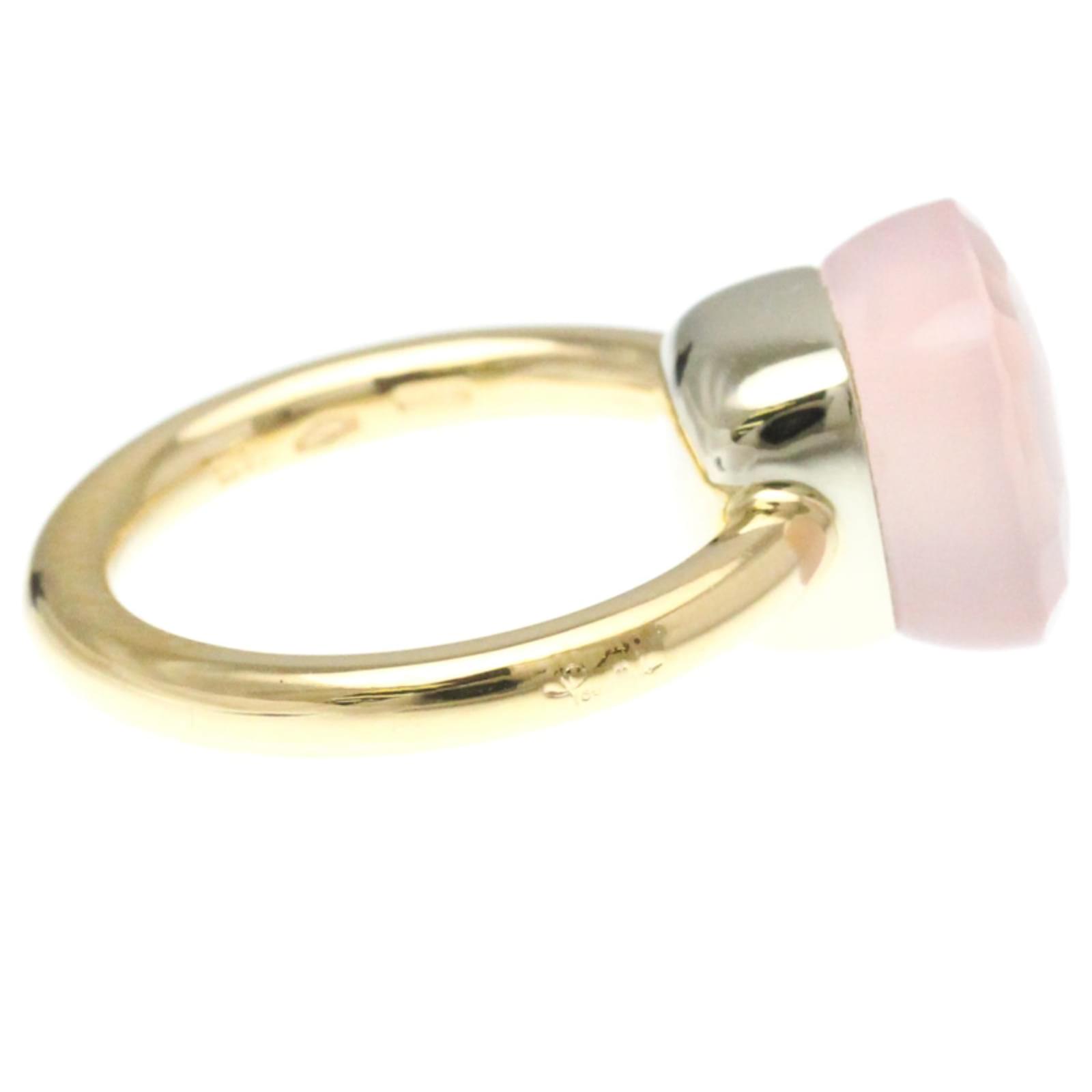 This beautiful band ring by Pomellato features a striking combination of pink gold and silver, crafted from 18K gold and white gold. The design is characterized by a prominent rose quartz stone, measuring 10.60mm by 10.60mm. With a weight of 7.7 grams, the ring is offered in a US size 6 and JP size 11.