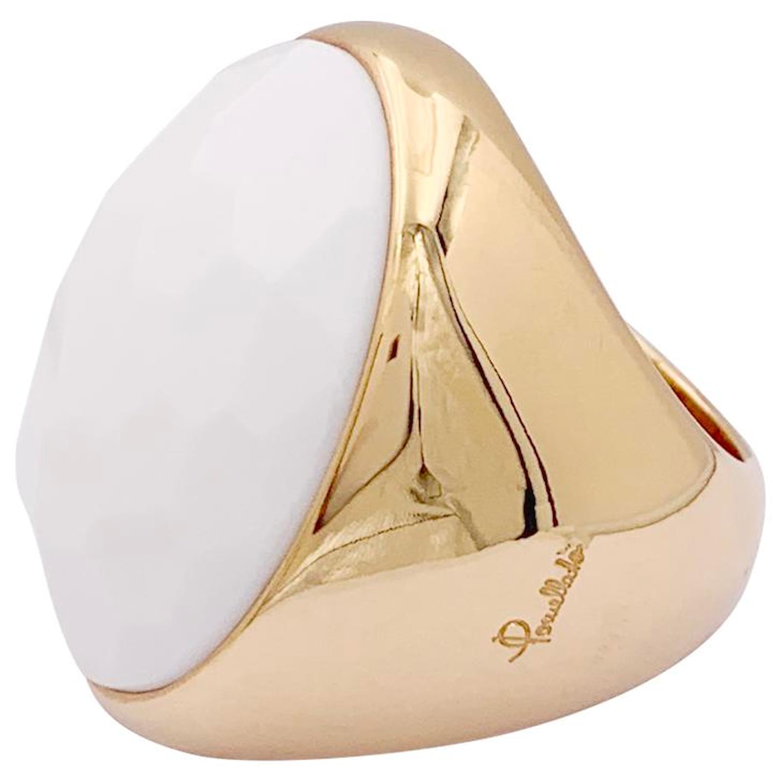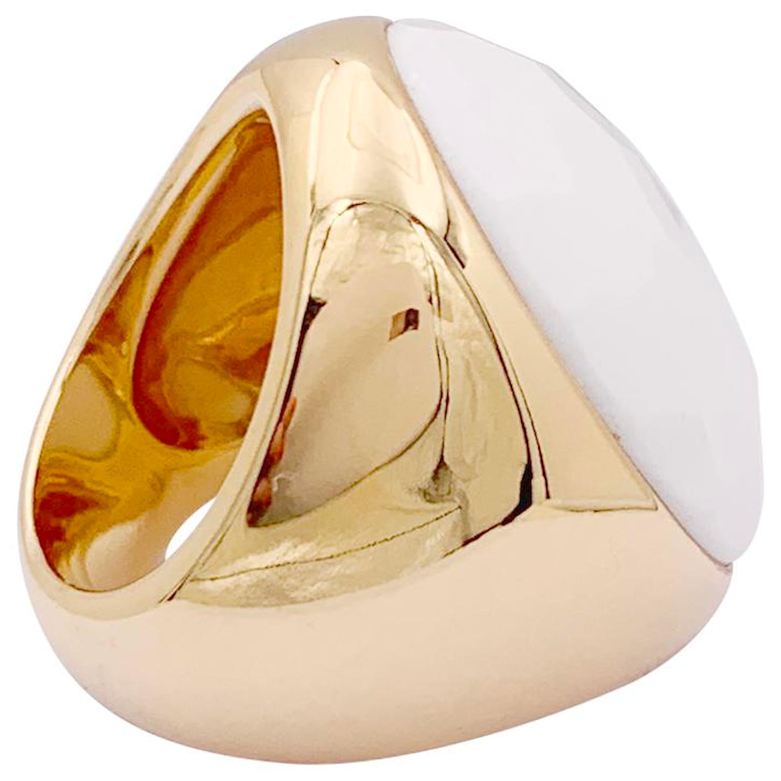 A ring signed by the Pomellato House, 'Victoria' collection in 750/000 rose gold set with a faceted cabochon of cacholong.Width: 22 mmWeight: 27.2 gramsNew price: 5800Ring size: 52