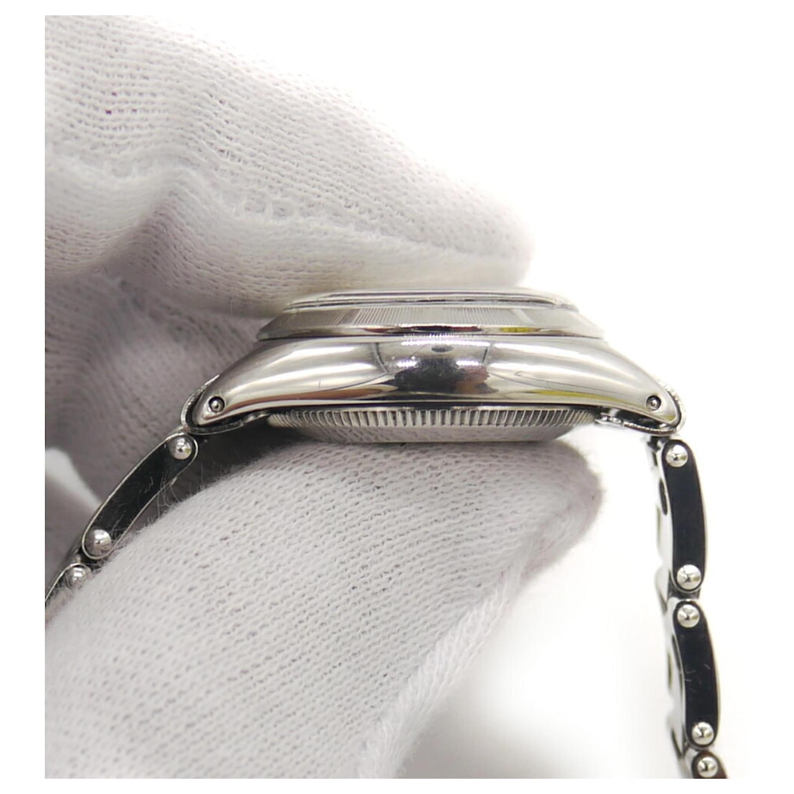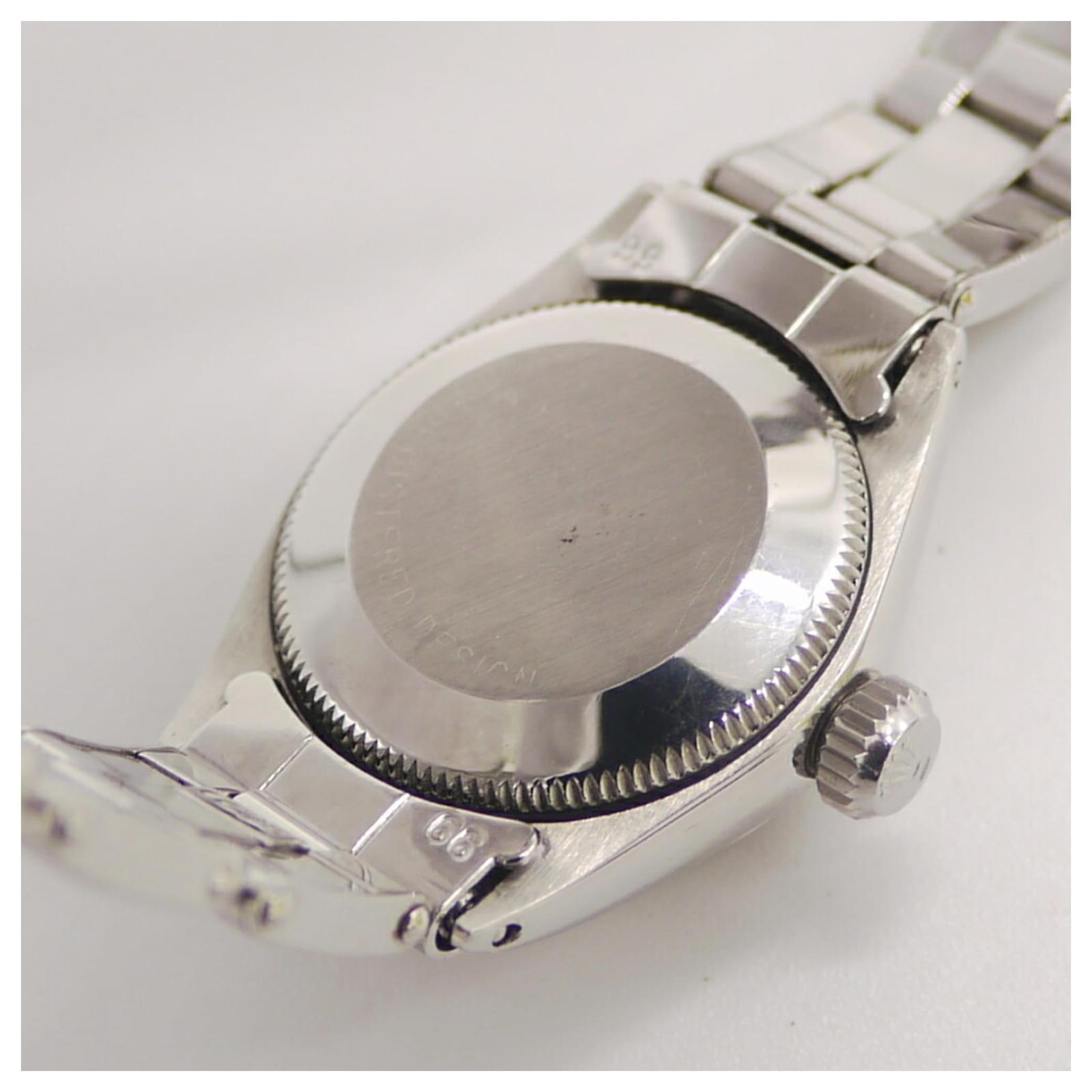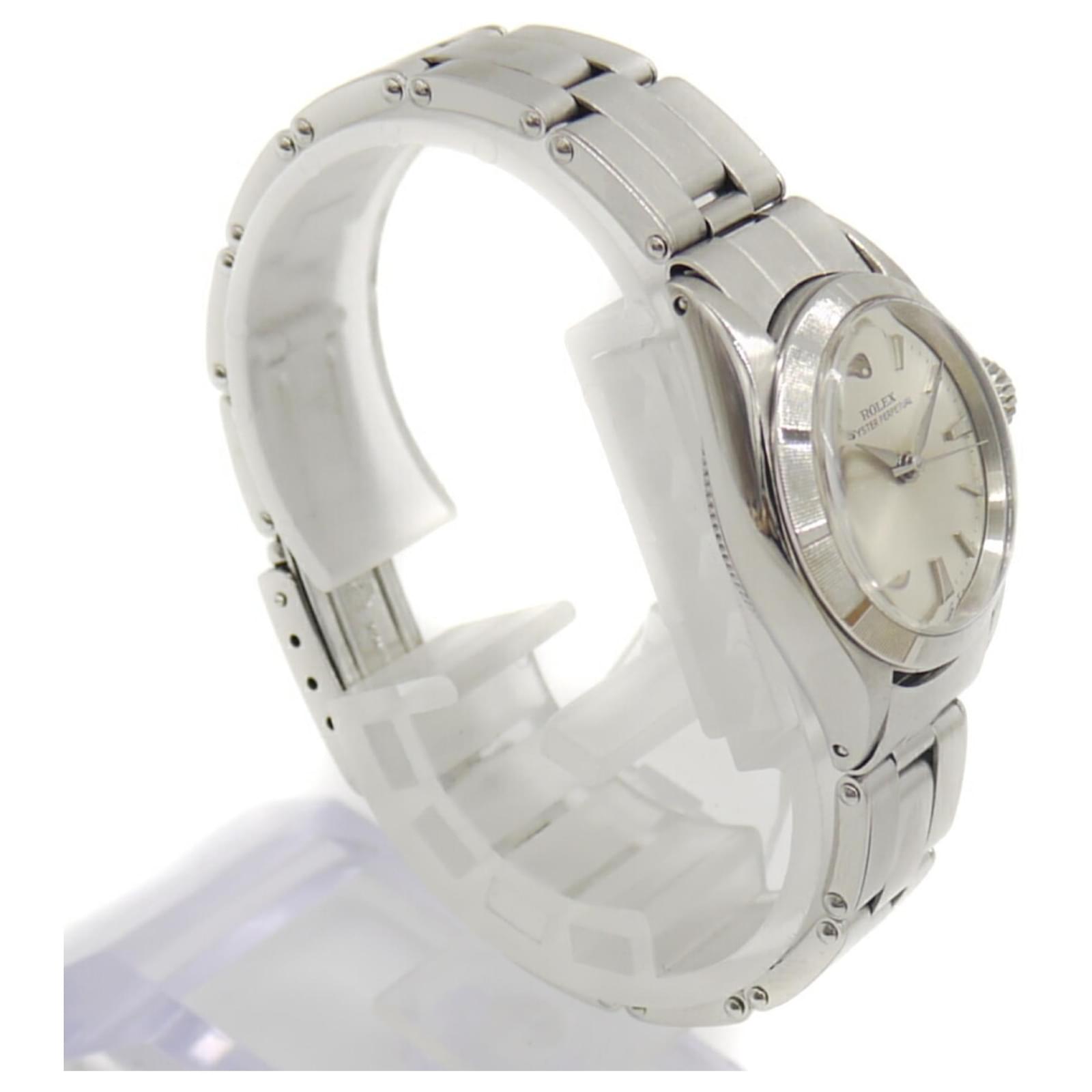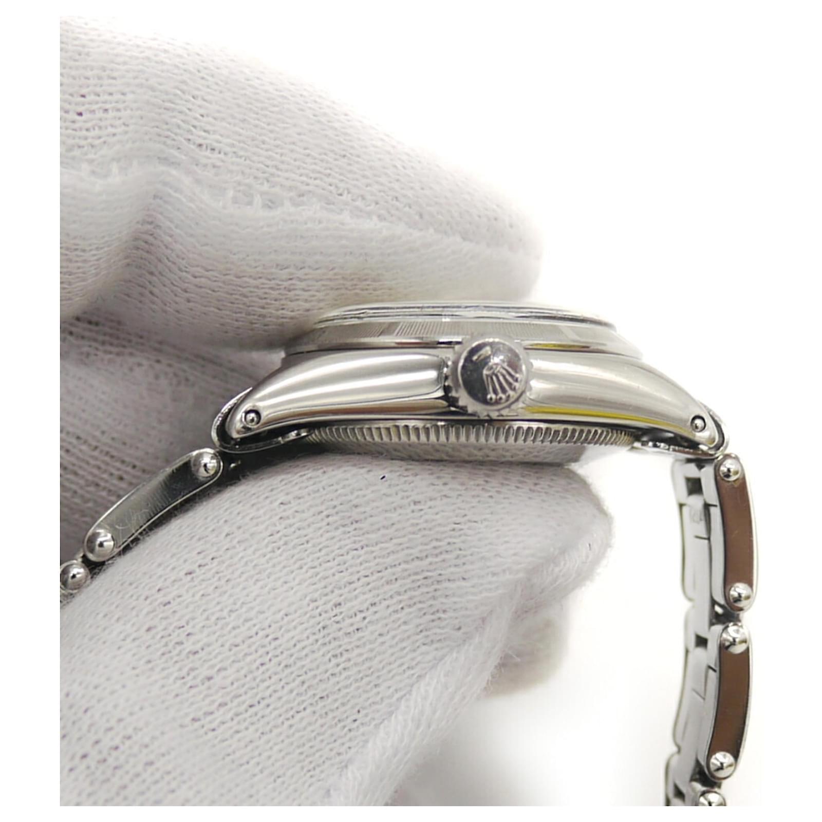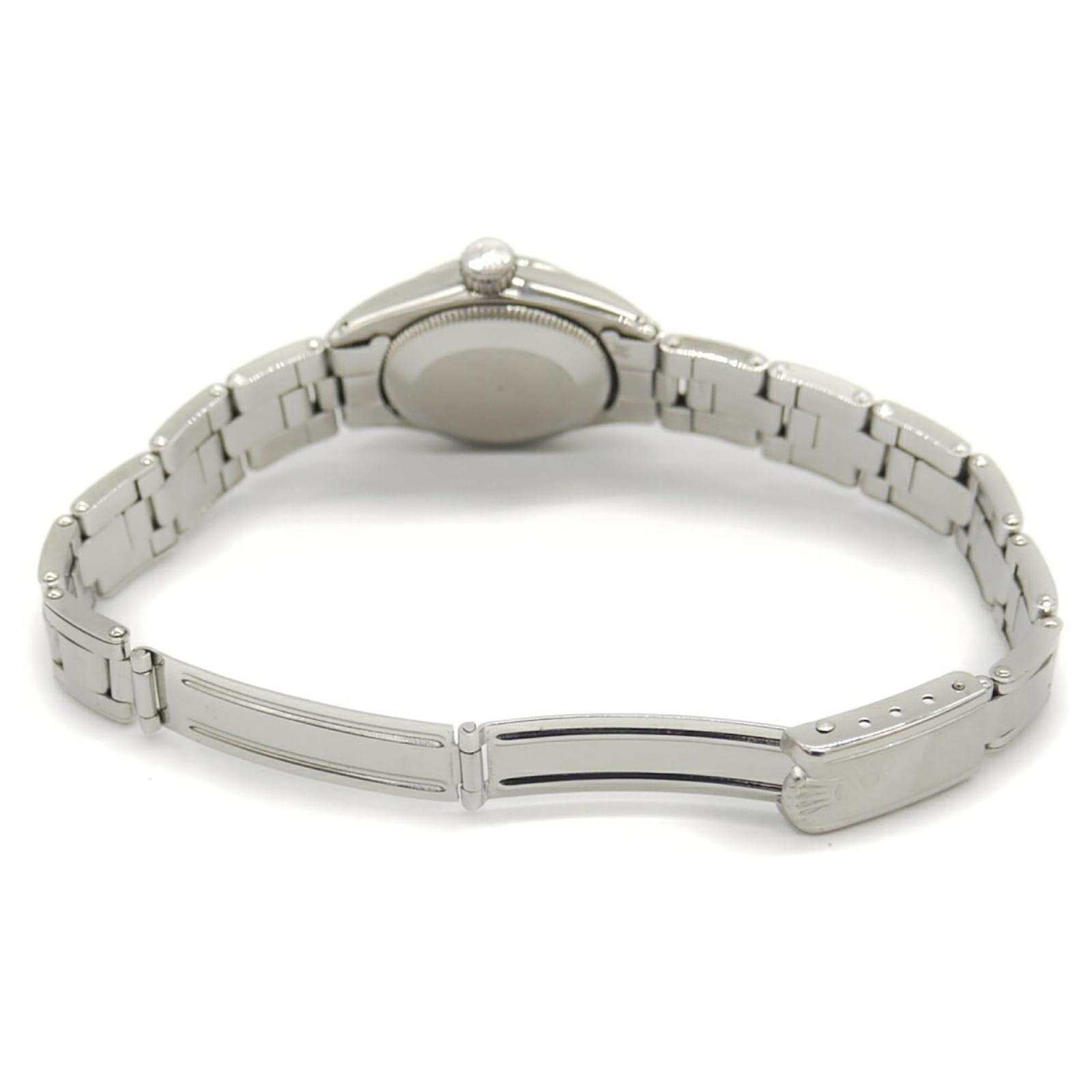 The Rolex Oyster Perpetual 6623 is a women's wristwatch featuring a silver dial and a stainless steel case and band. With a case diameter of 26mm, this timepiece is powered by a self-winding automatic movement. It is classified as used but remains in good condition, showing slight traces of wear such as minor scratches on the bezel, case, and band. The watch comes with both inner and outer boxes. This model is made in Switzerland and is identified by the MPN 6623. Before purchasing, it is advisable to review the images for a detailed view of the watch's condition and included accessories.