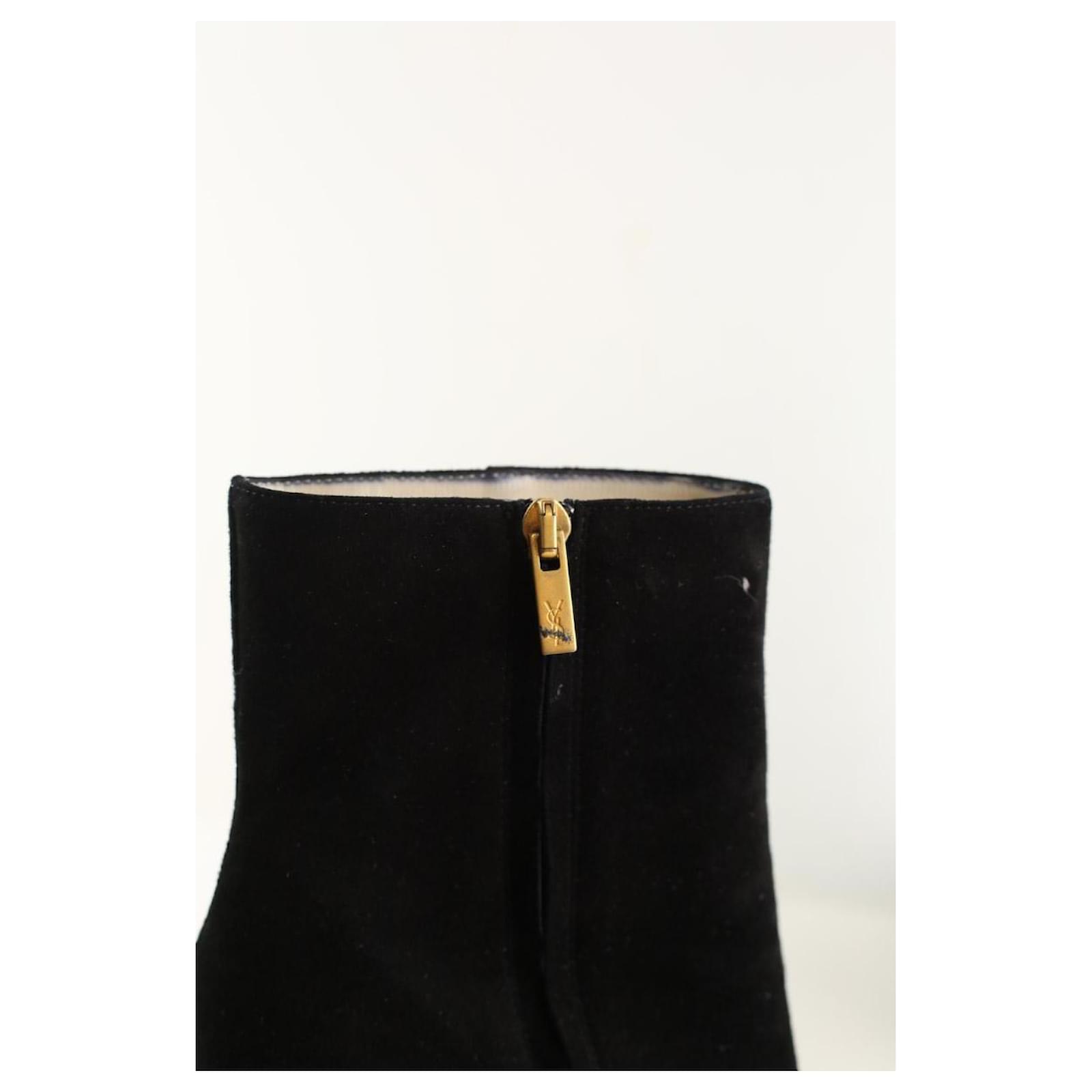 Second-hand black Saint Laurent boots. Main material suede. Size 39. Heel height: 12cm. Women's collection. Good condition. Light signs of wear. Reference: 043300022.
