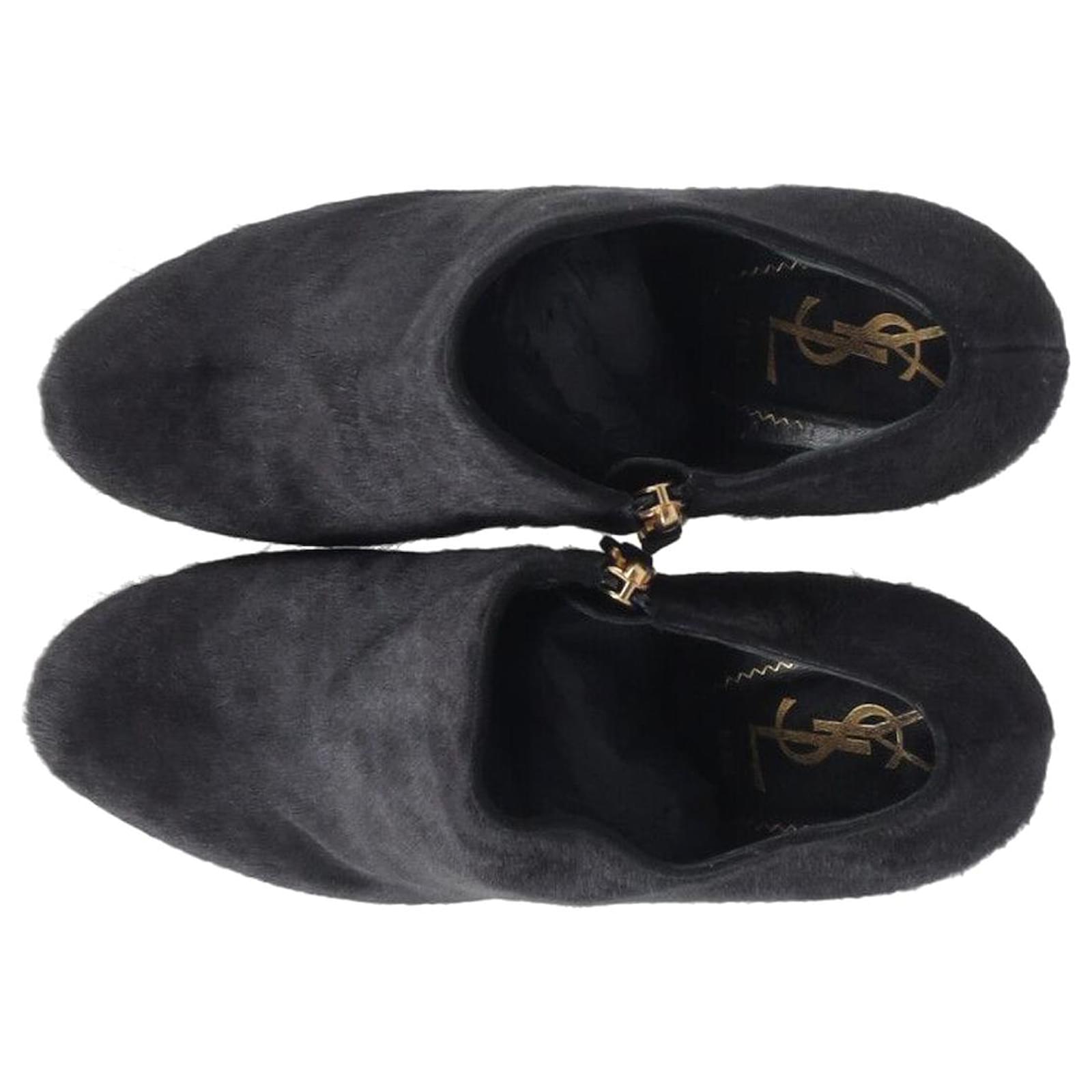 Saint Laurent Animal Print Platform Ankle Boots in Black Pony Hair