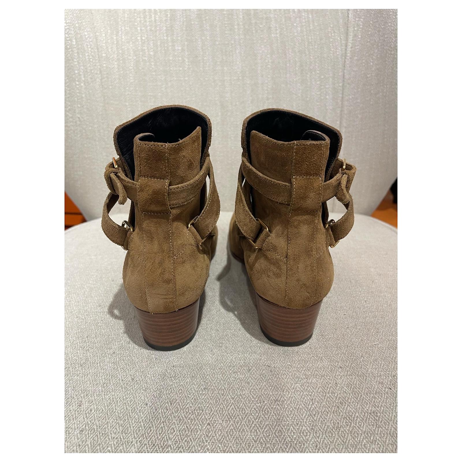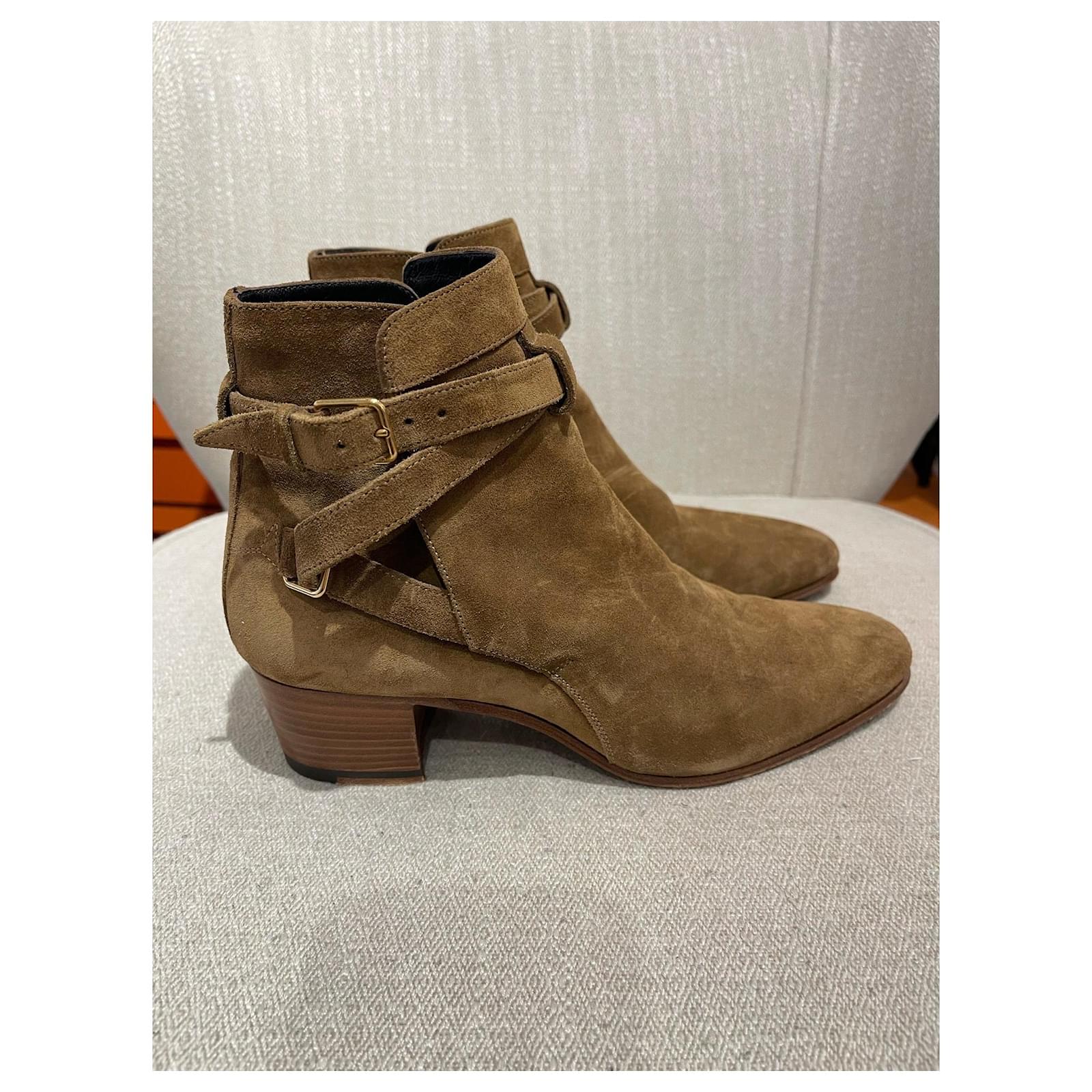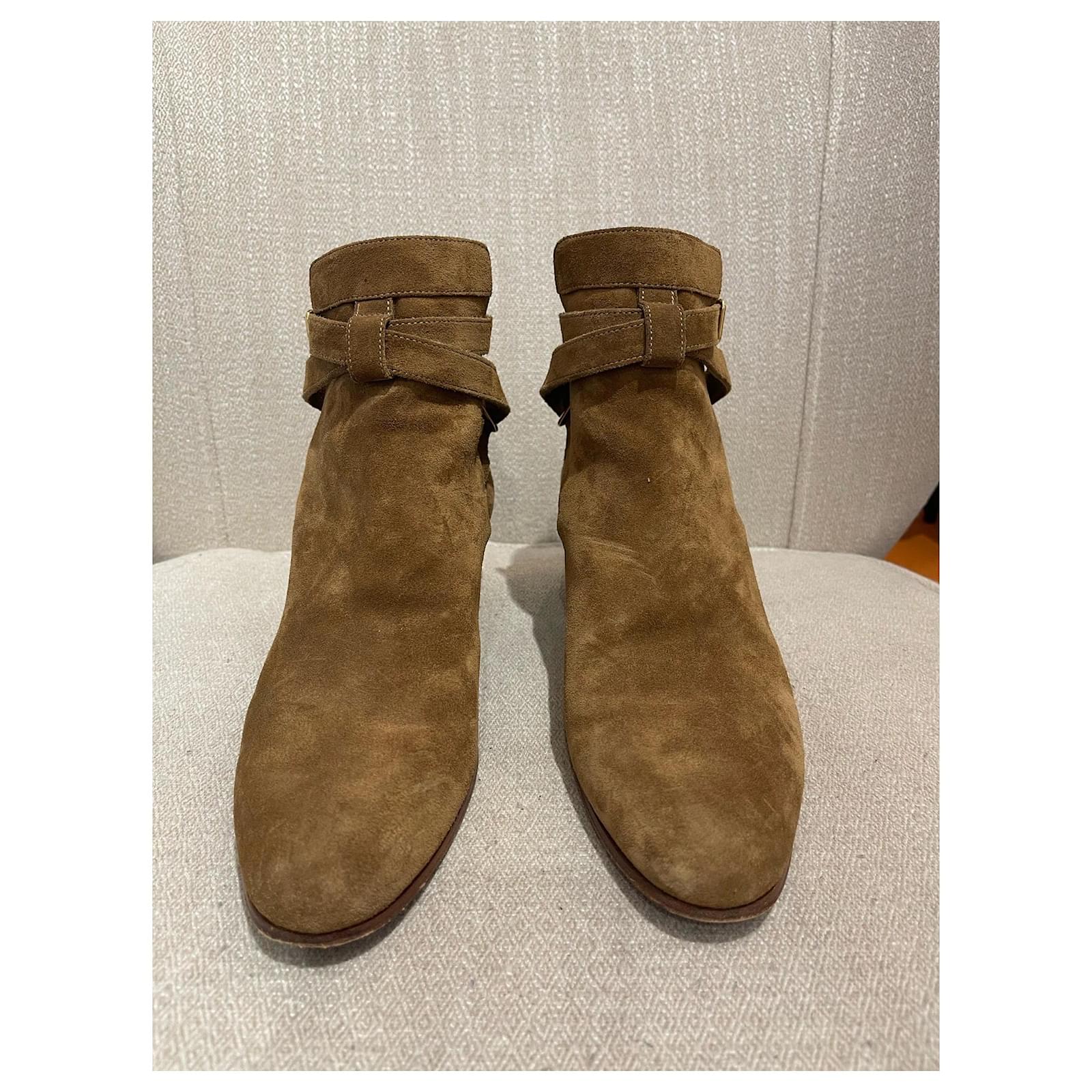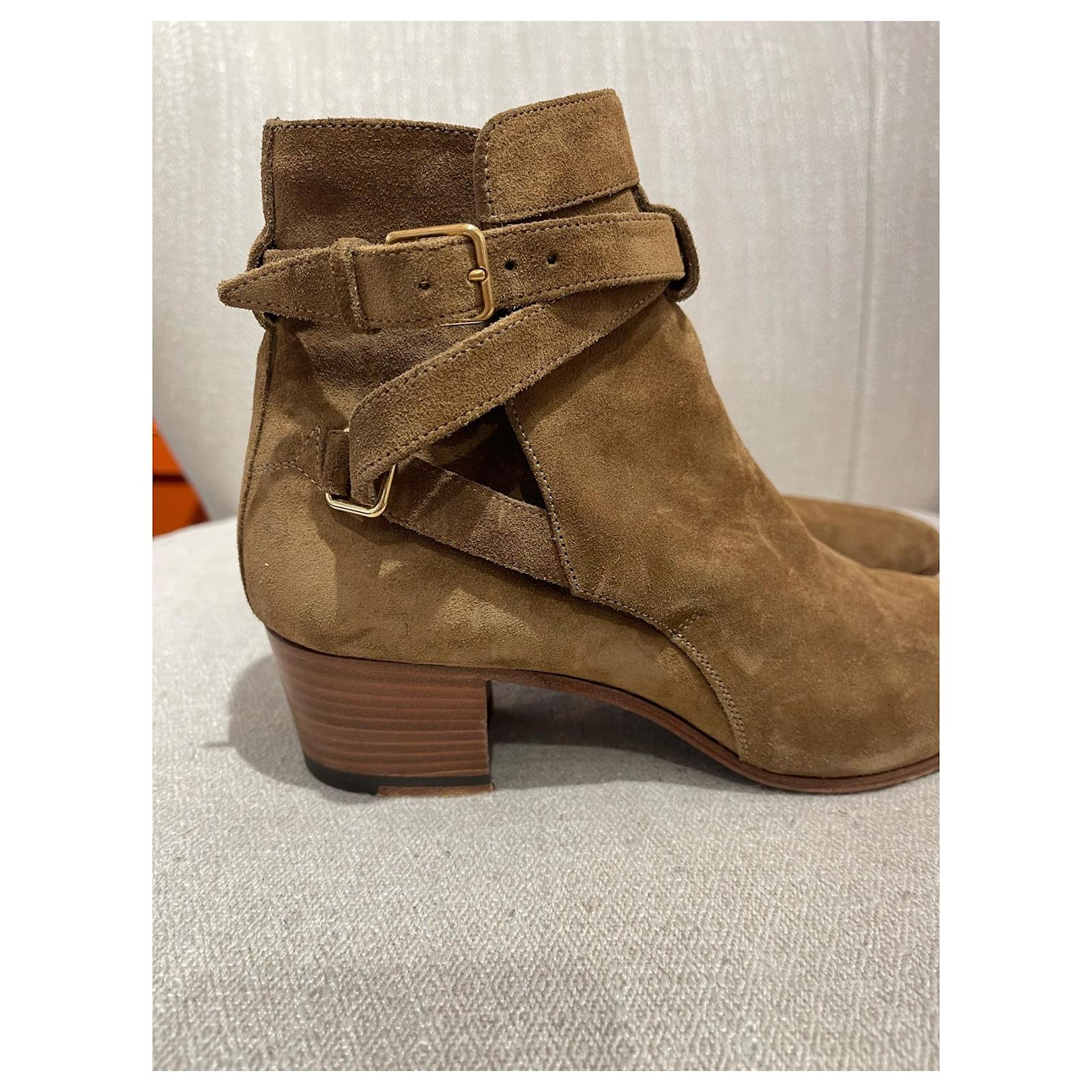 Saint Laurent boots, Jodhpur modelSize 37. Camel suede boots decorated with an adjustable ankle strap.4 cm heel. Very good condition.
