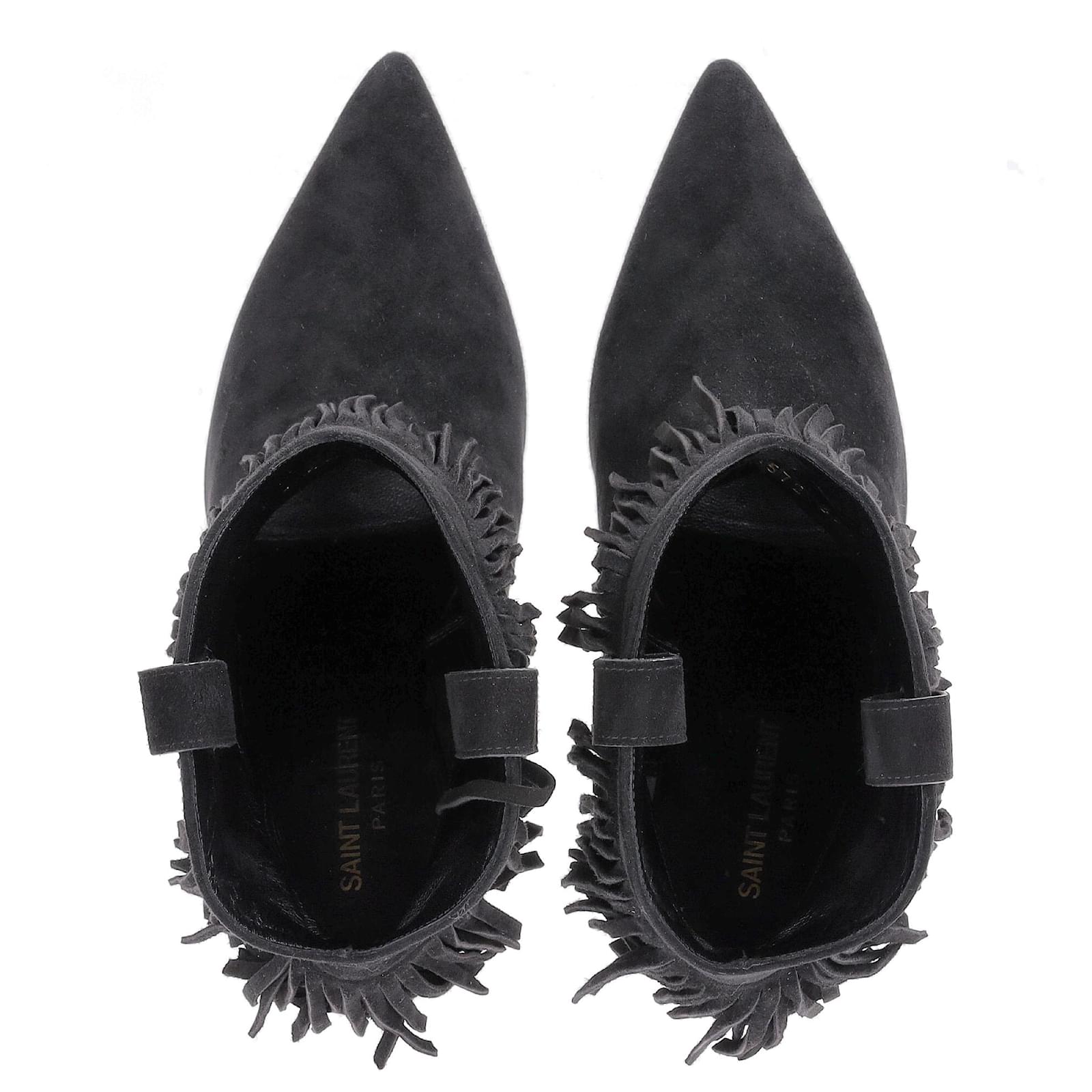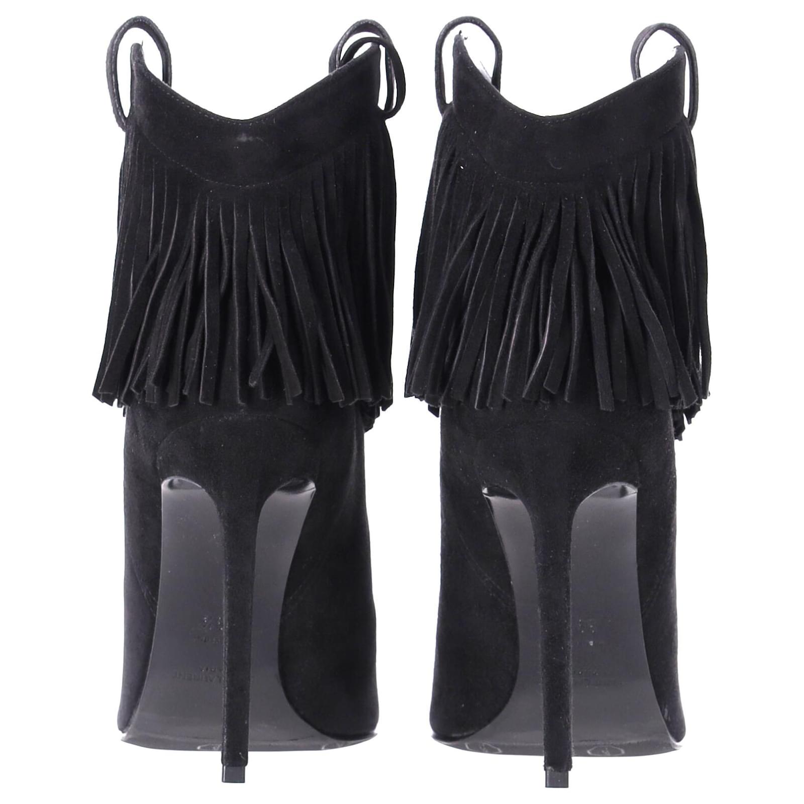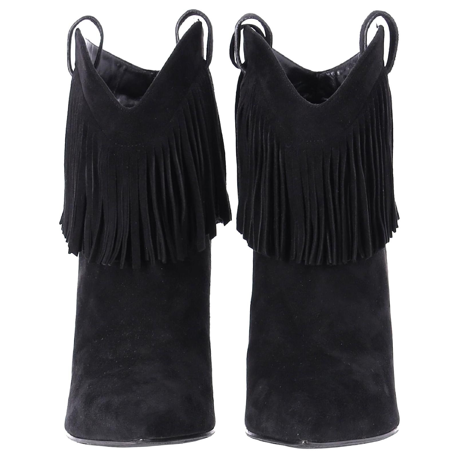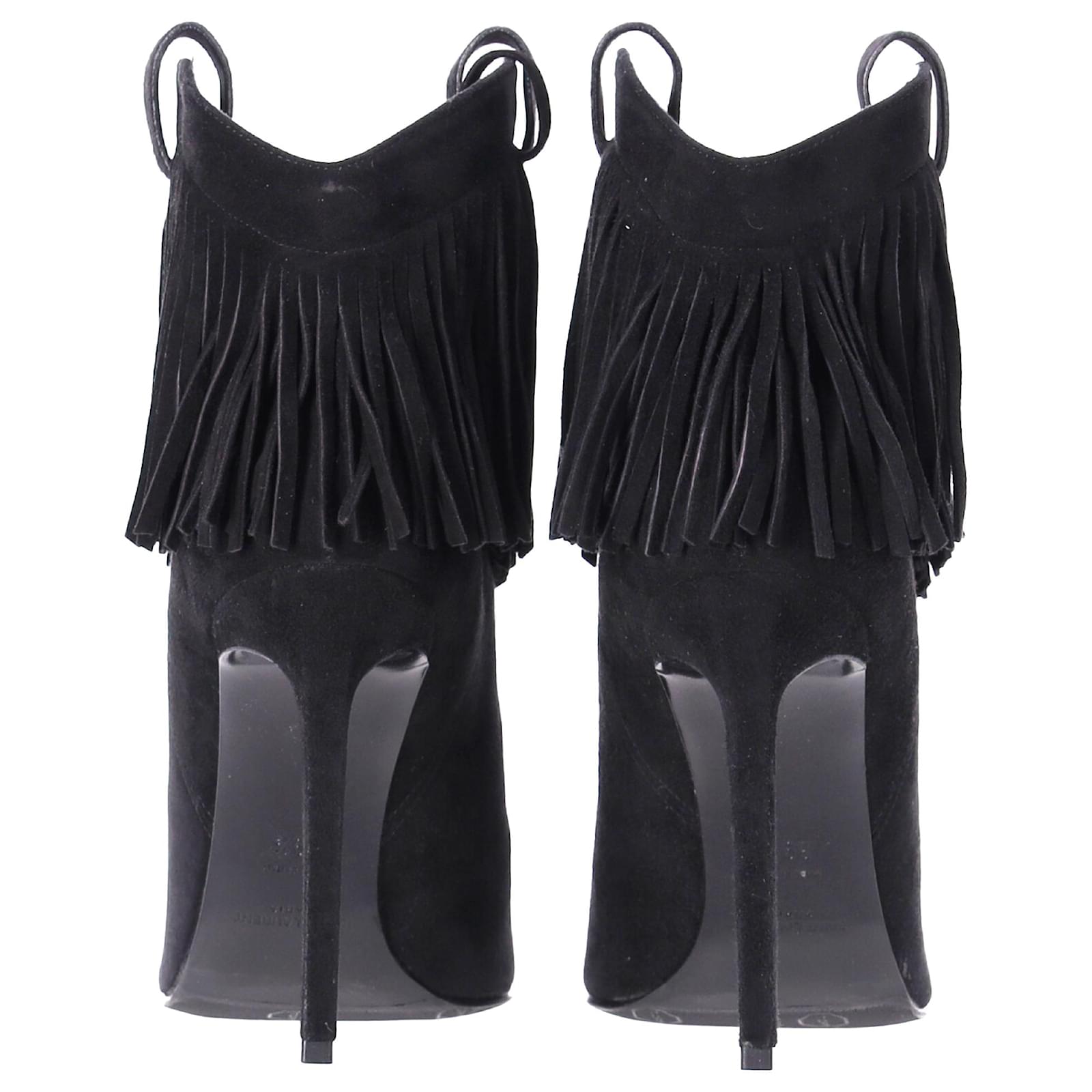 Saint Laurent Fringe Ankle Boots in Black Suede