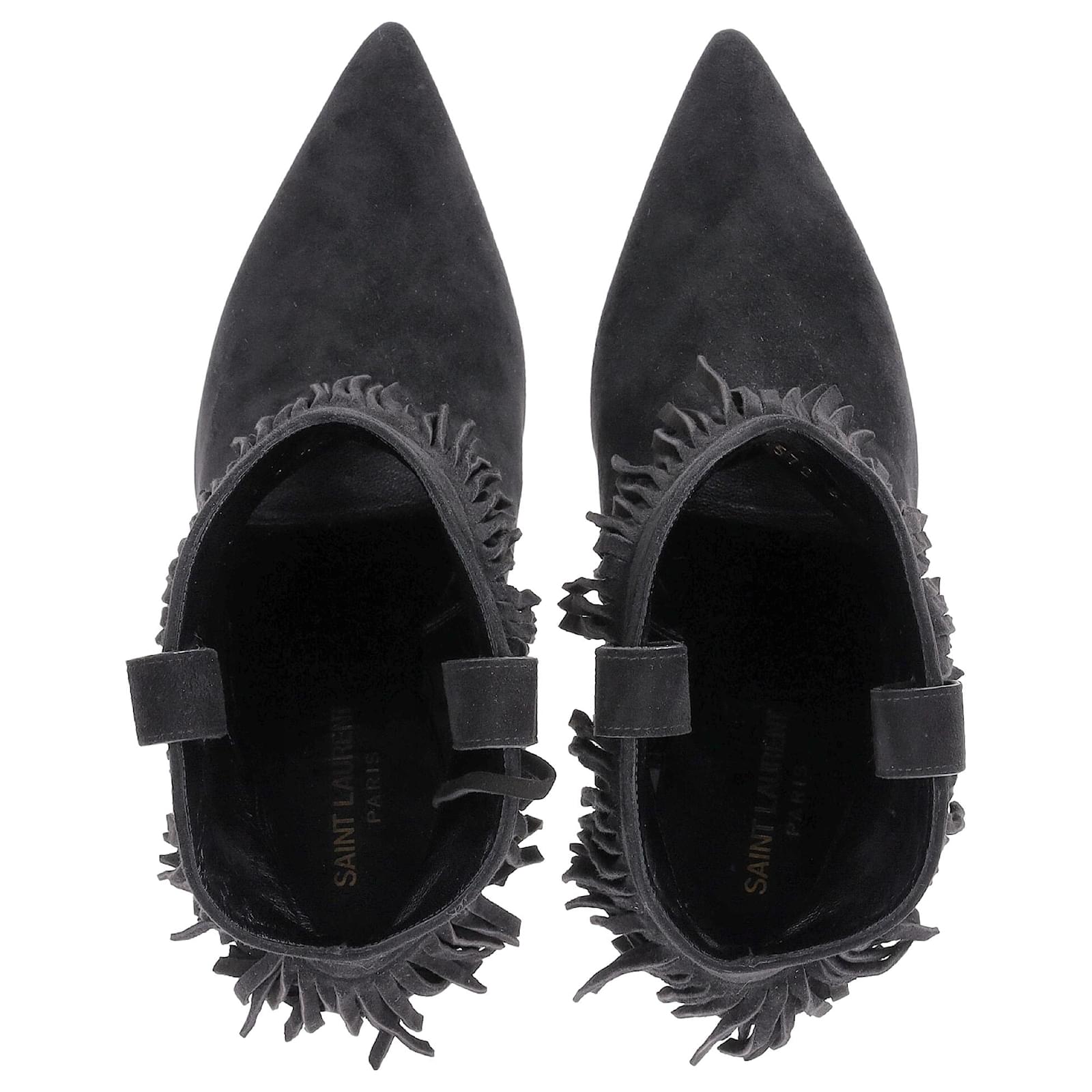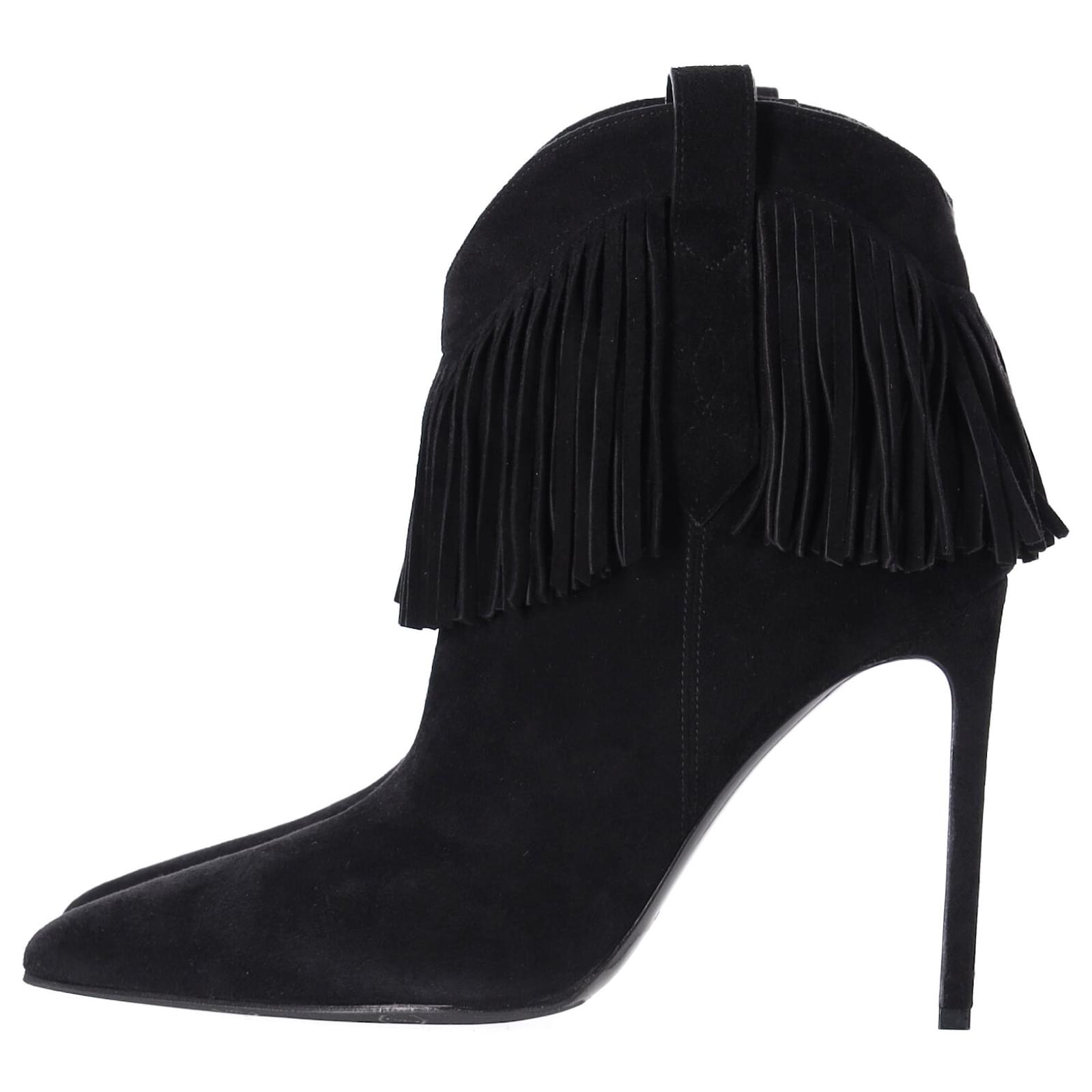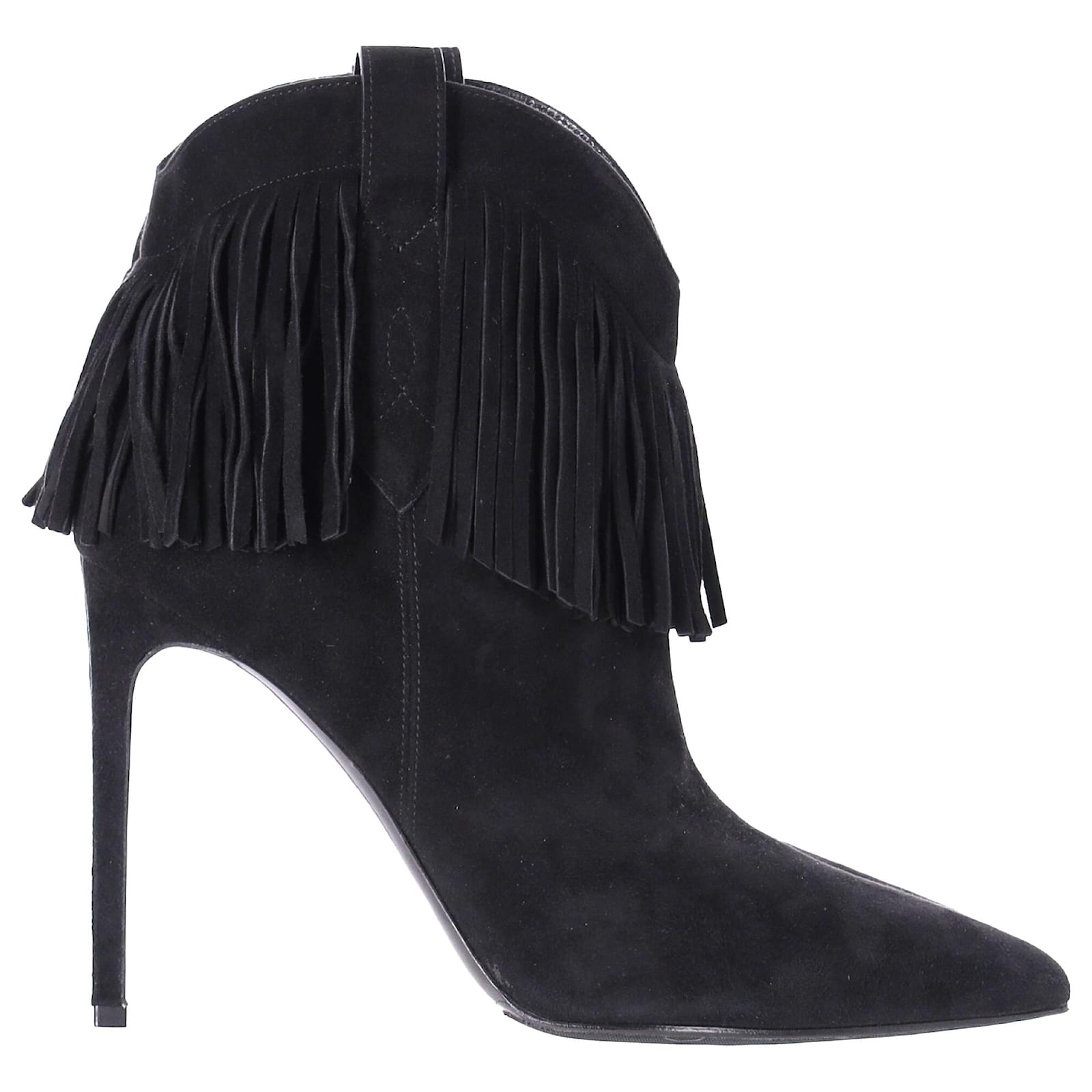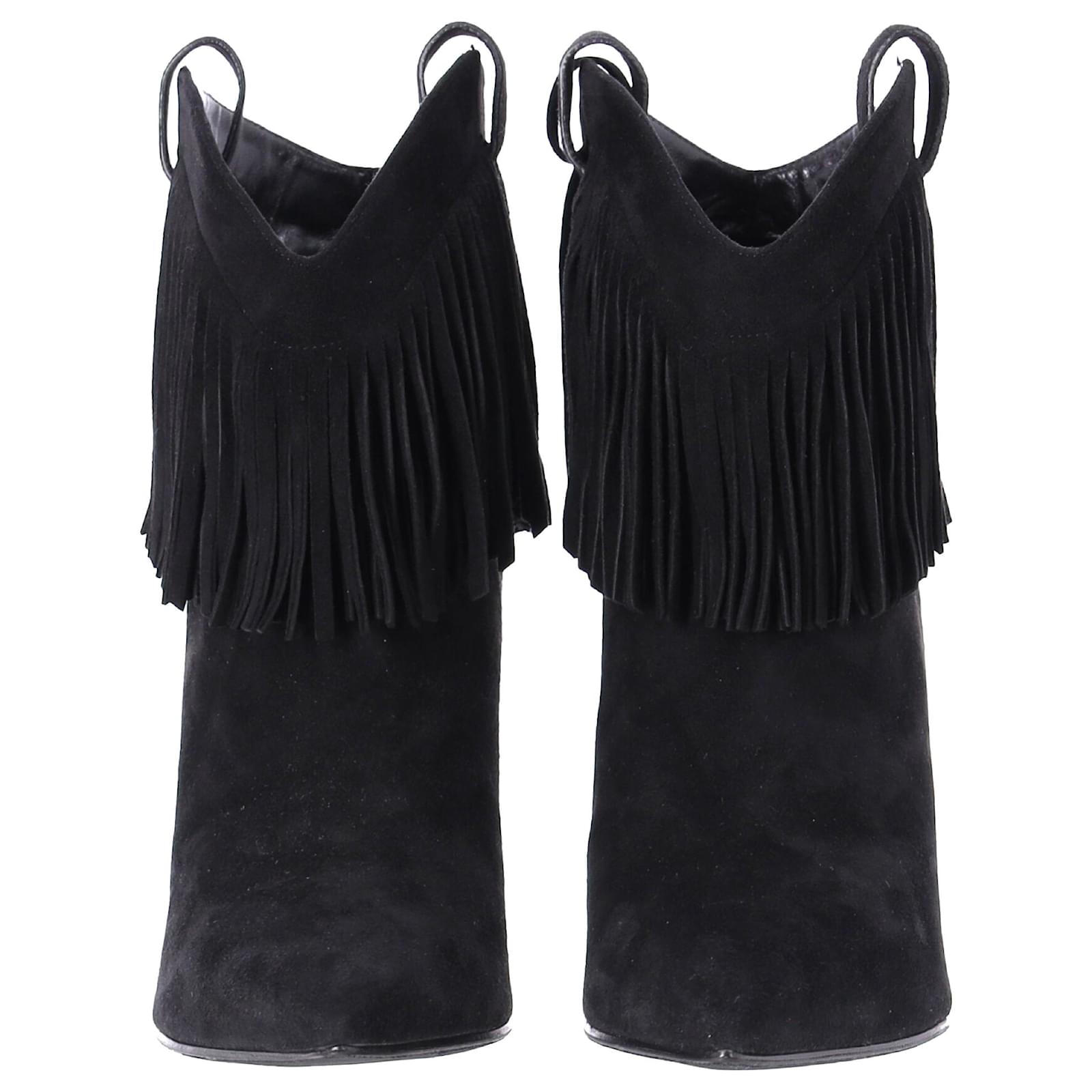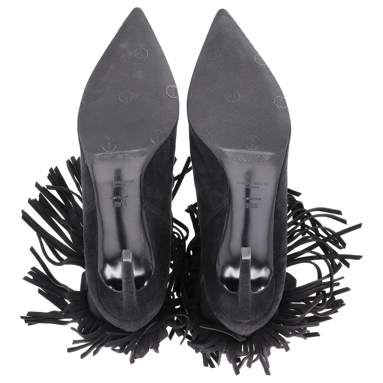 Saint Laurent Fringe Ankle Boots in Black Suede