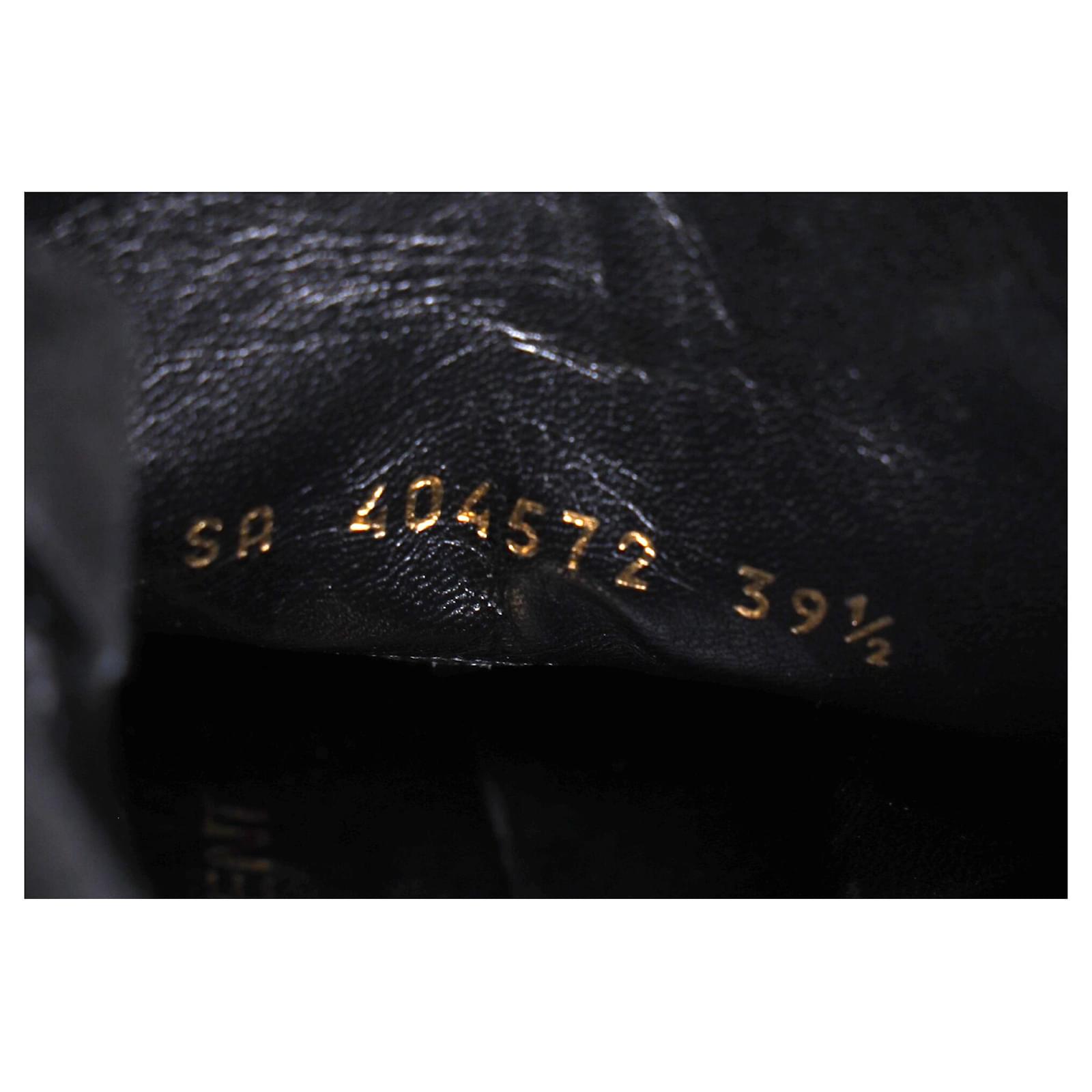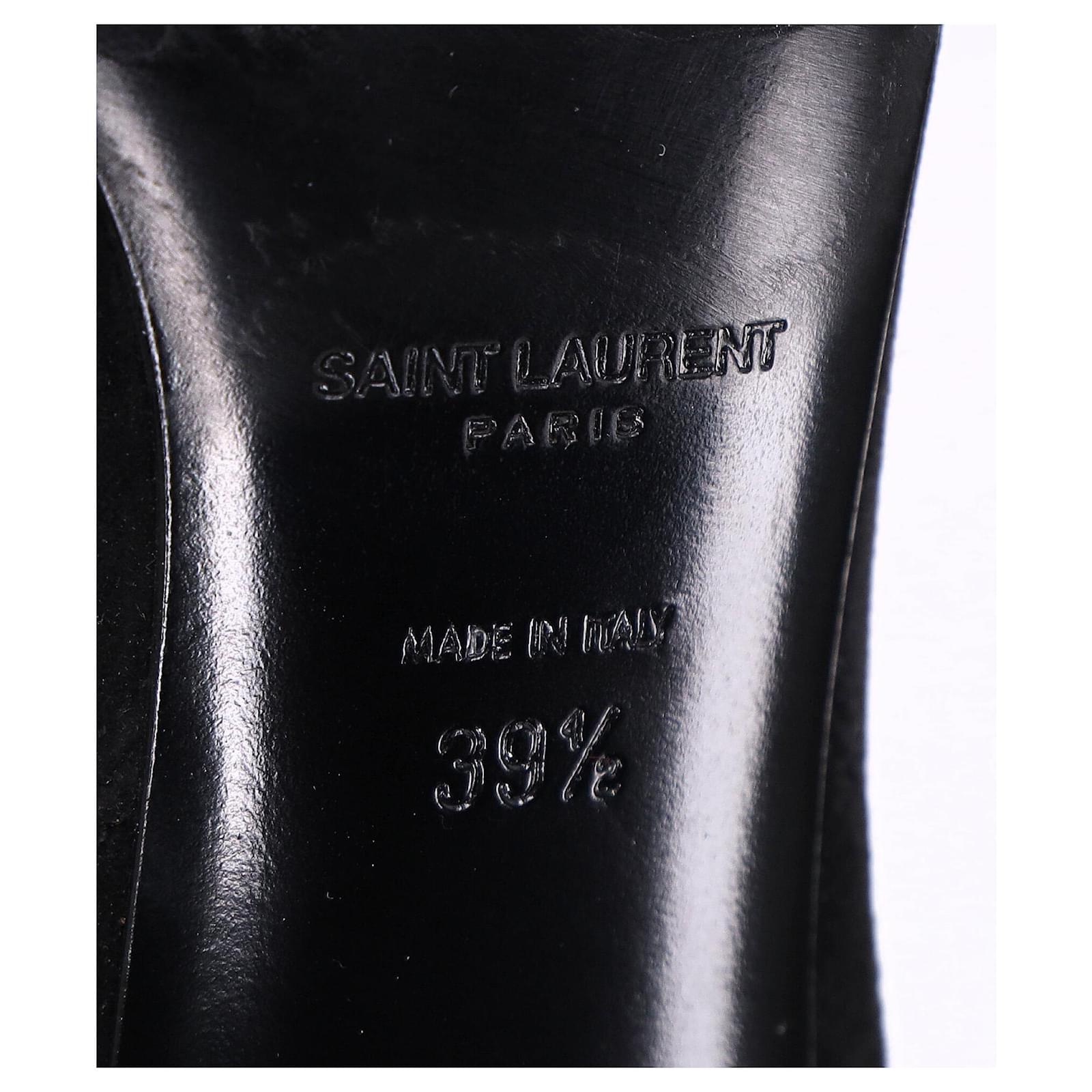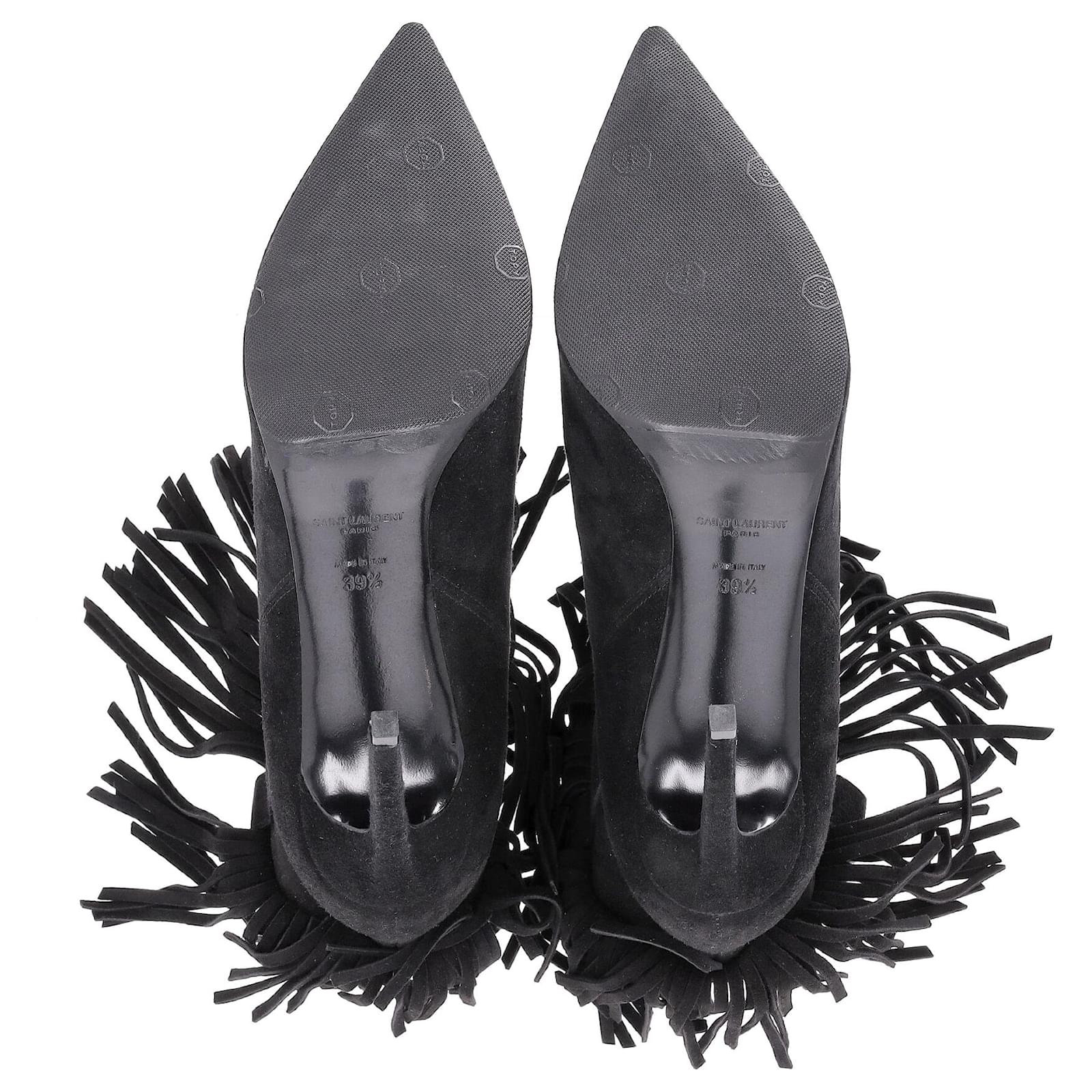 Add a touch of boho chic and modern edge to your wardrobe with the Saint Laurent Fringe Ankle Boots in black suede. These stylish boots feature playful fringe detailing that dances with every step, while the pointed-toe silhouette and 3.5-inch stiletto heel give them a sleek, feminine finish. Inspired by 70’s style, these boots offer a vintage vibe with a contemporary twist. Perfect for both day and night, they bring a bold statement to any outfit.