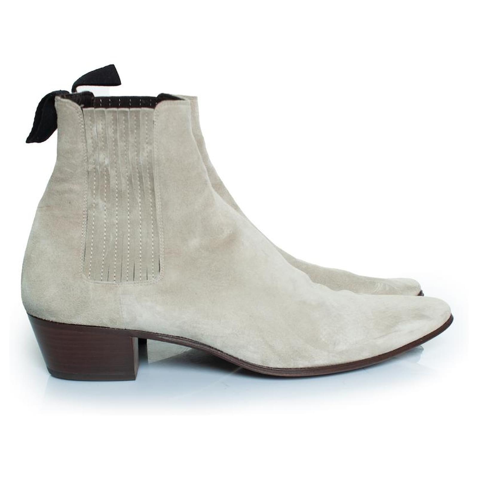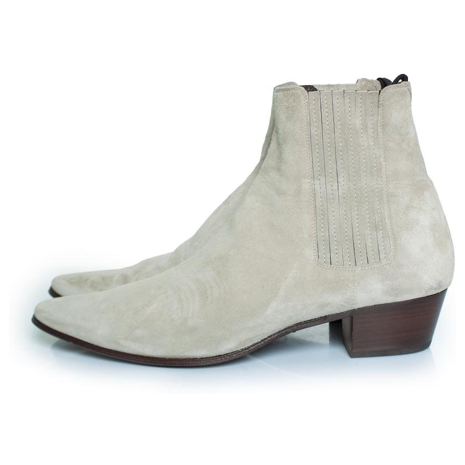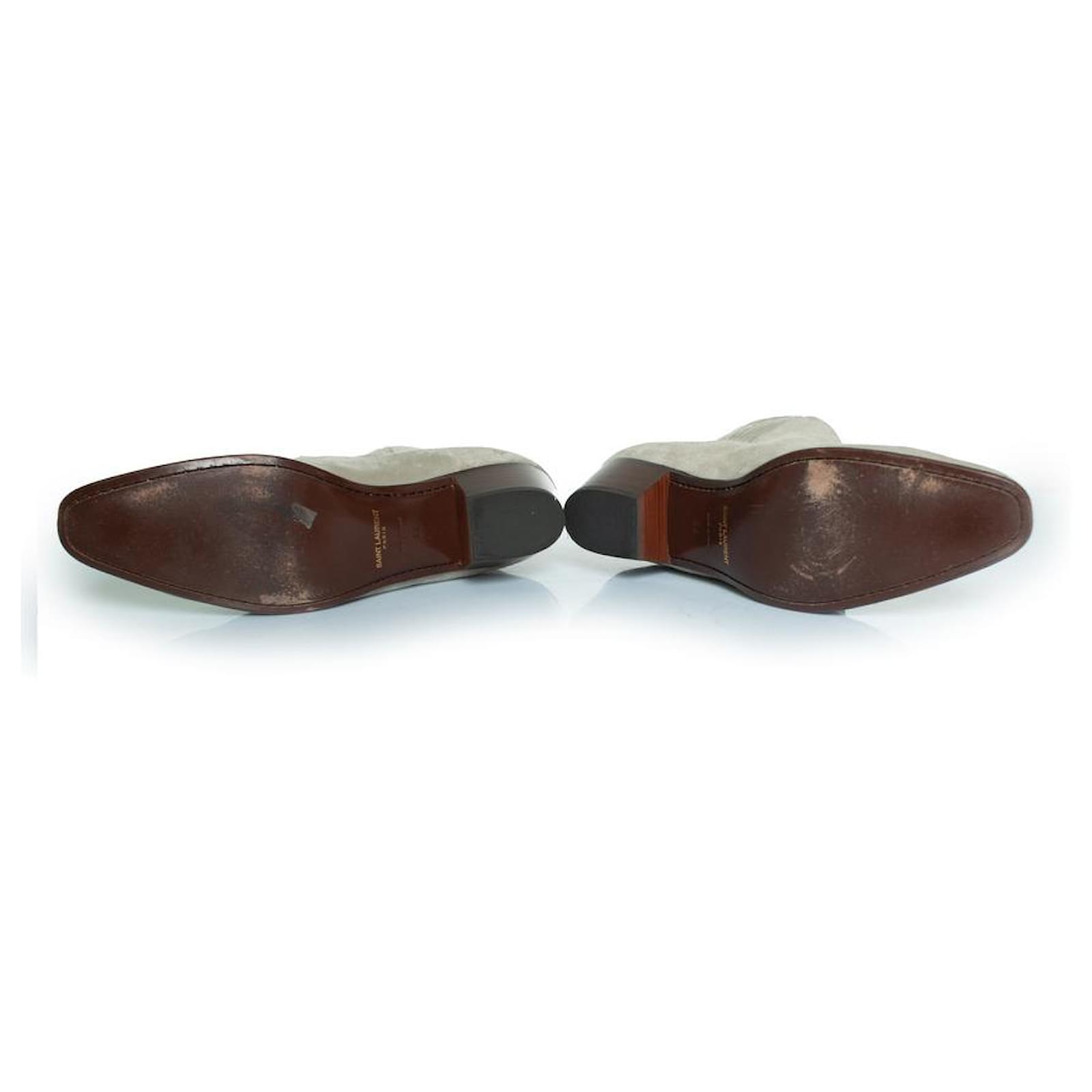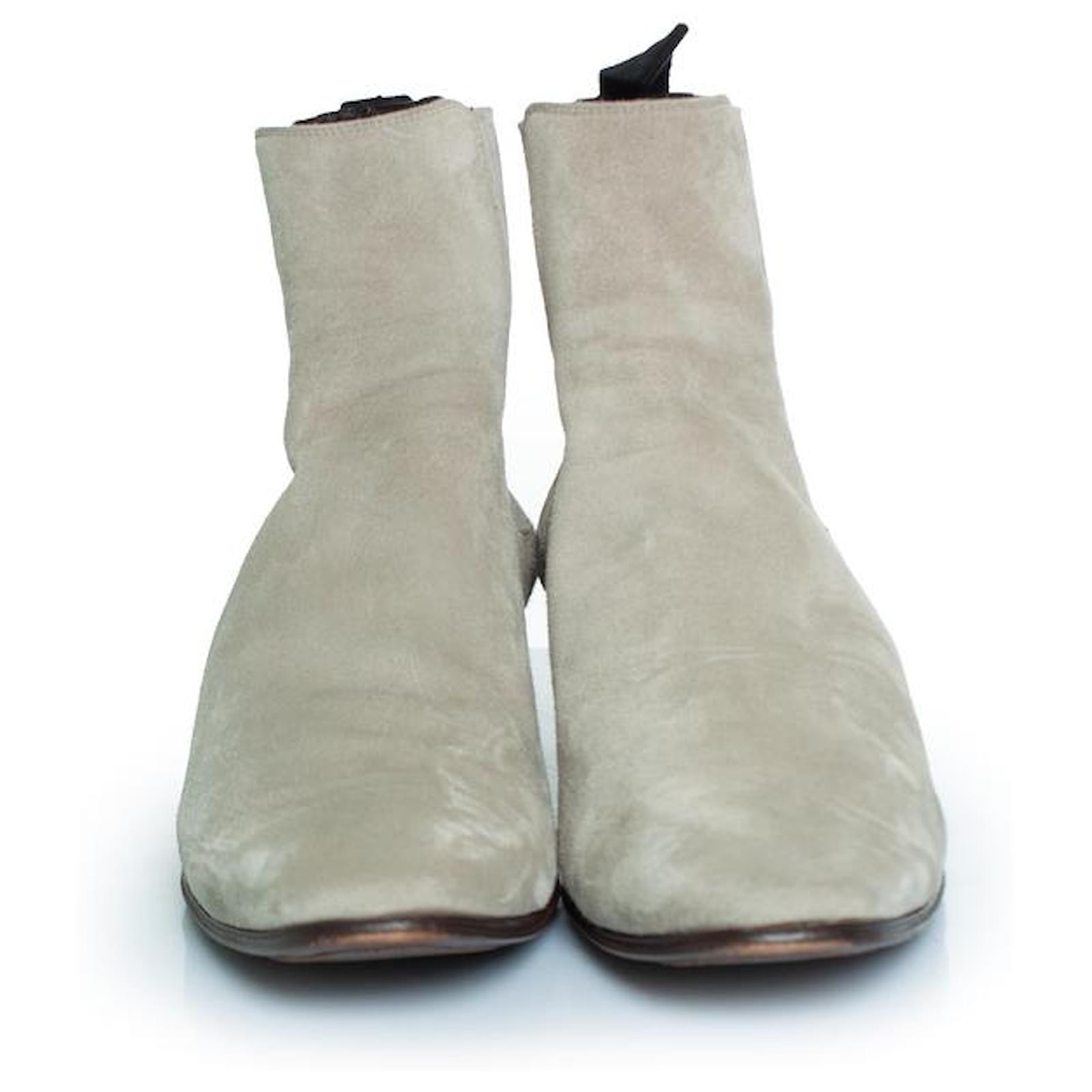 CONDITION: very good conditionSIZE: 44INSOLE MEASUREMENTS: 29 cmHEEL MEASUREMENTS: 4.5 cm PLATFORM: 1 cmSHAFT HEIGHT: 15 cm WIDTH TOP: 12 cmMATERIAL: suedeCOLOUR: greyITEM LOCATION: The NetherlandsITEM NUMBER: 8606