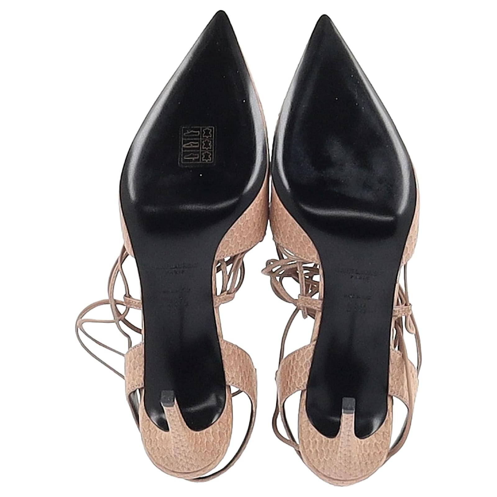 Saint Laurent Paris Skinny Snakeskin-Embossed Pumps in Beige Leather