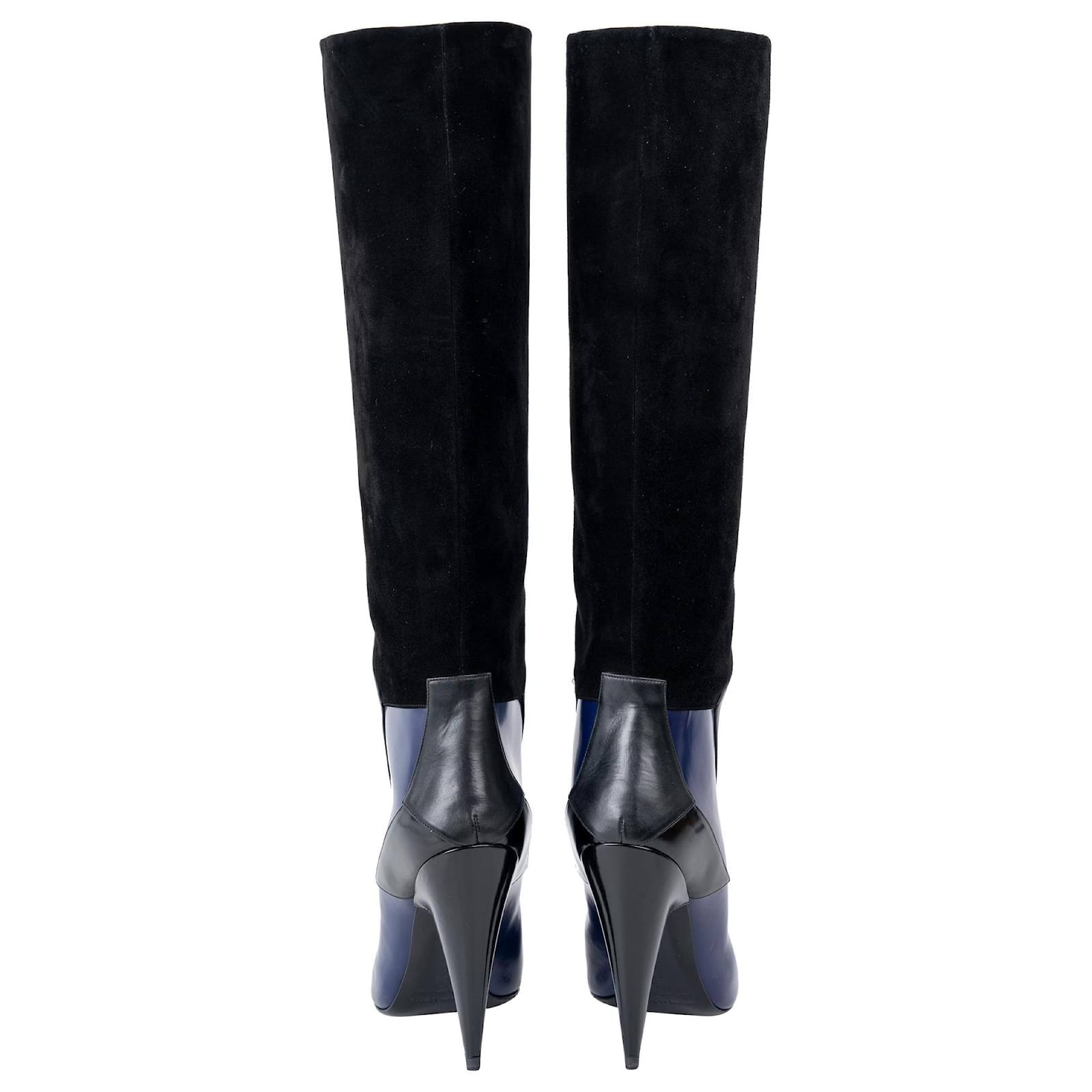 Saint Laurent Patchwork Knee Boots in Black Suede.