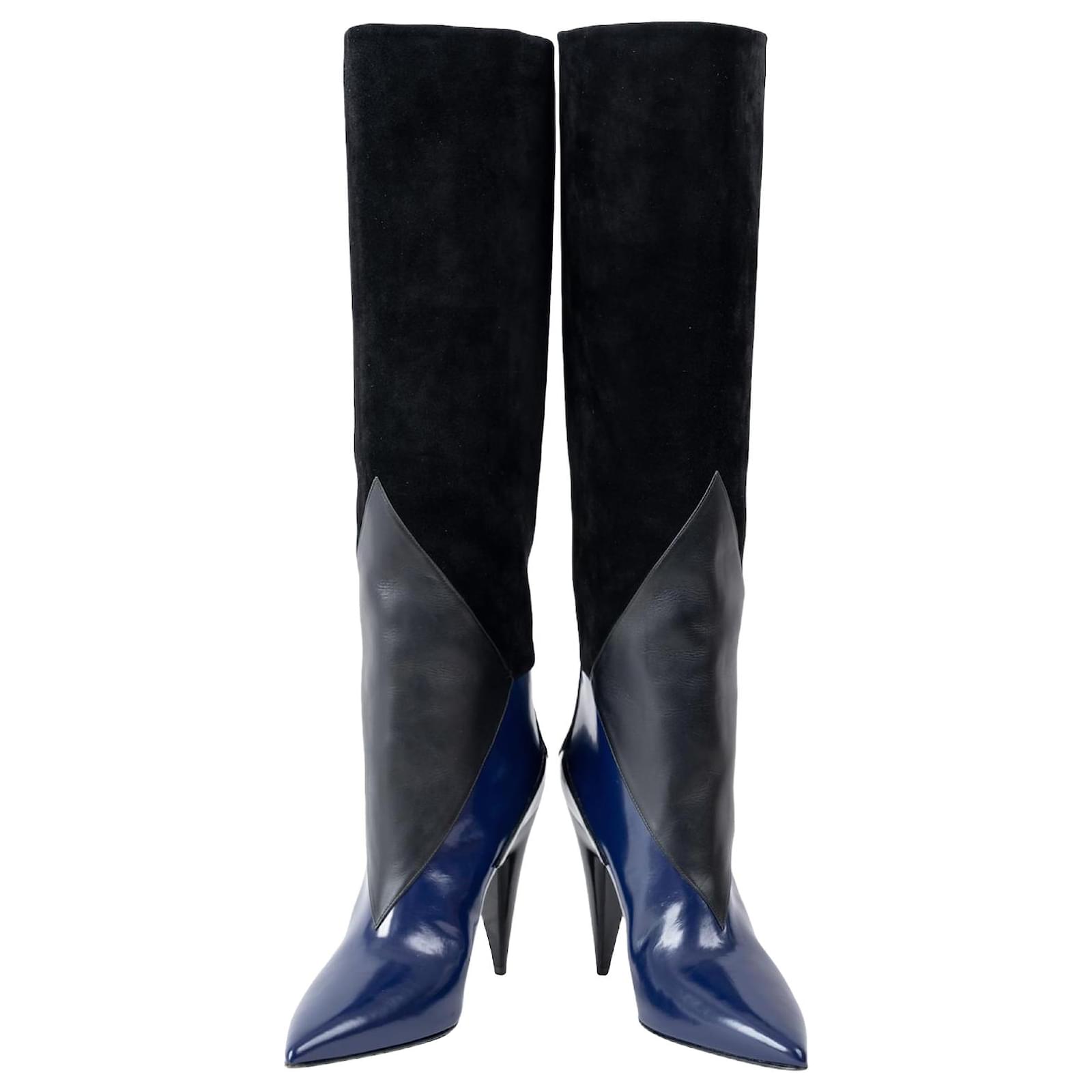 Saint Laurent Patchwork Knee Boots Black
