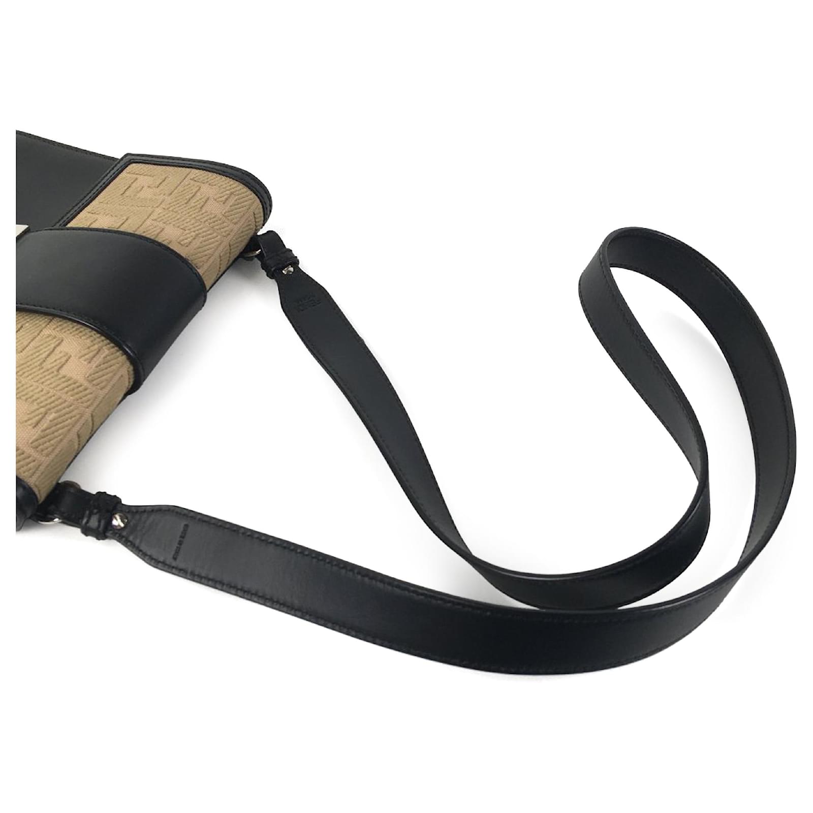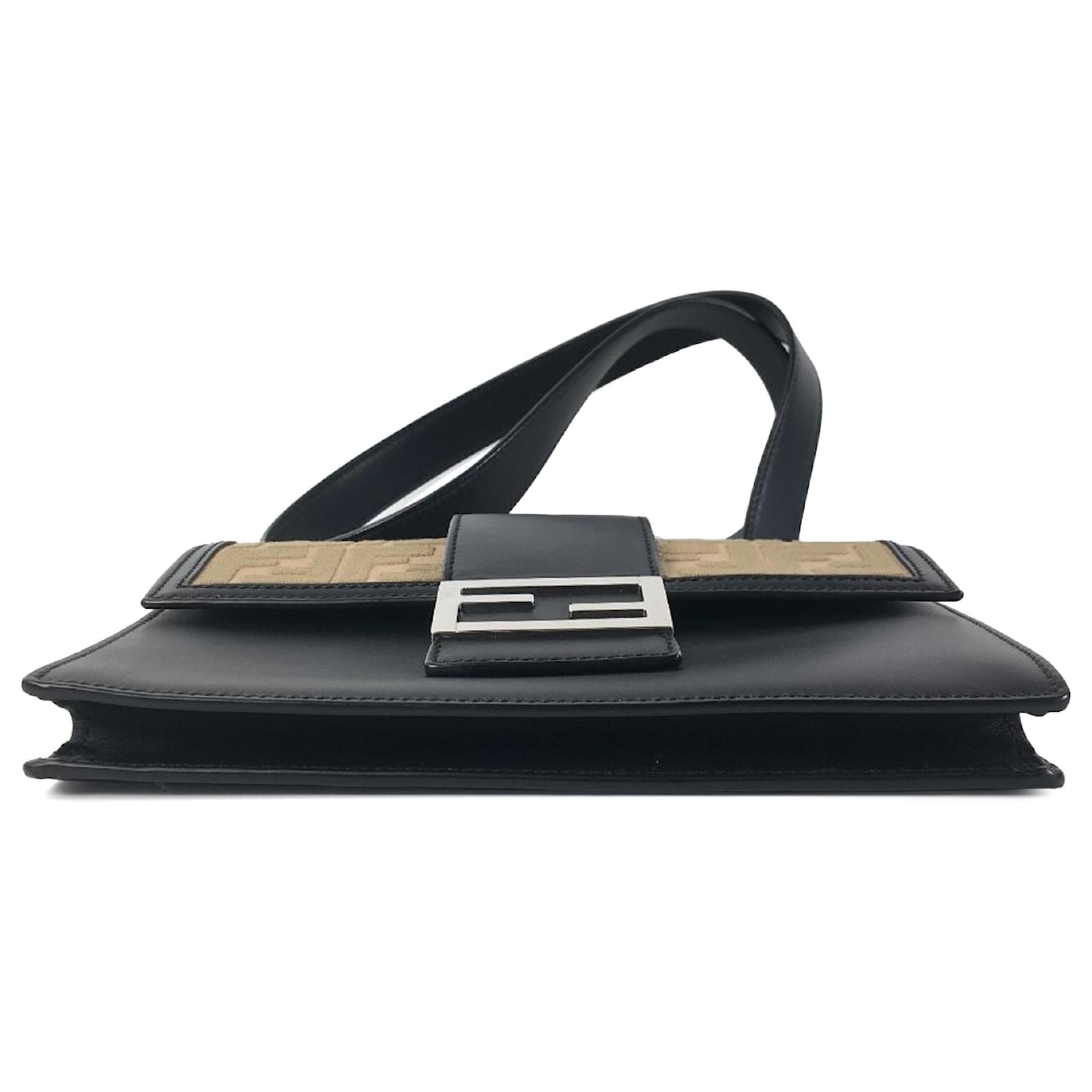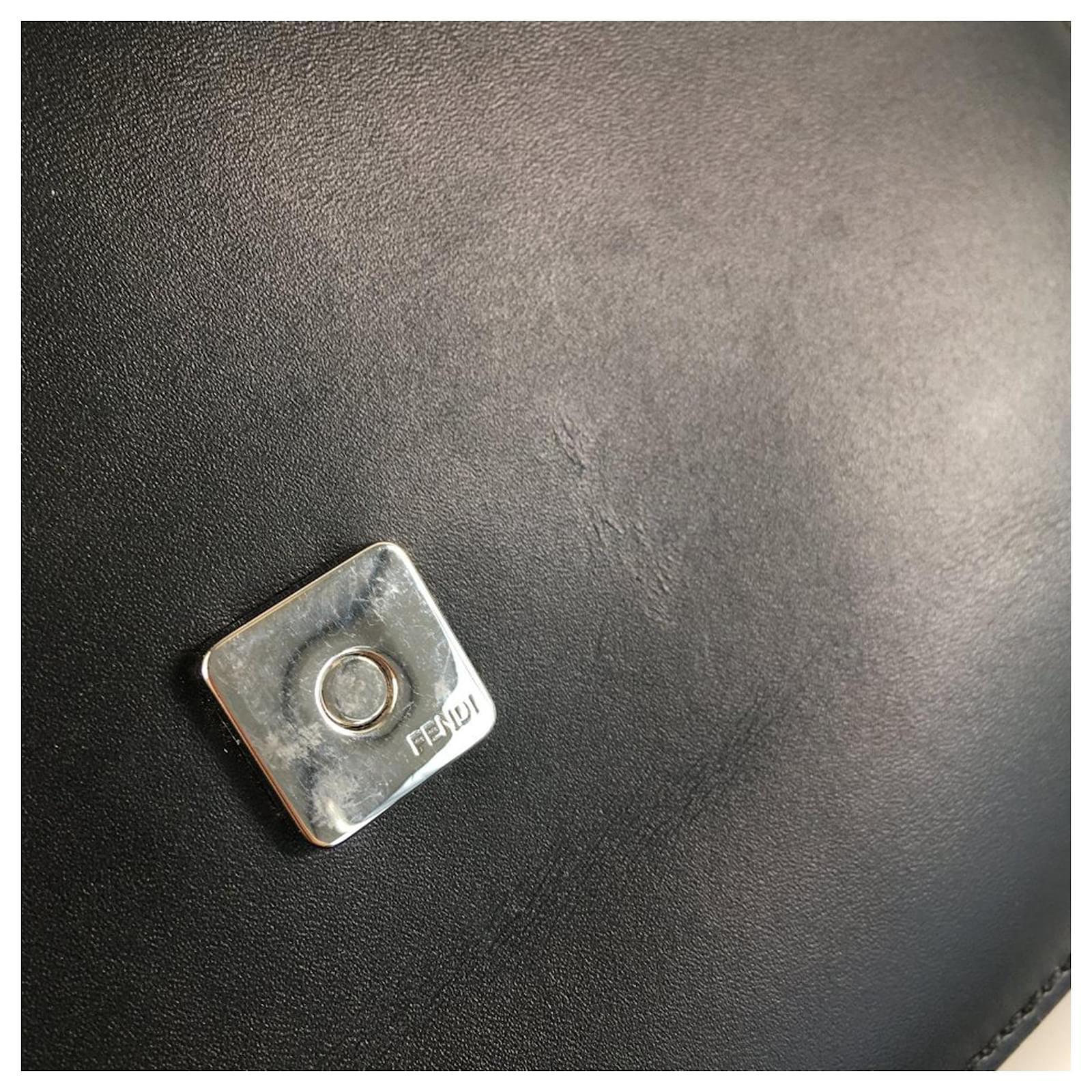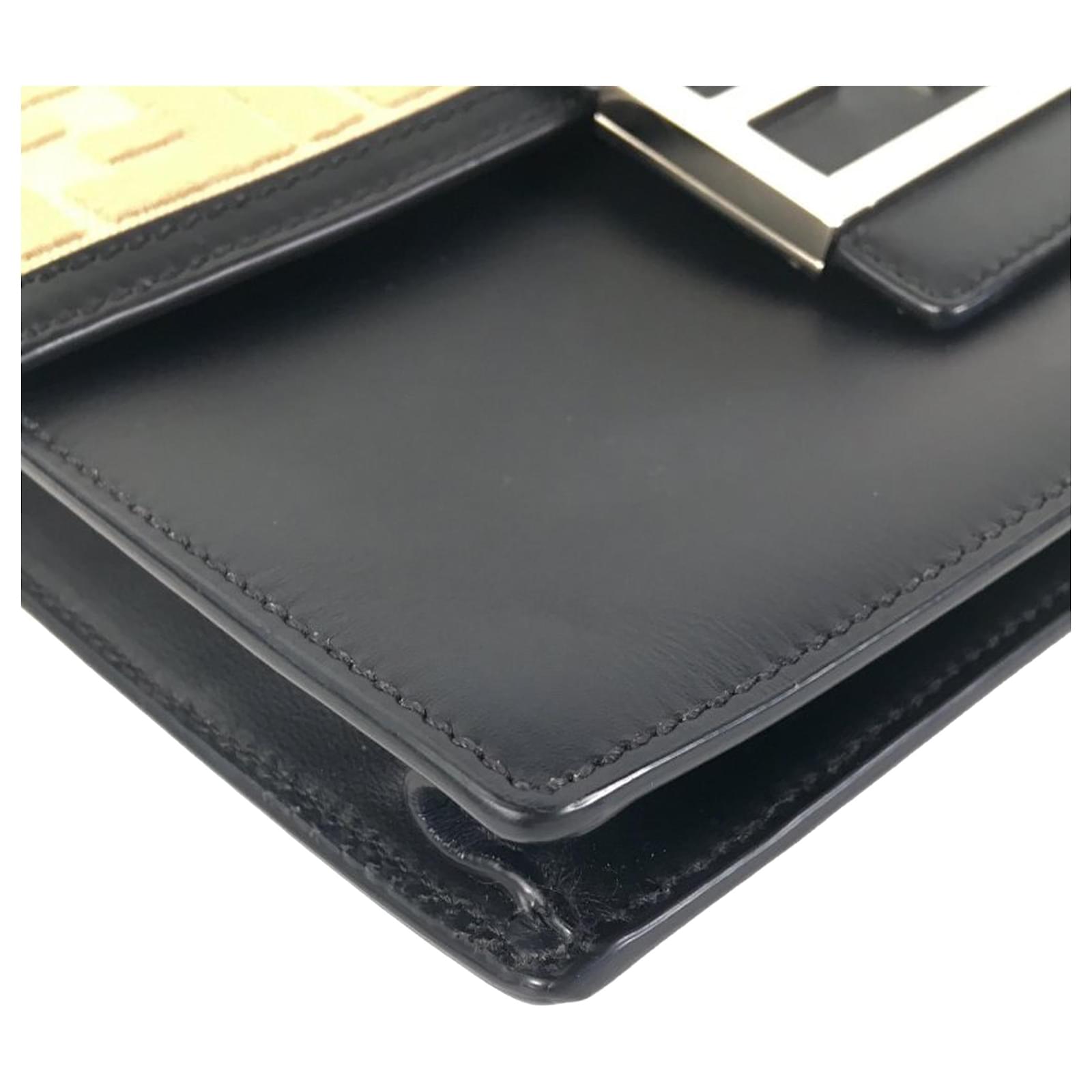 Baguette plat croisé FF 1974 en cuir de veau noir et toile Fendi