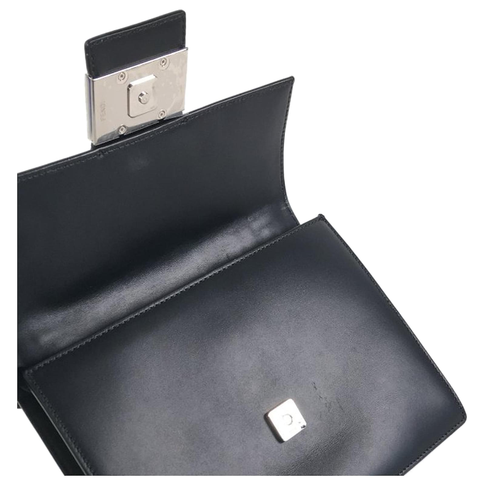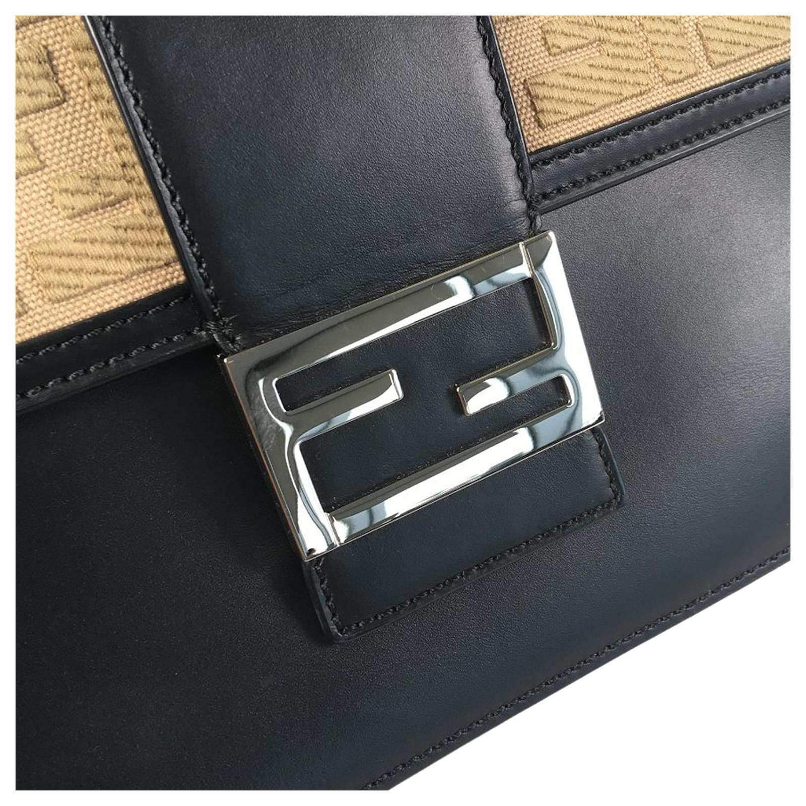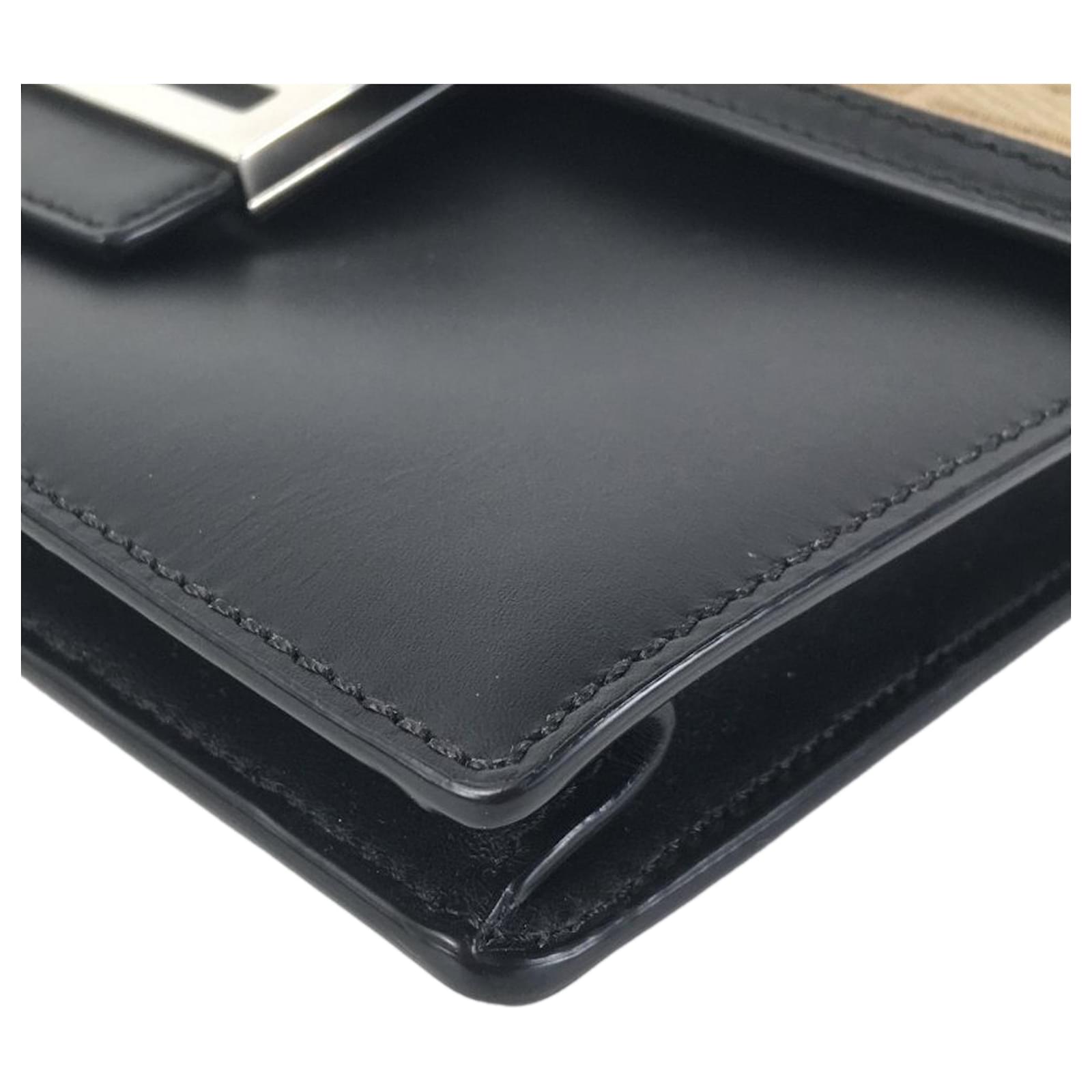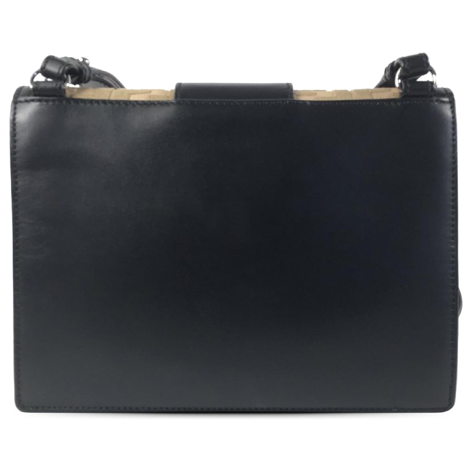 Baguette plat croisé FF 1974 en cuir de veau noir et toile Fendi