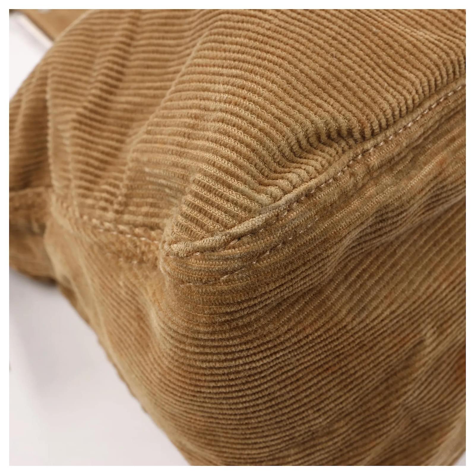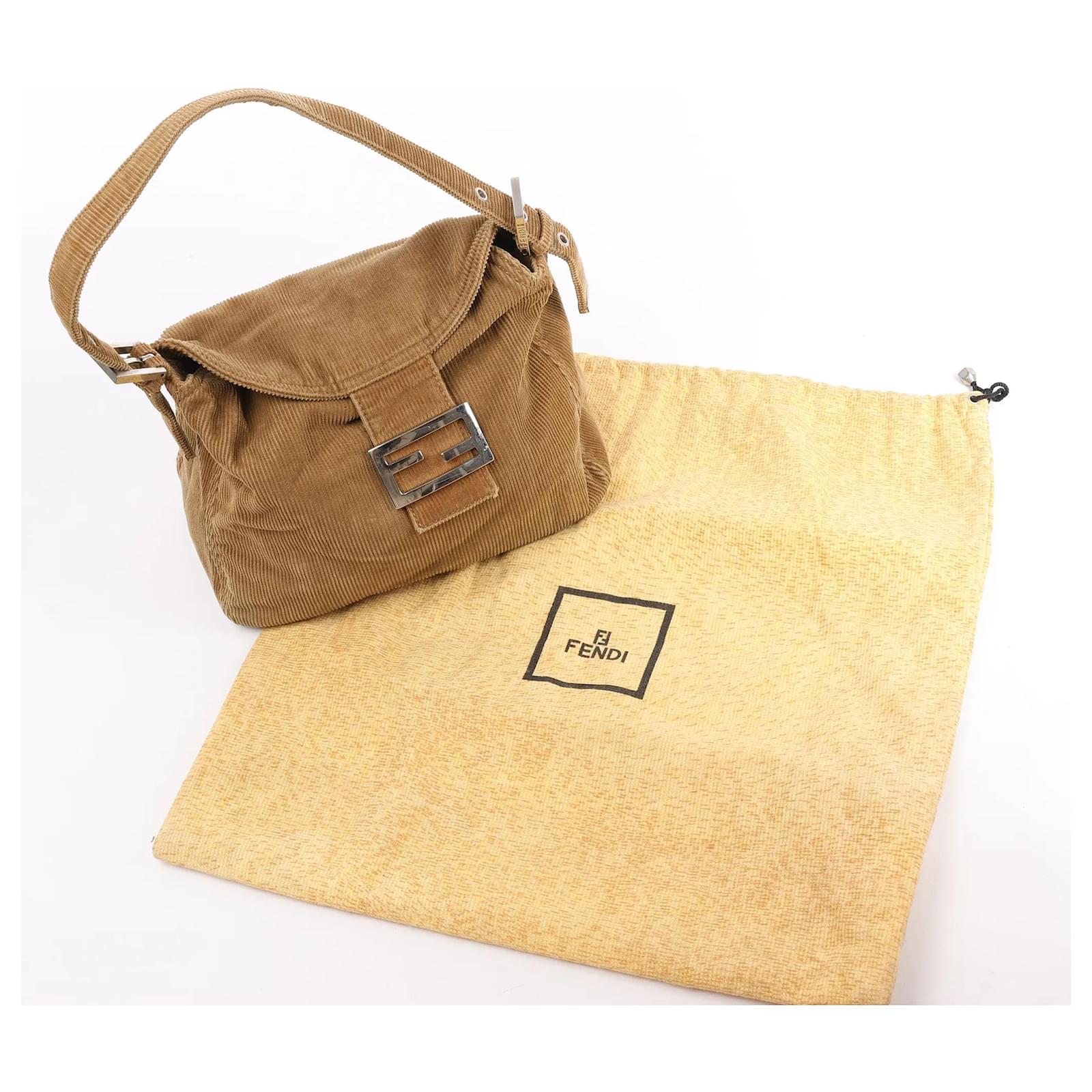 Le sac à bandoulière FENDI Baguette Double Flap en velours côtelé 26426 couleur camel offre une touche rétro et confortable sur une silhouette emblématique. Fabriqué en velours côtelé doux avec une boucle FF en ton argent, c'est l'accessoire parfait pour un chic décontracté au quotidien.