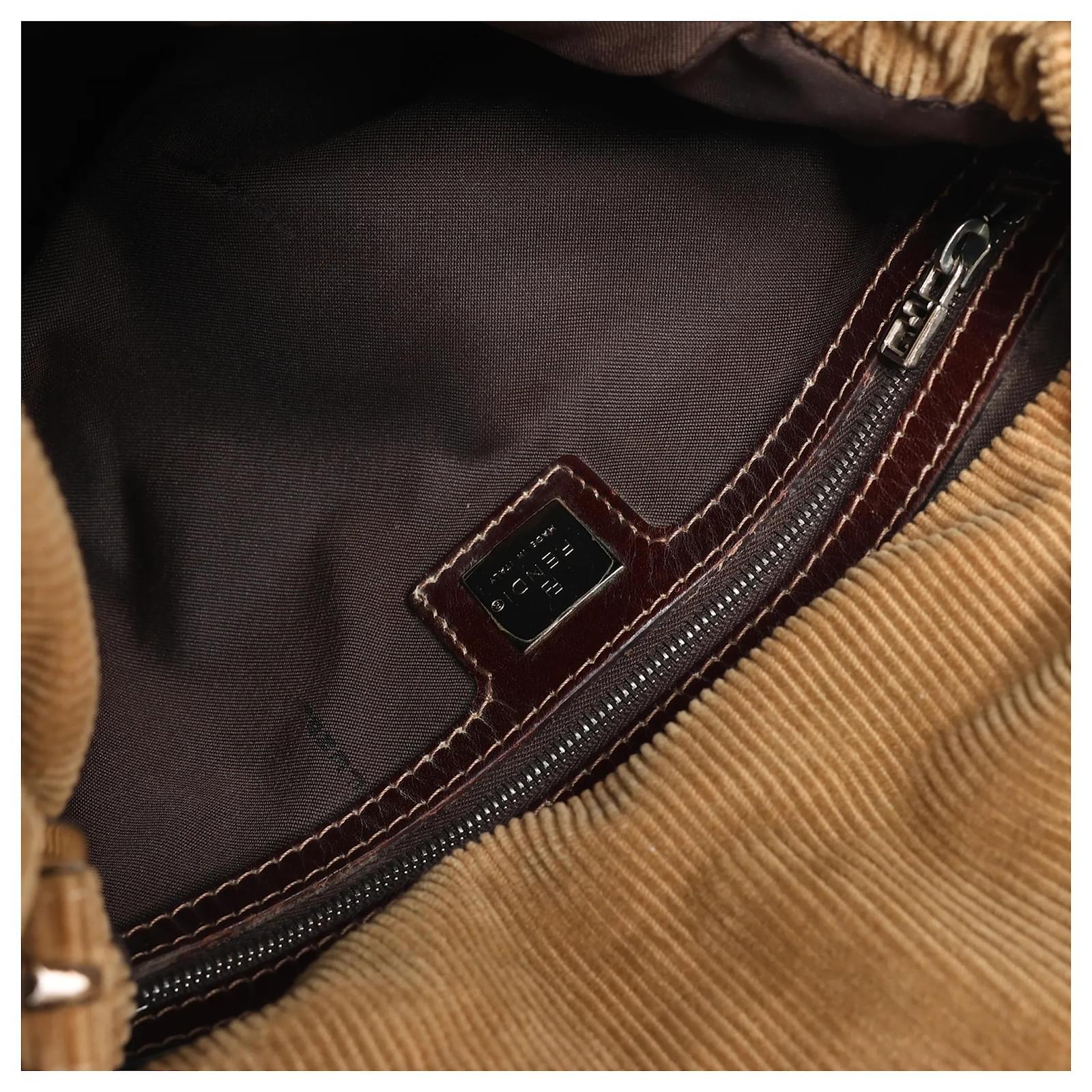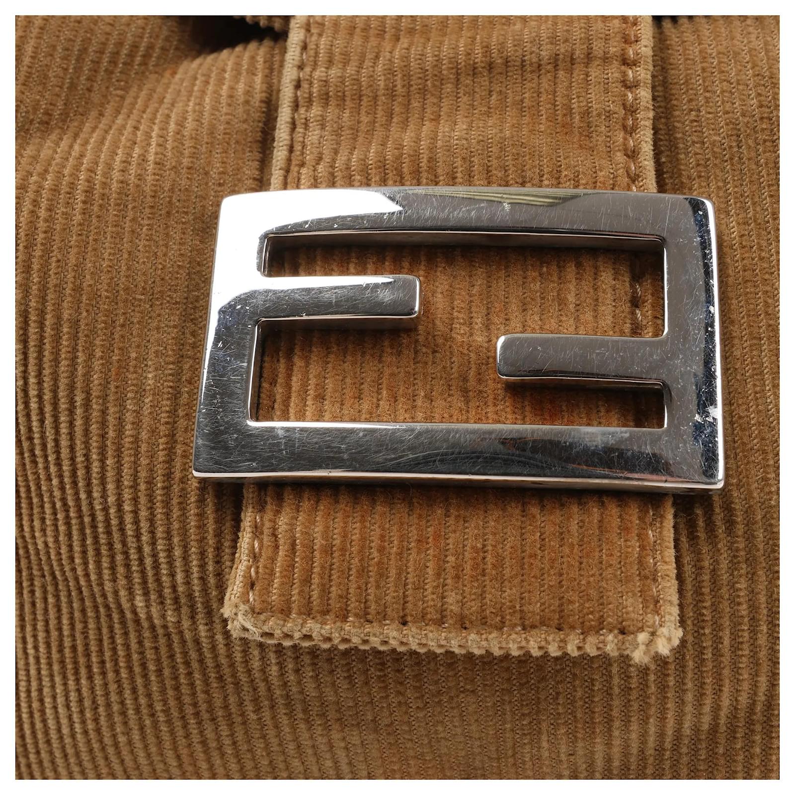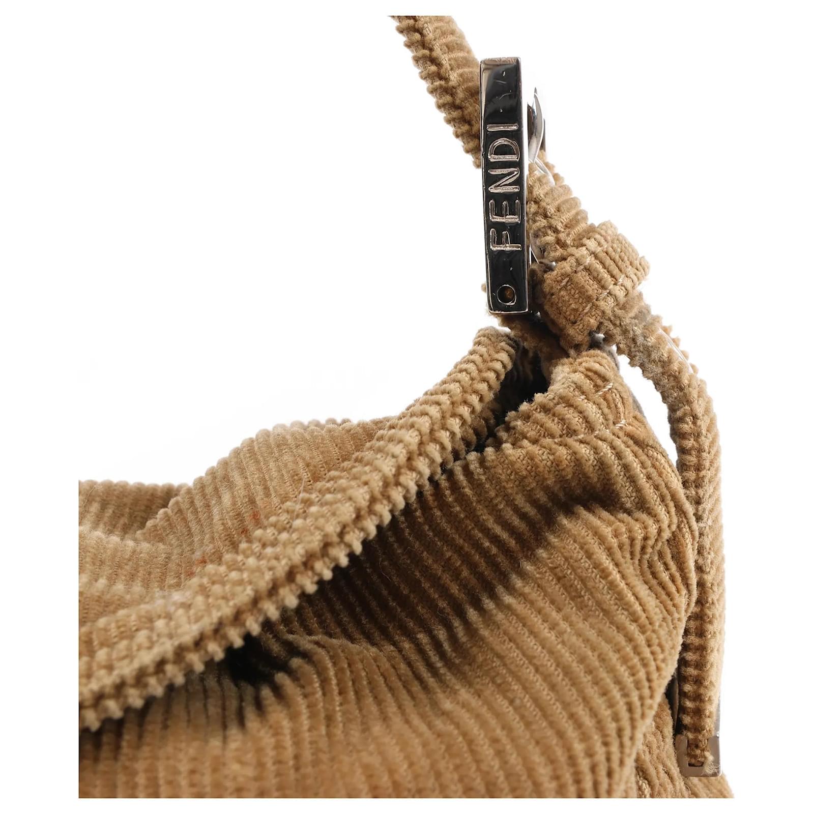 Sac à bandoulière Baguette à double rabat en velours côtelé FENDI en camel 26426 Marron