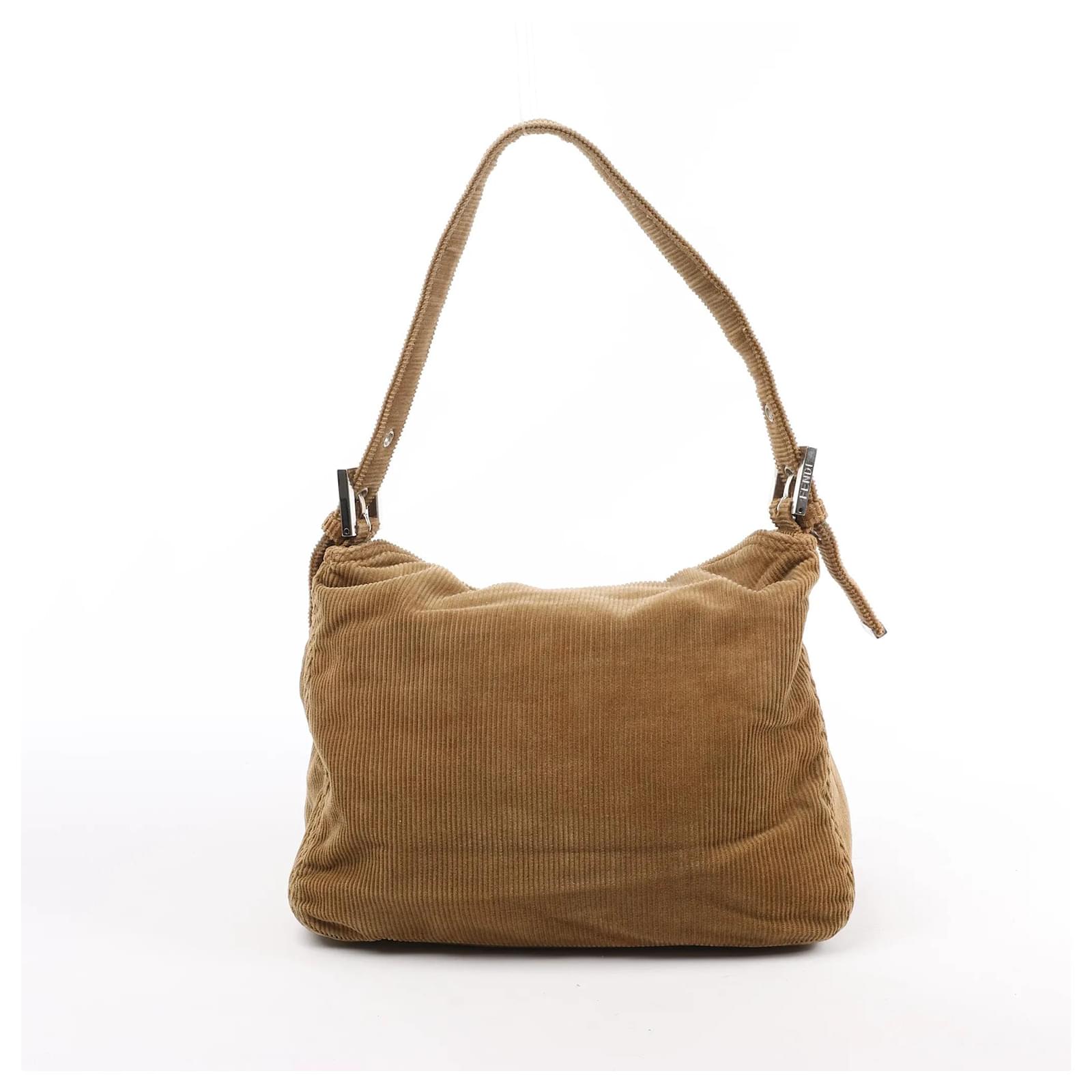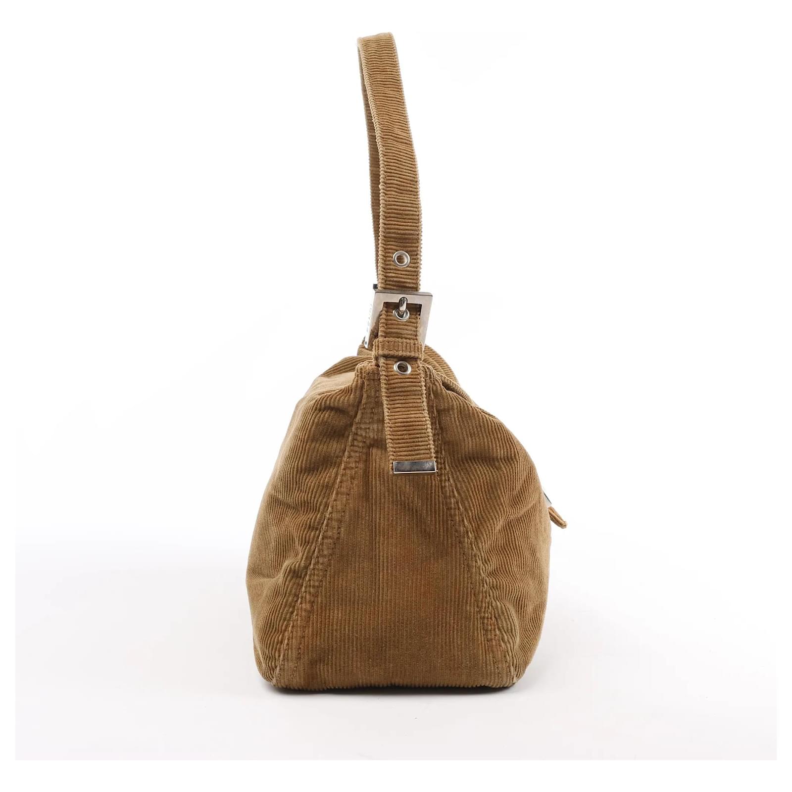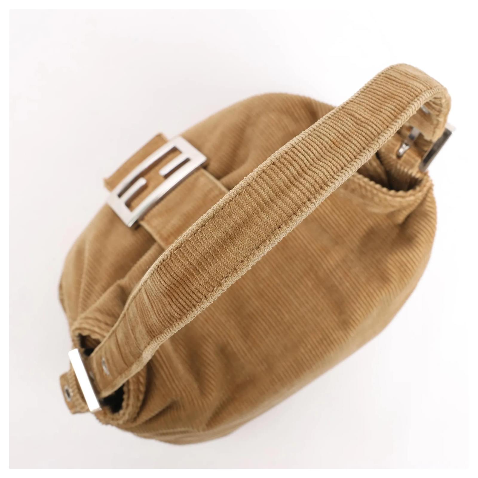 Sac à bandoulière Baguette à double rabat en velours côtelé FENDI en camel 26426 Marron