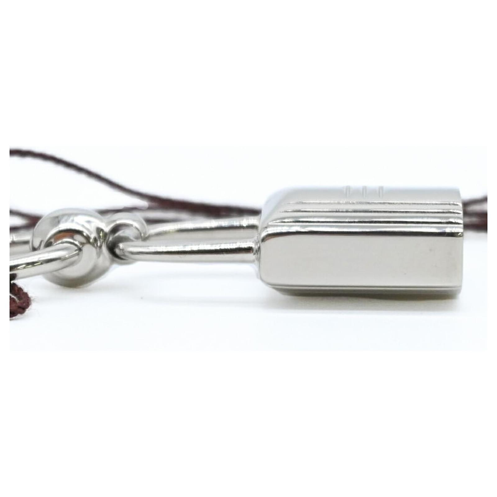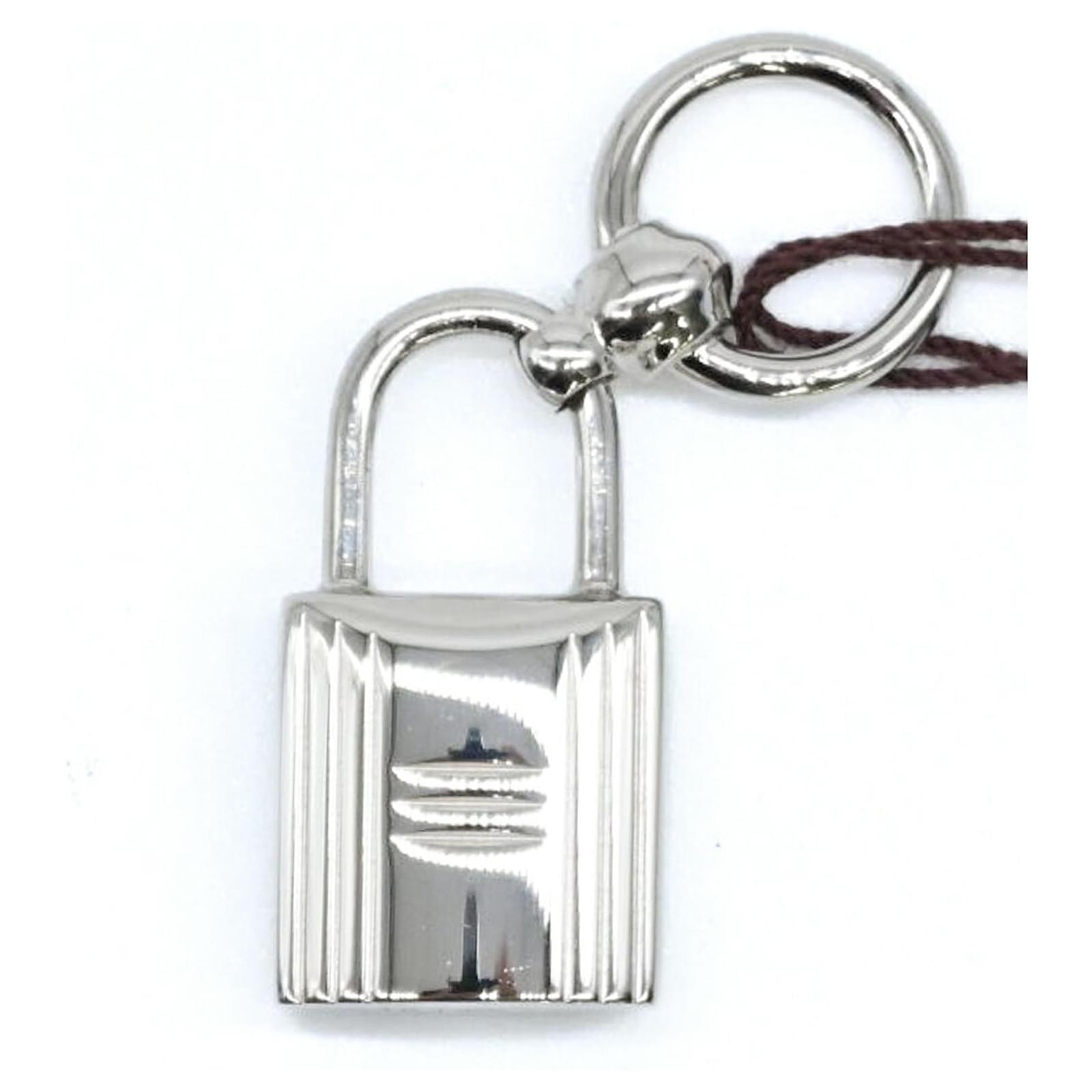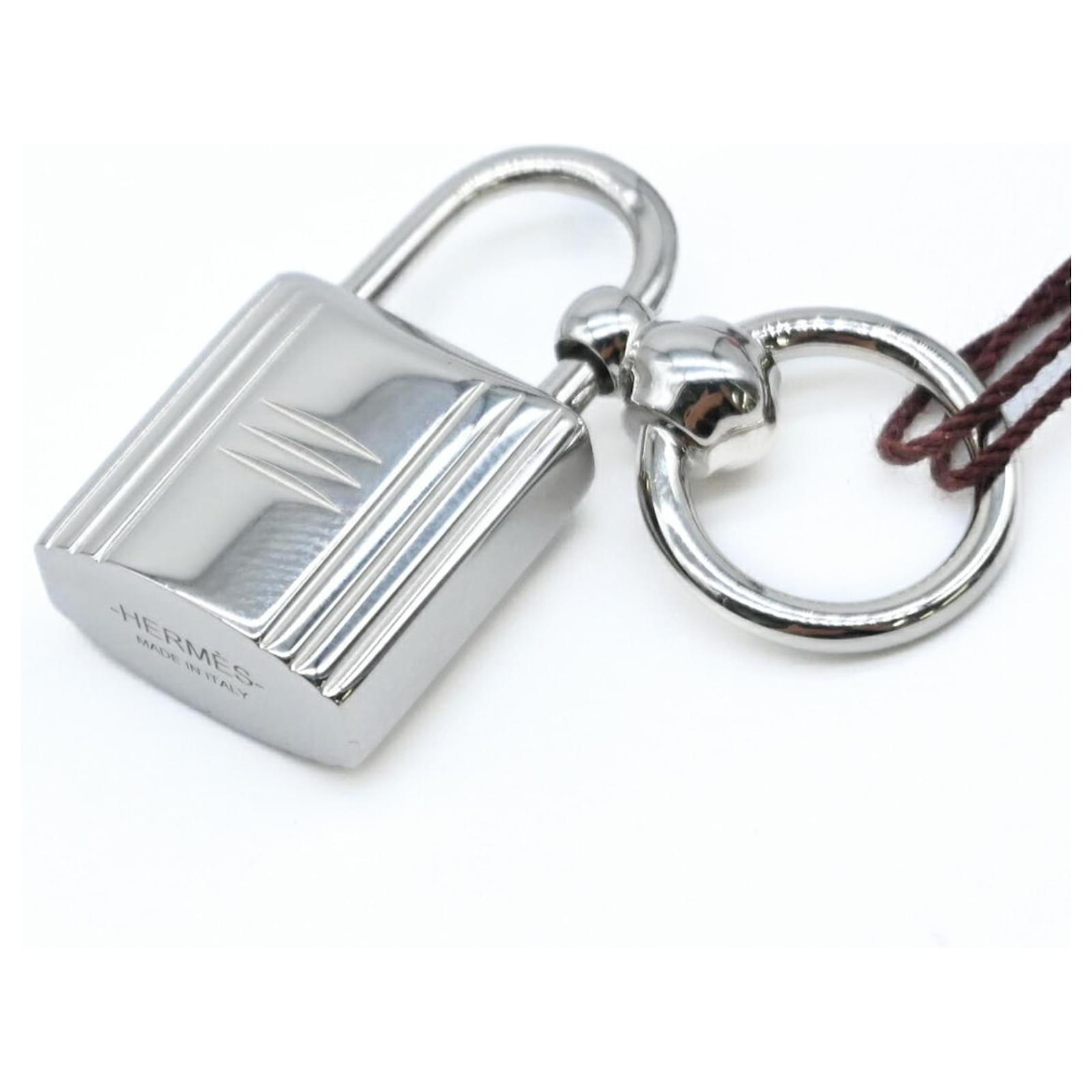 Le foulard à cadenas en métal argenté Hermes Twilly Ring est un accessoire conçu pour les femmes. Mesurant 4 cm de hauteur et 2,5 cm de largeur, cet anneau à foulard est un ajout élégant à toute tenue. Il est en condition ouverte mais n'a jamais été utilisé, classé comme un article d'exposition. Le produit est livré avec sa boîte d'origine, et les acheteurs potentiels sont encouragés à consulter les images pour une compréhension claire de l'état de l'article et des accessoires inclus.