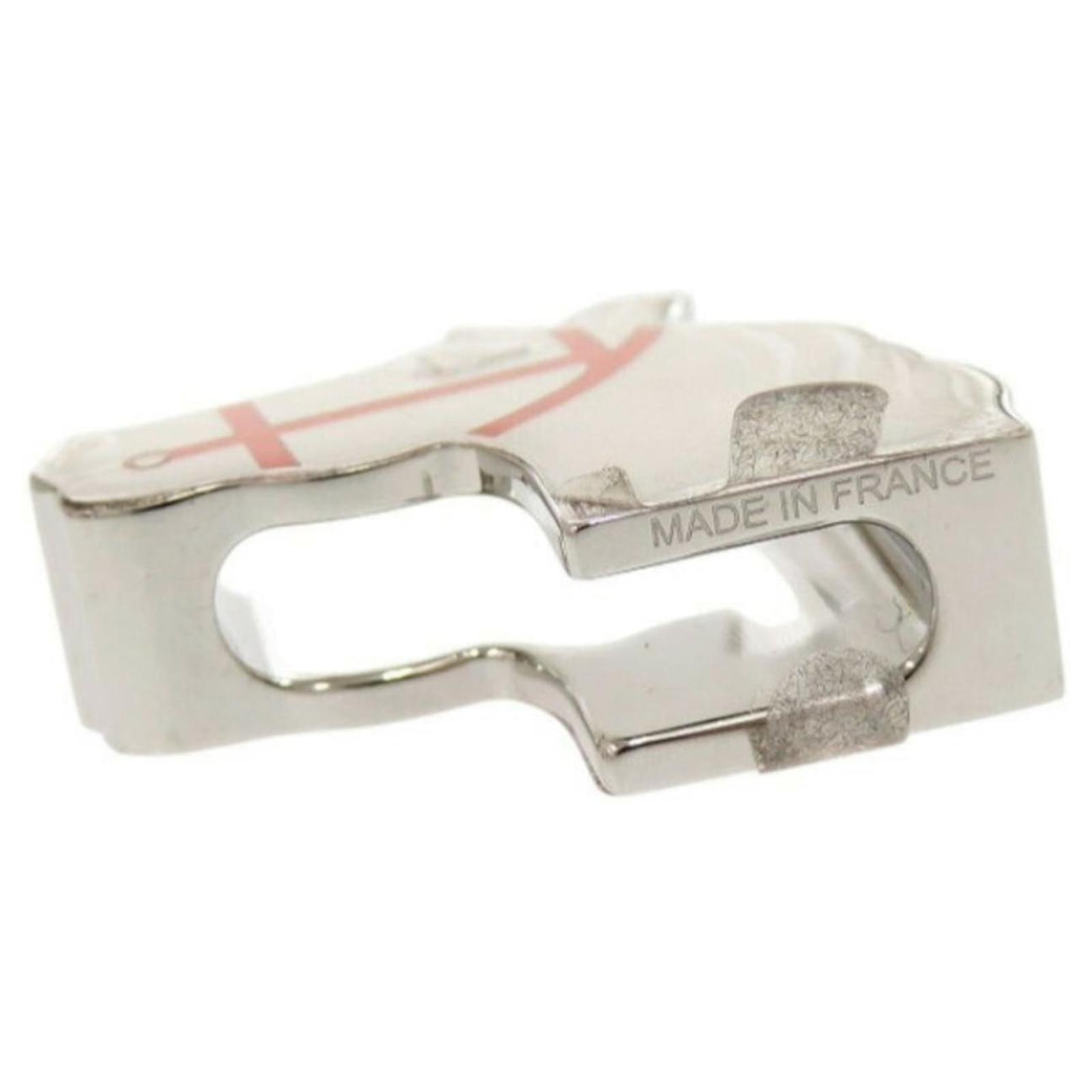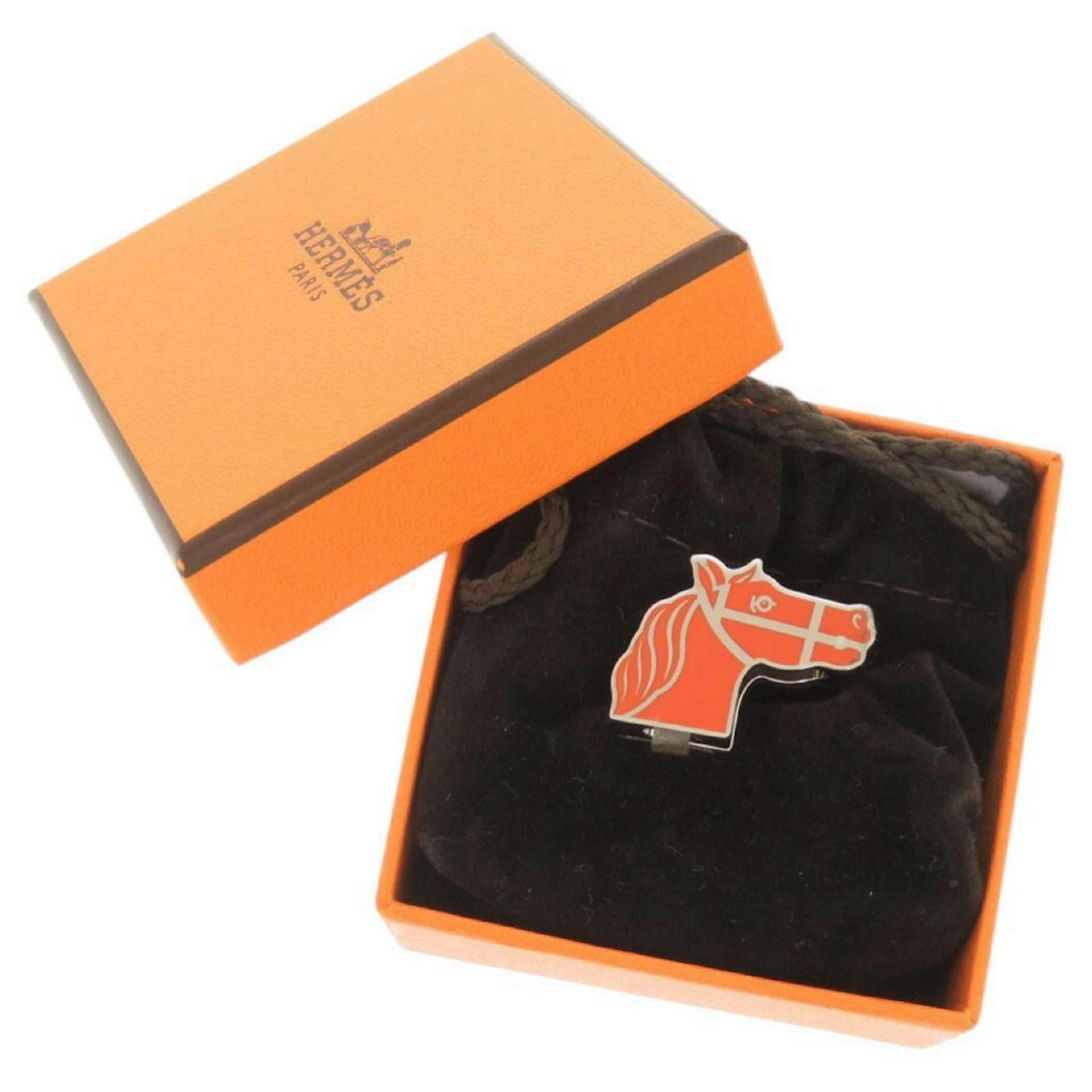 Cet anneau de foulard en métal Hermès Cadrege est conçu dans une couleur orange vibrante et est fabriqué en métal. Mesurant 1,7 cm de hauteur et 2,3 cm de largeur, c'est un accessoire élégant pour les foulards twilly. L'article est inutilisé et a été ouvert pour exposition, classé comme Rang N. Il vient de France et comprend une boîte et un sac anti-poussière pour le rangement. Les acheteurs potentiels sont encouragés à consulter les images pour une compréhension claire de l'état de l'article et des accessoires inclus.