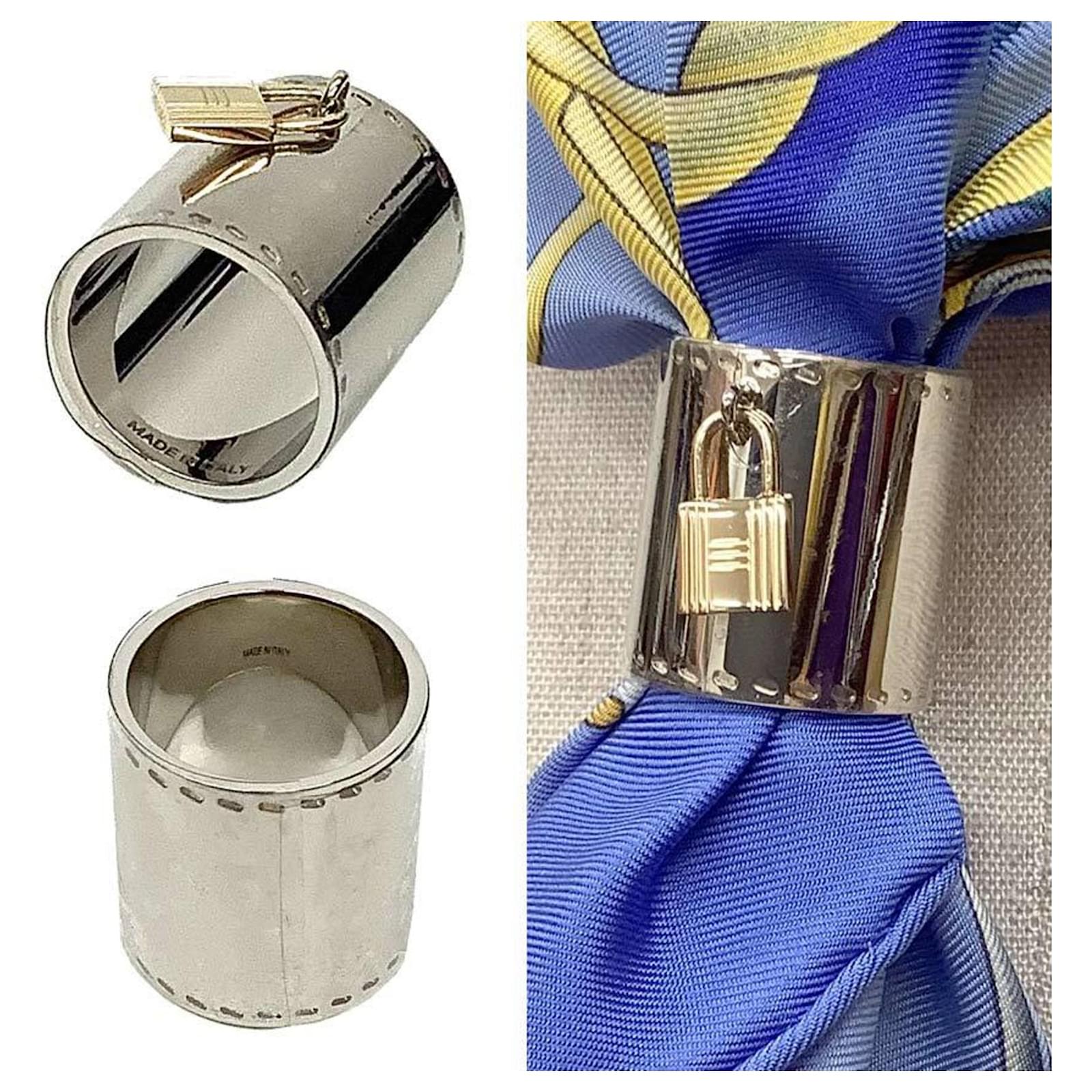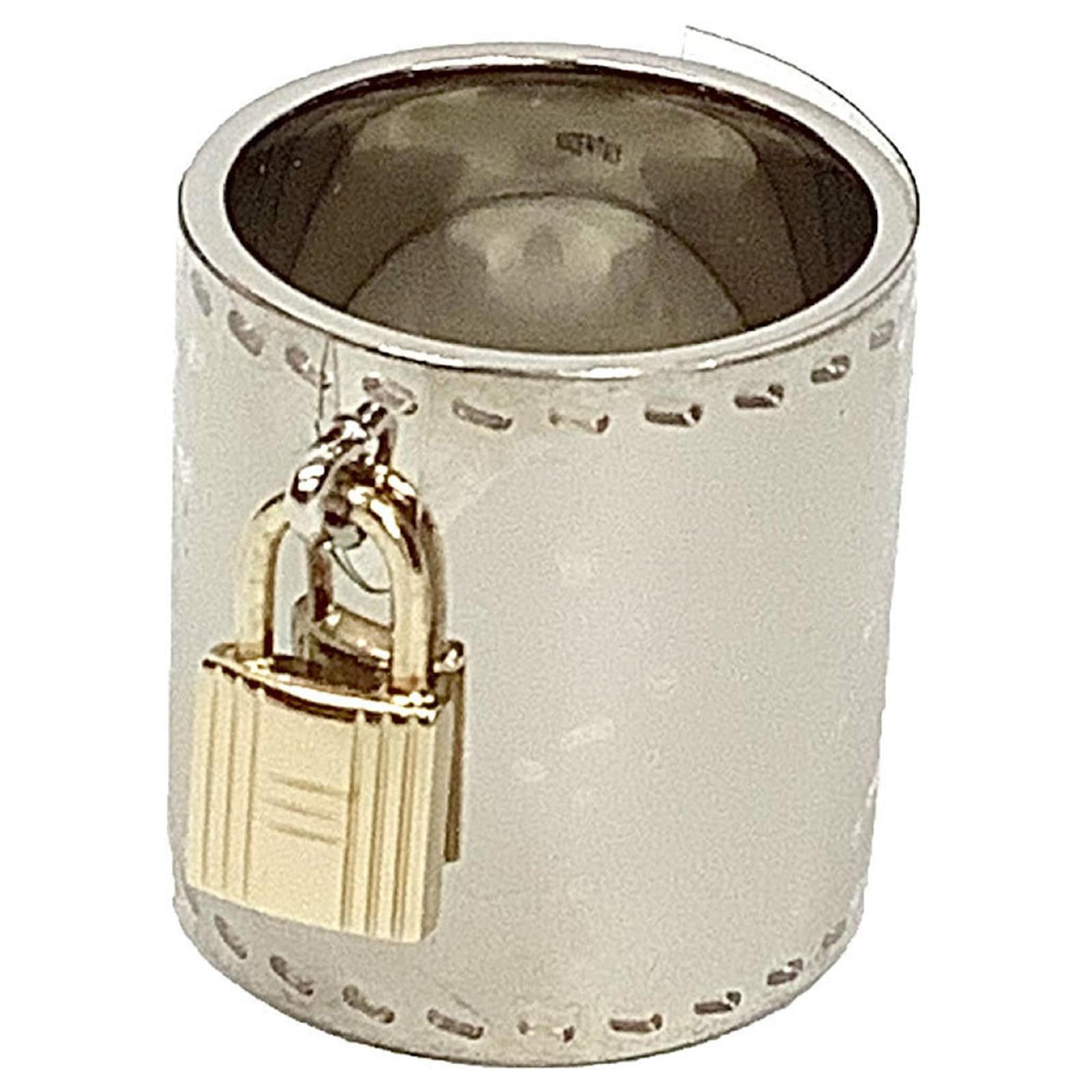 Ring Anneau de foulard Hermès avec charme de cadenas Argenté Doré