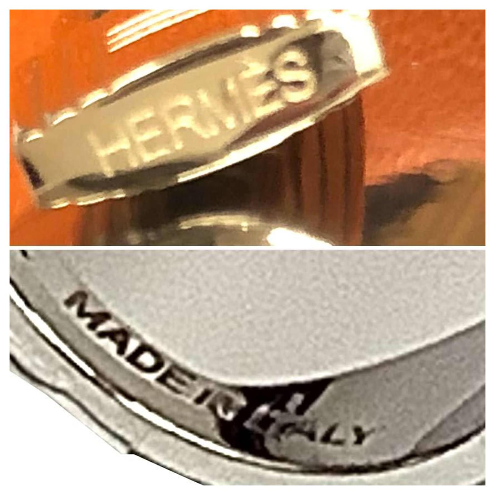 Cet anneau de foulard Hermes est fabriqué en Italie et présente un design unique de charme en forme de cadenas, disponible en tons argentés et dorés. Mesurant 2,5 cm x 2,2 cm (0,98'' x 0,86''), cet accessoire convient aussi bien aux hommes qu'aux femmes. L'article est en état ouvert mais n'a jamais été utilisé, classé comme un article d'exposition. Il est livré avec une boîte et un sac anti-poussière. Les acheteurs sont invités à consulter les images du produit pour un aperçu détaillé de l'état de l'article et des accessoires inclus.