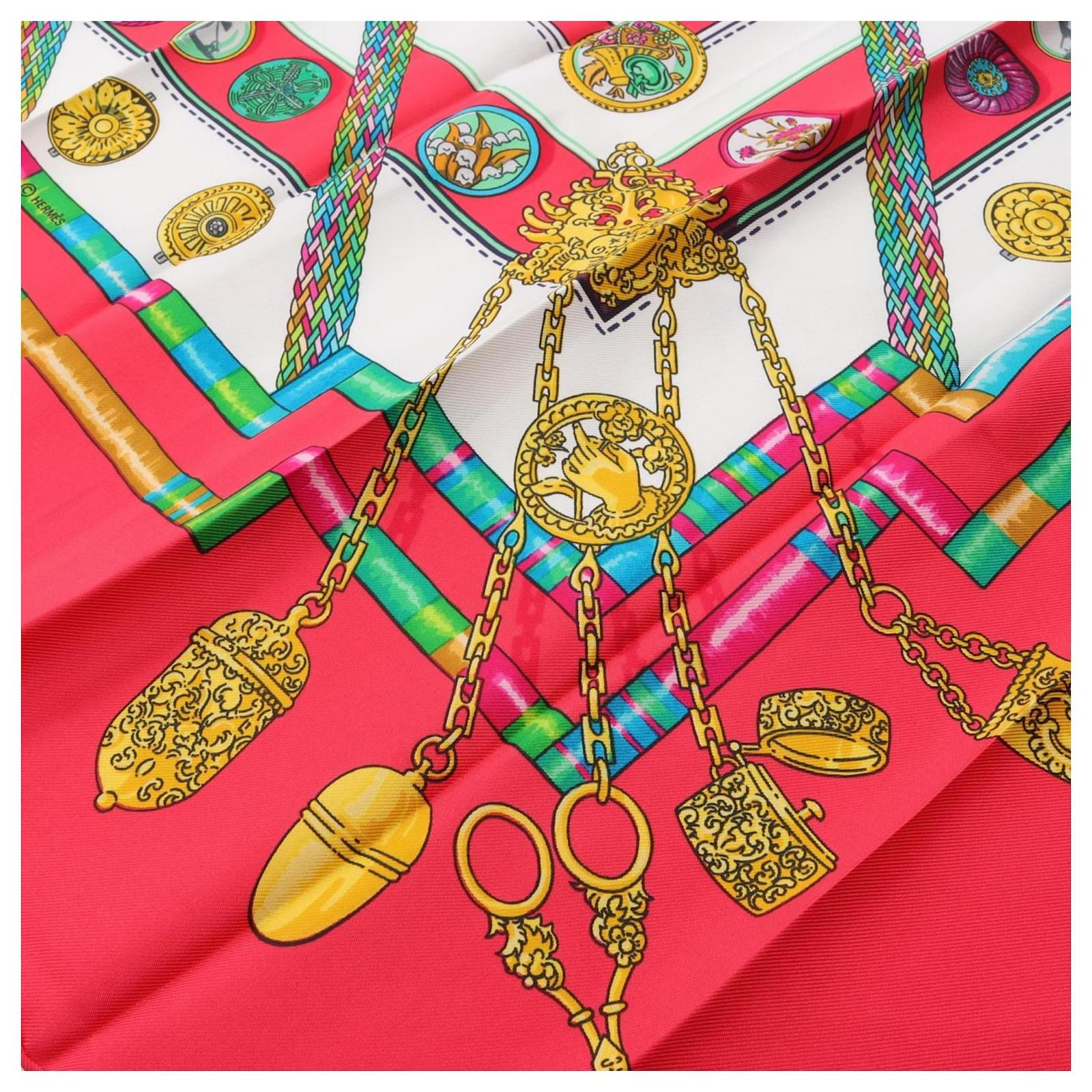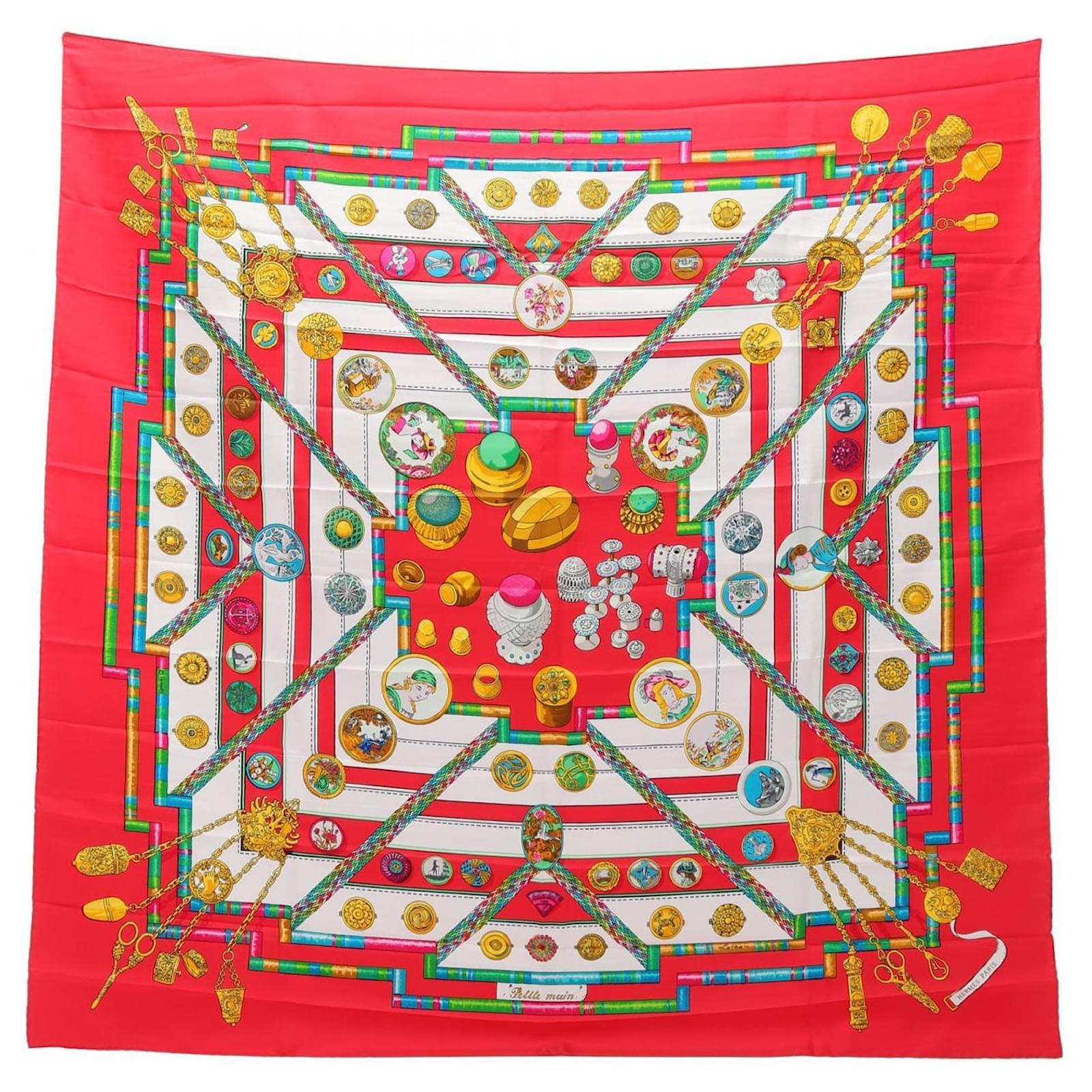 Carré 90 Petite Main en Soie Hermès Rouge Multicolore