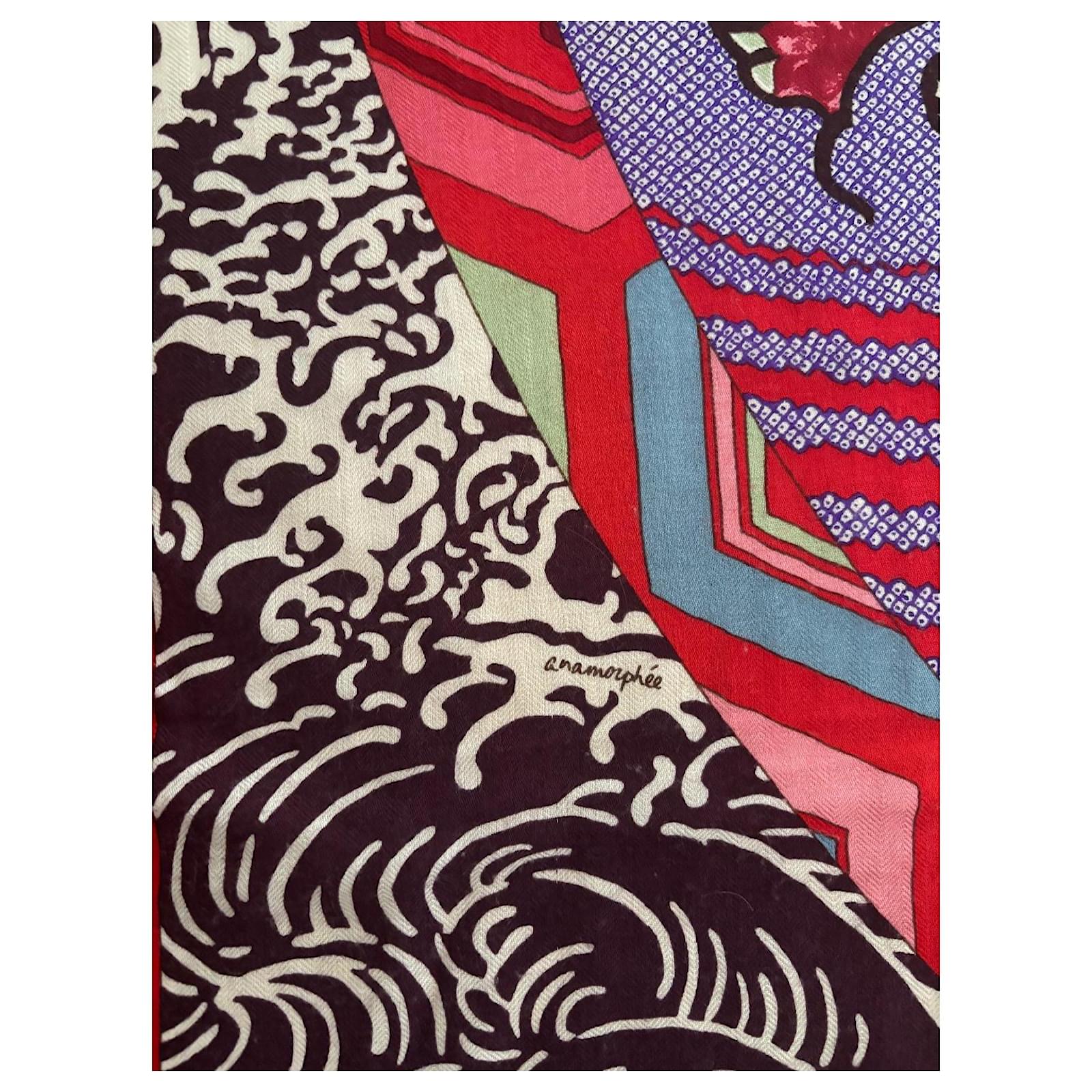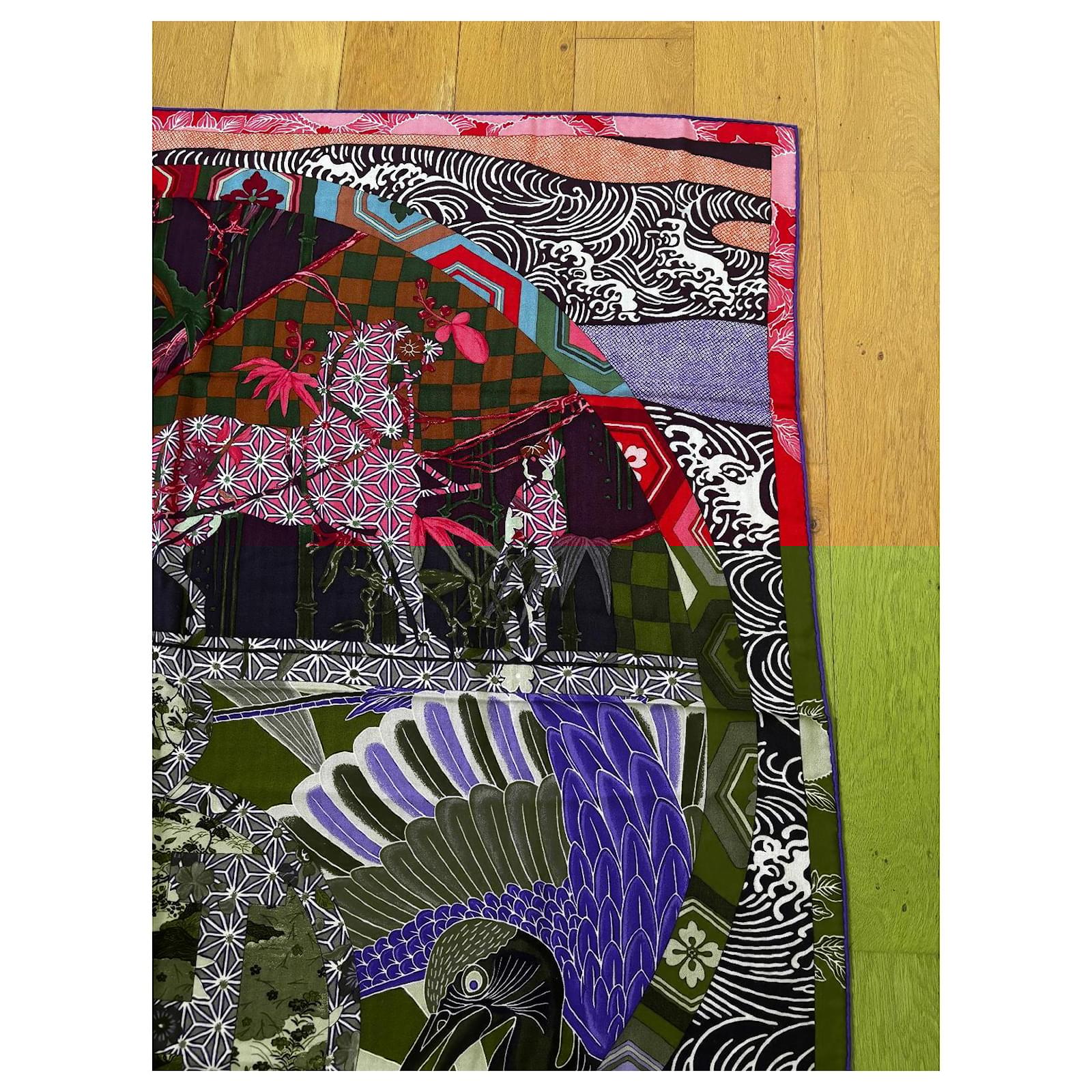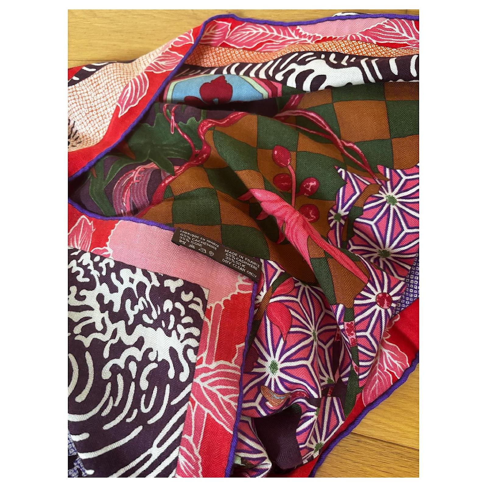 Sûrement un des plus beaux modèles Hermès. Châle 140*140 en cachemire 65% et soie 35%. Un mariage de couleurs exceptionnel. Excellent état dans sa boîte.