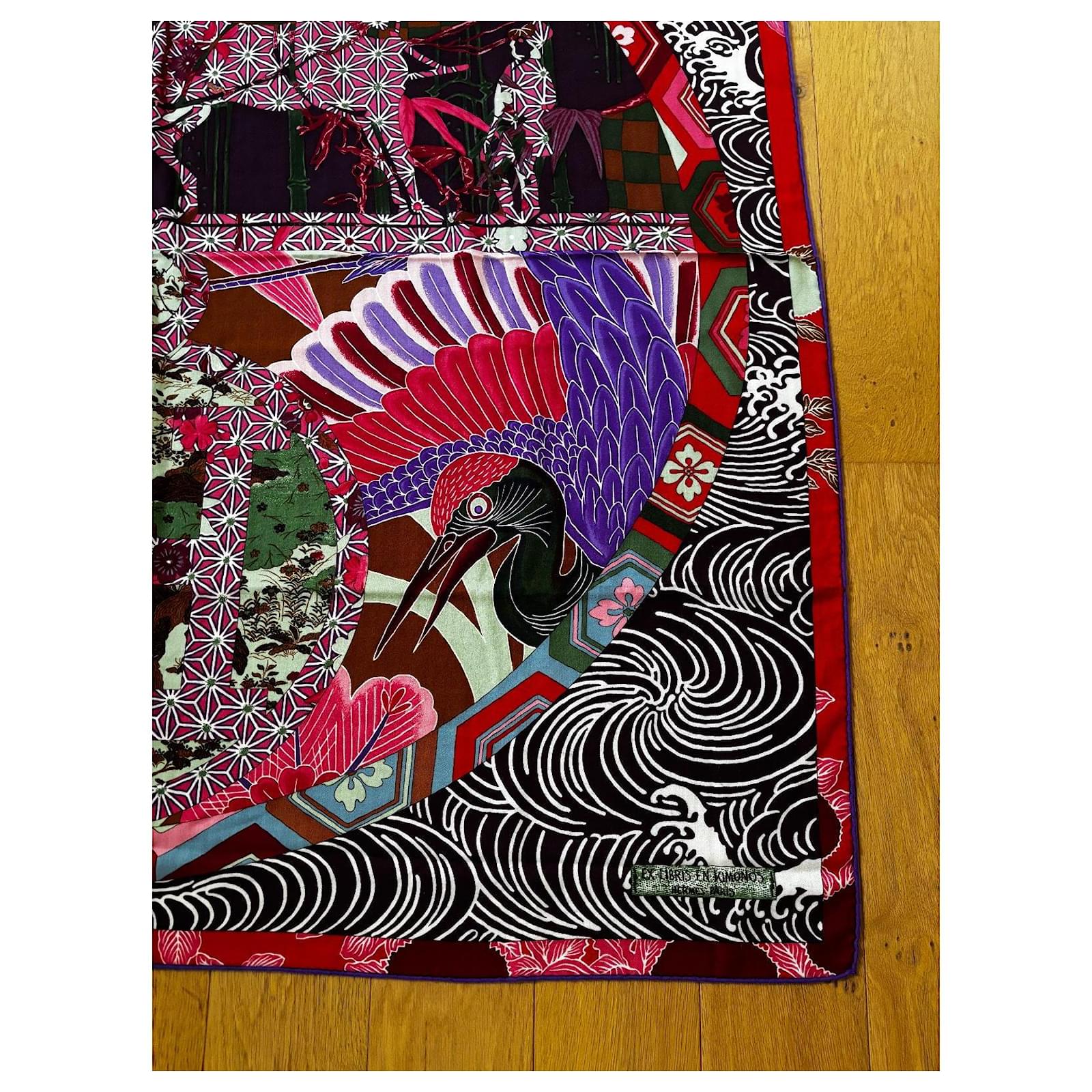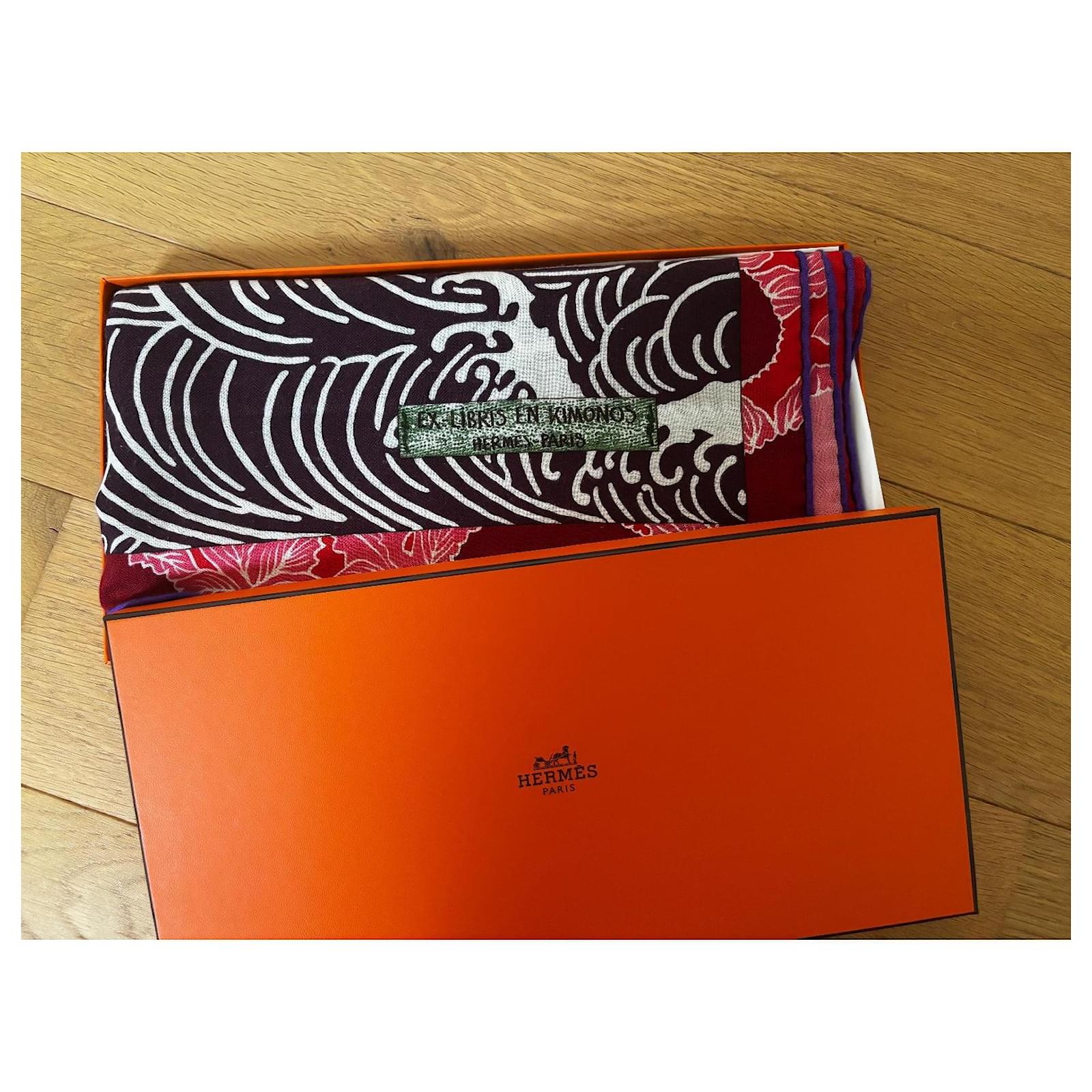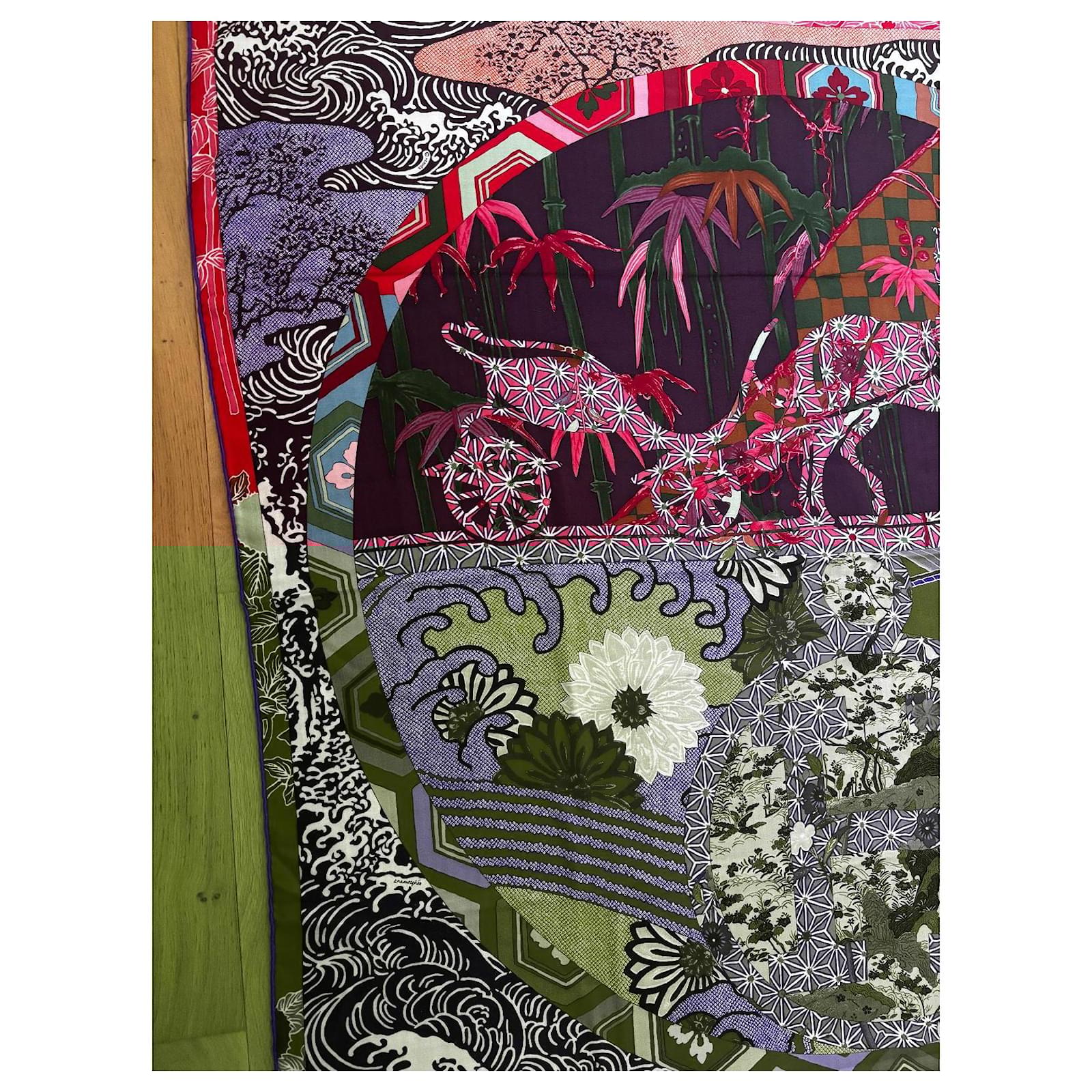 Sûrement un des plus beaux modèles Hermès. Châle 140*140 en cachemire 65% et soie 35%. Un mariage de couleurs exceptionnel. Excellent état dans sa boîte.