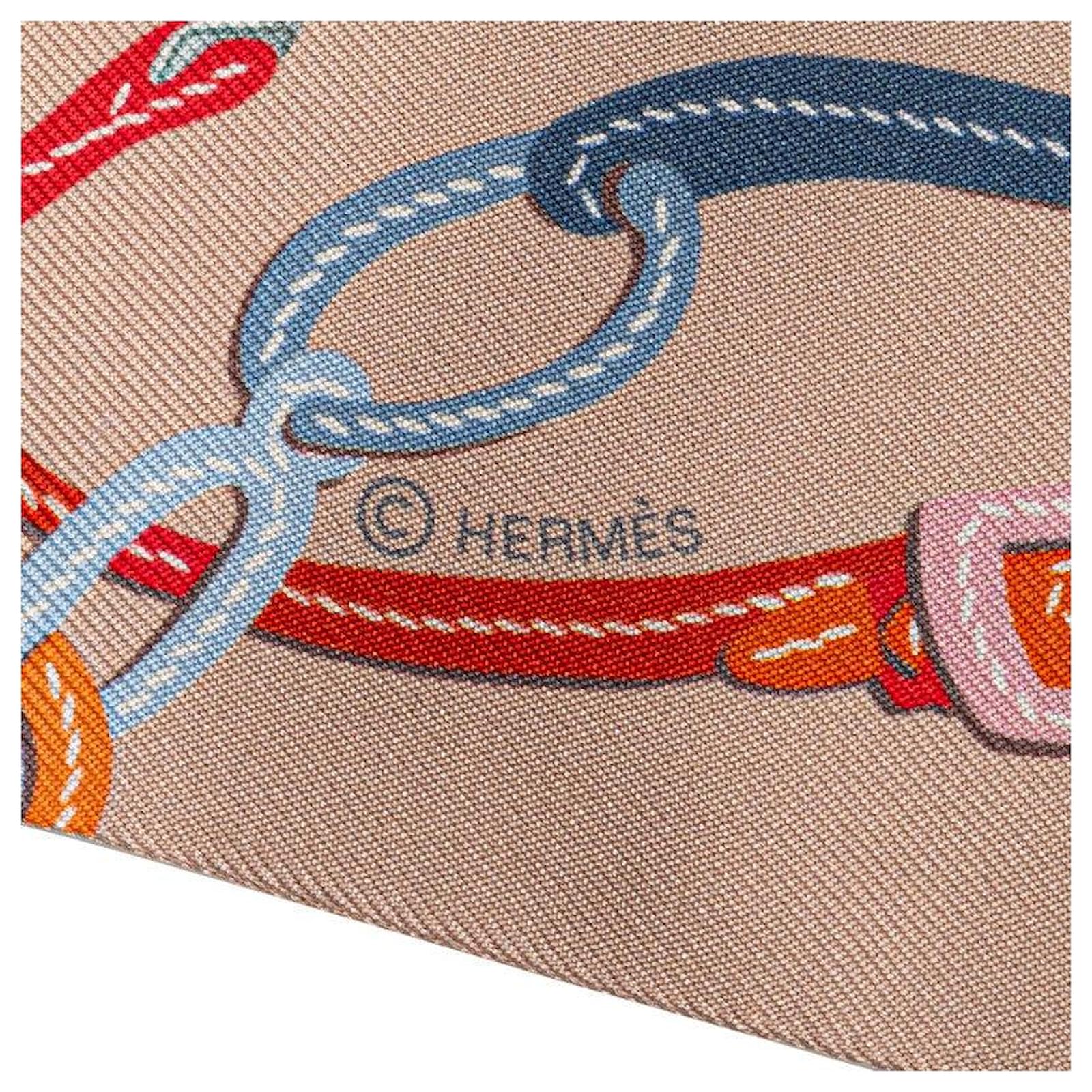 Écharpe en soie Applique Pique Brides de Gala d'Hermès Marron Beige