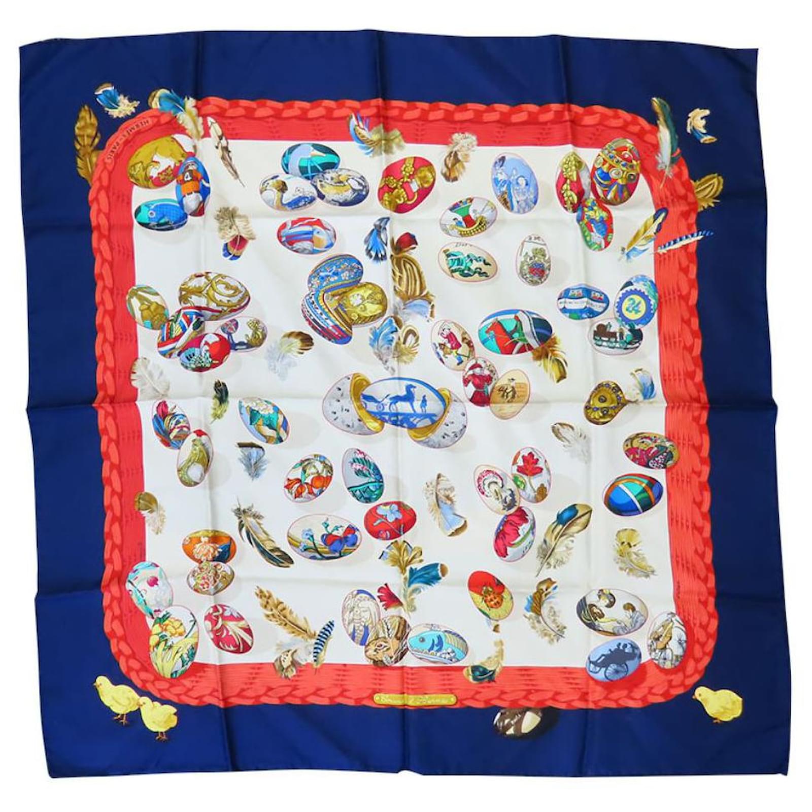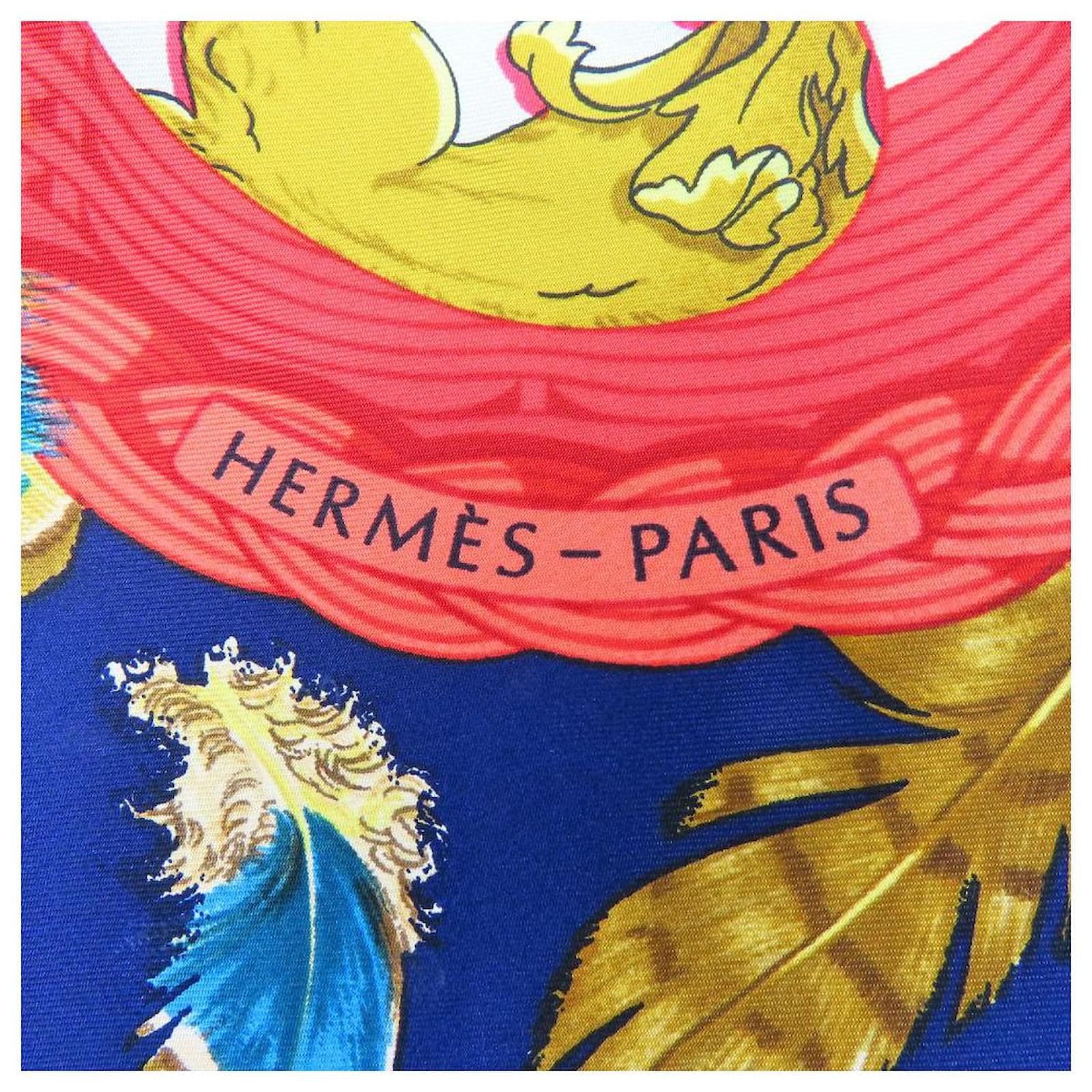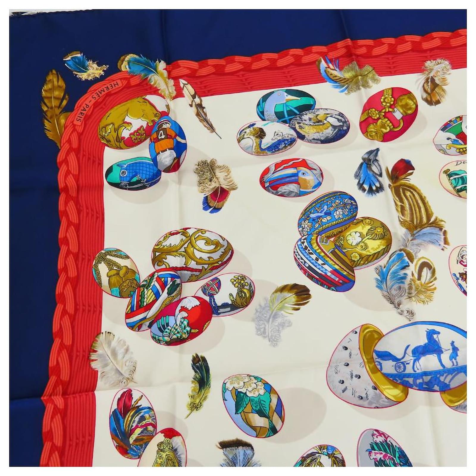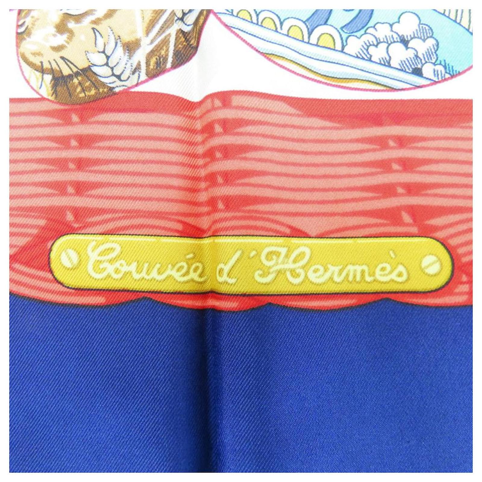 Hermès Écharpe en soie COUVEE D'HERMES Blanc Rouge Bleu Bleu Marine