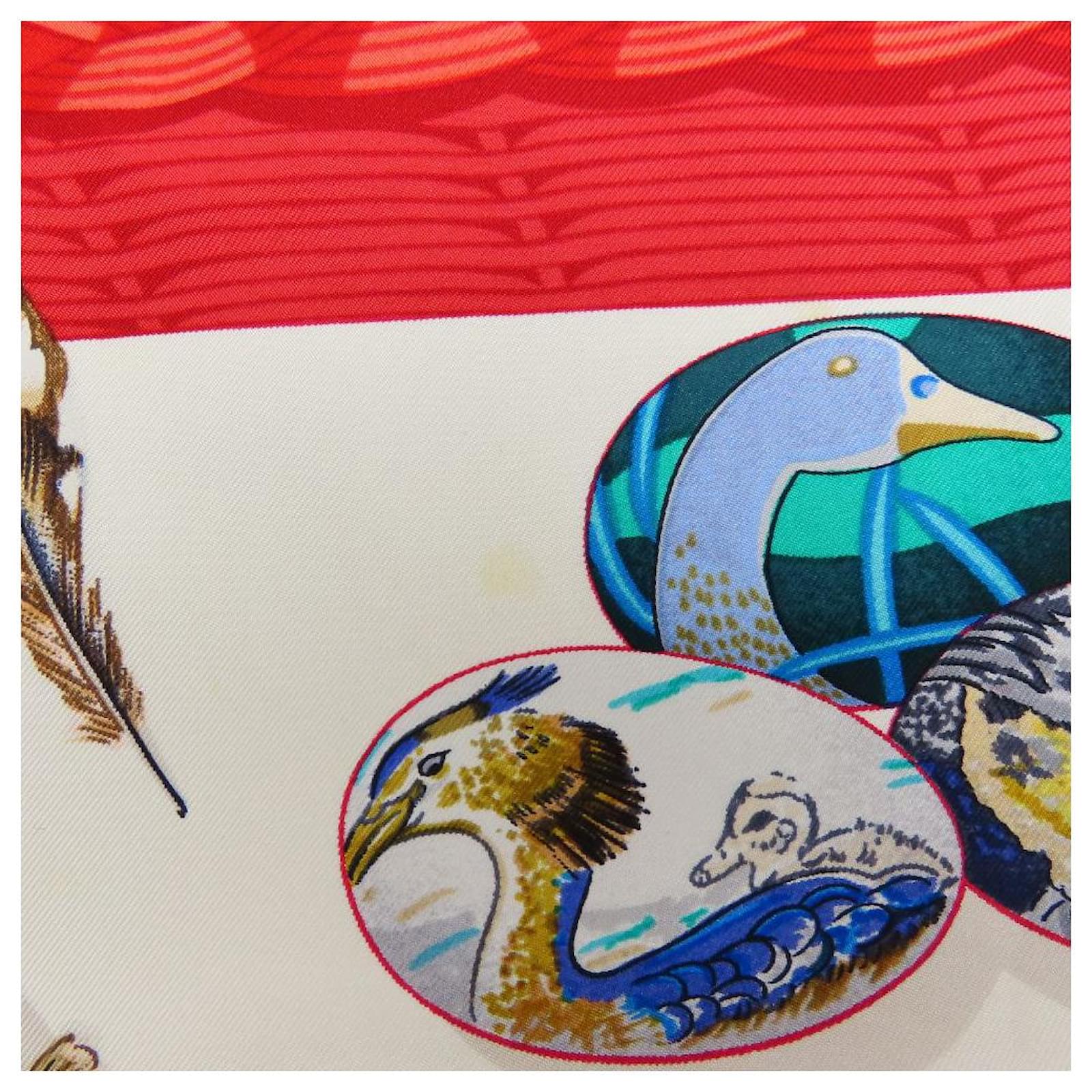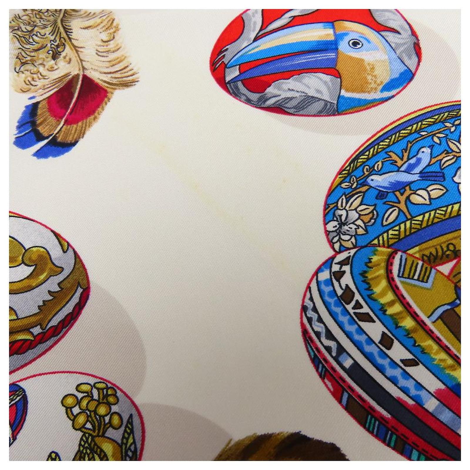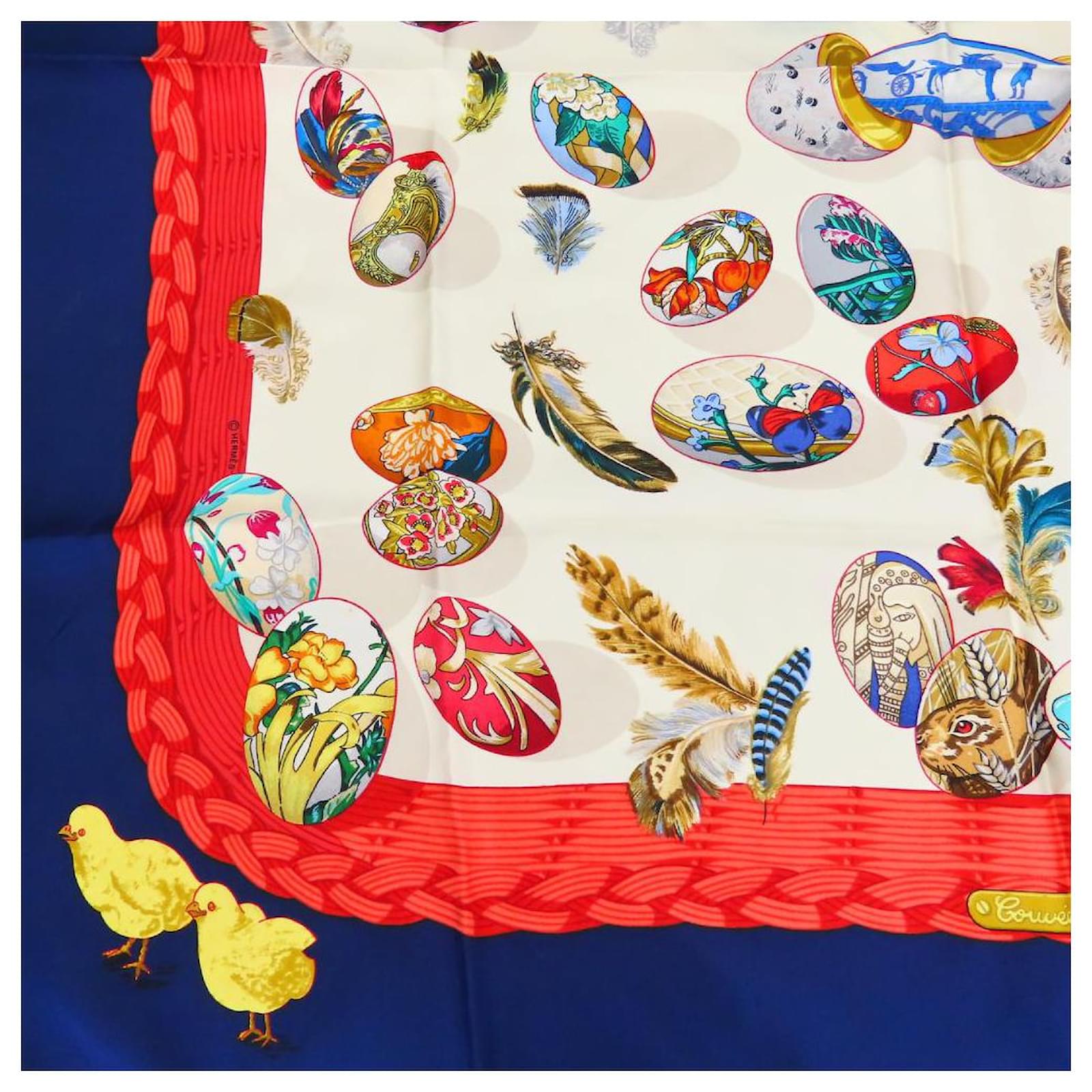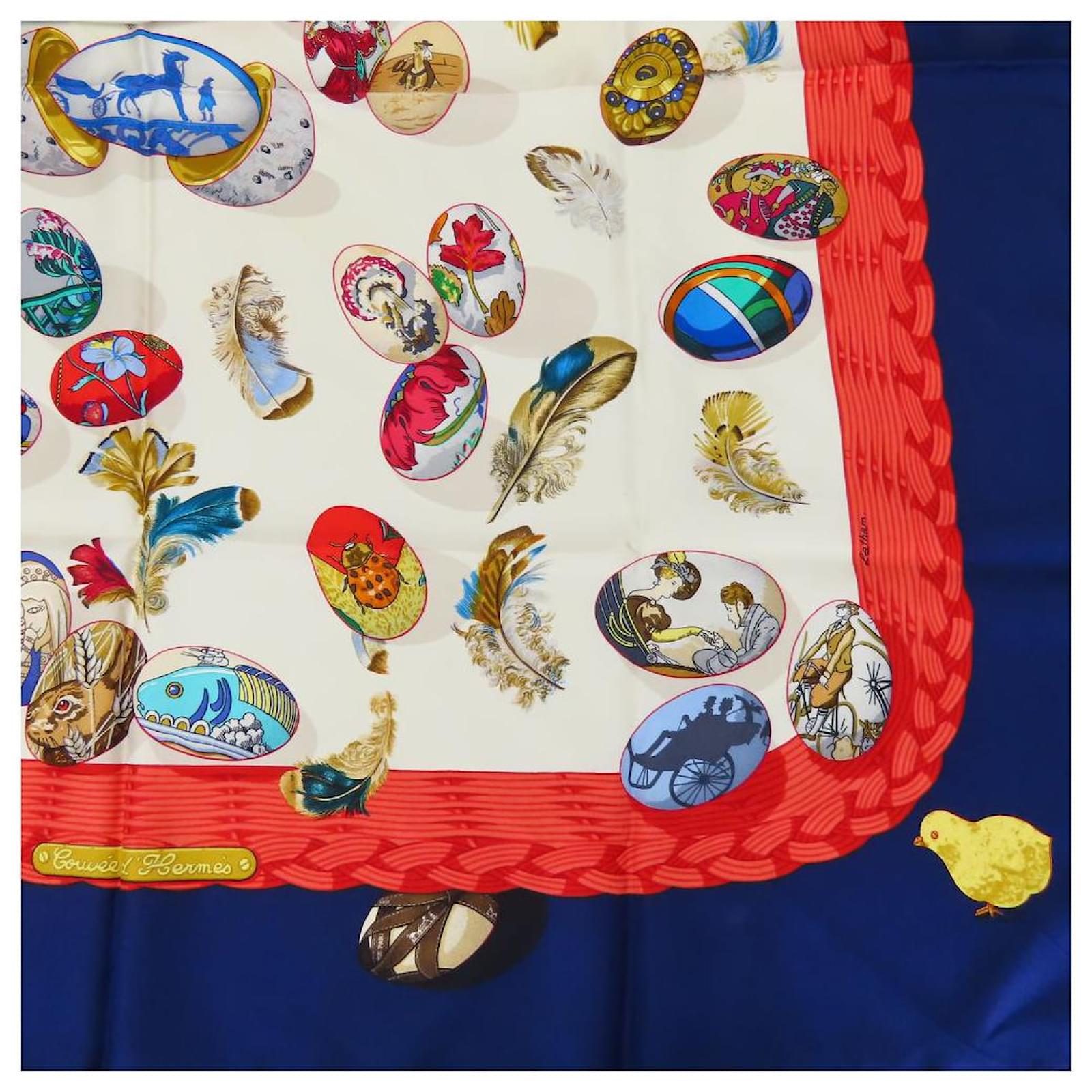 Hermès Écharpe en soie COUVEE D'HERMES Blanc Rouge Bleu Bleu Marine