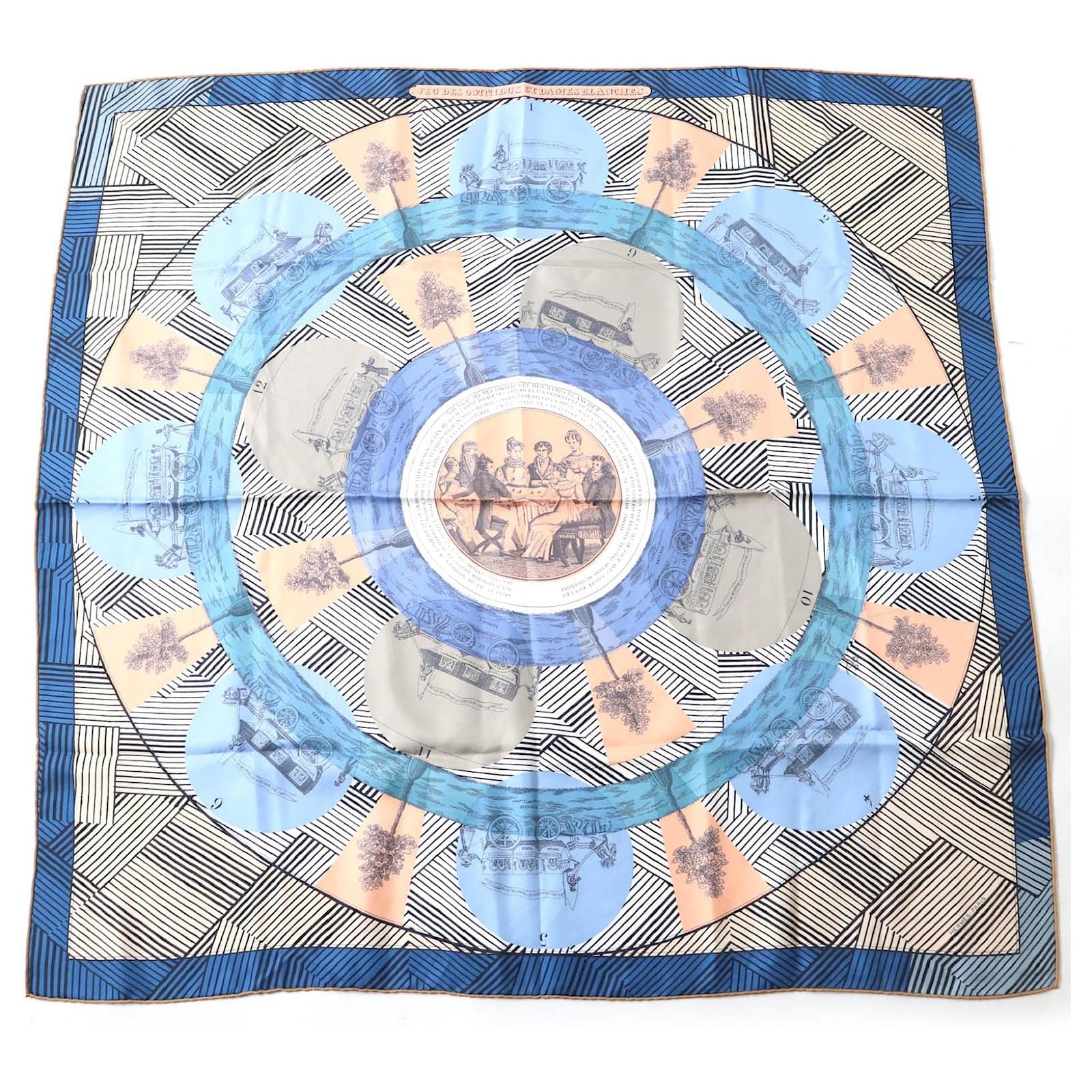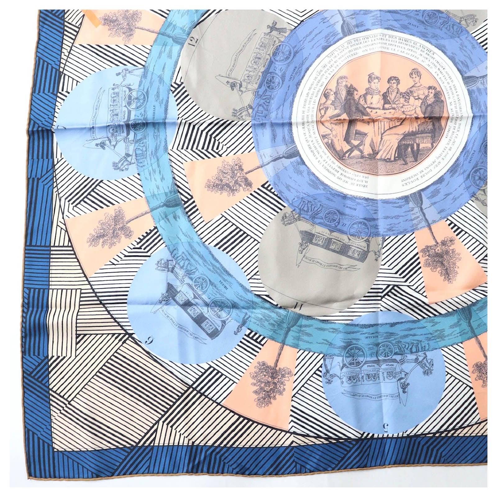 Écharpe en soie Hermès JEU DES OMNIBUS ET DAMES Bleu Multicolore
