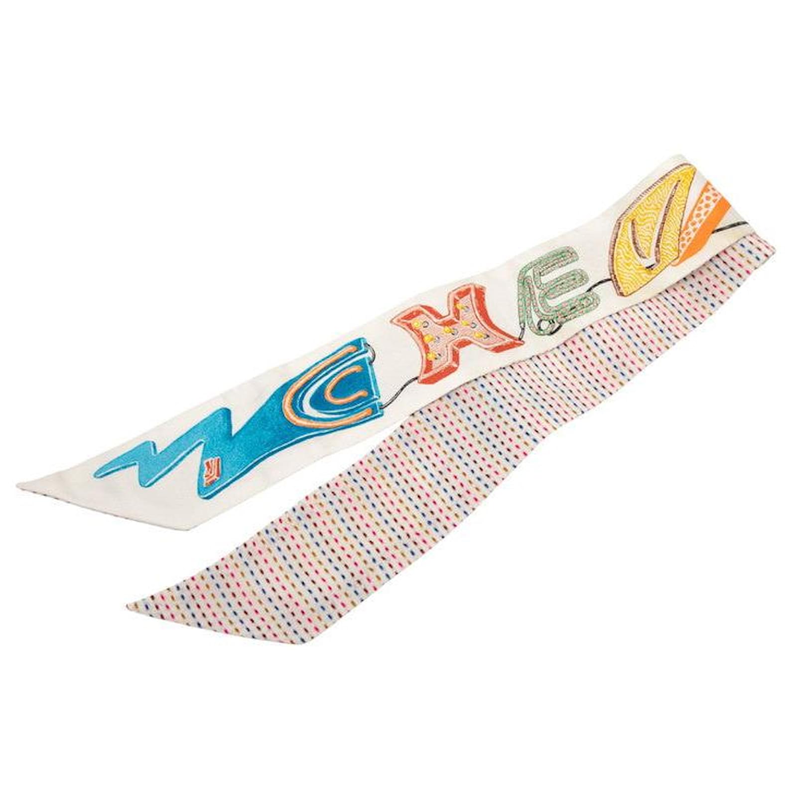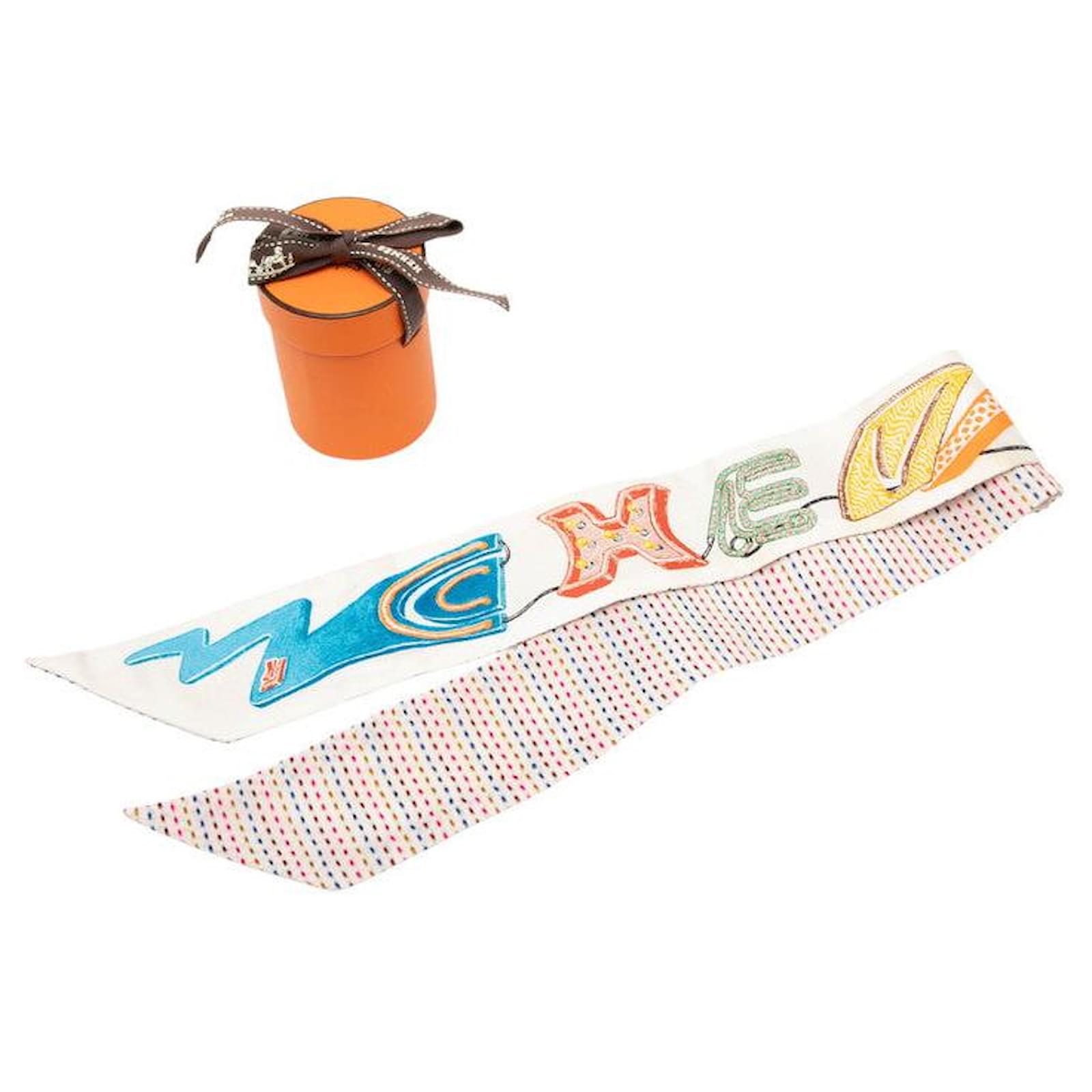 Écharpe en soie néon Chevaloscope d'Hermès Blanc