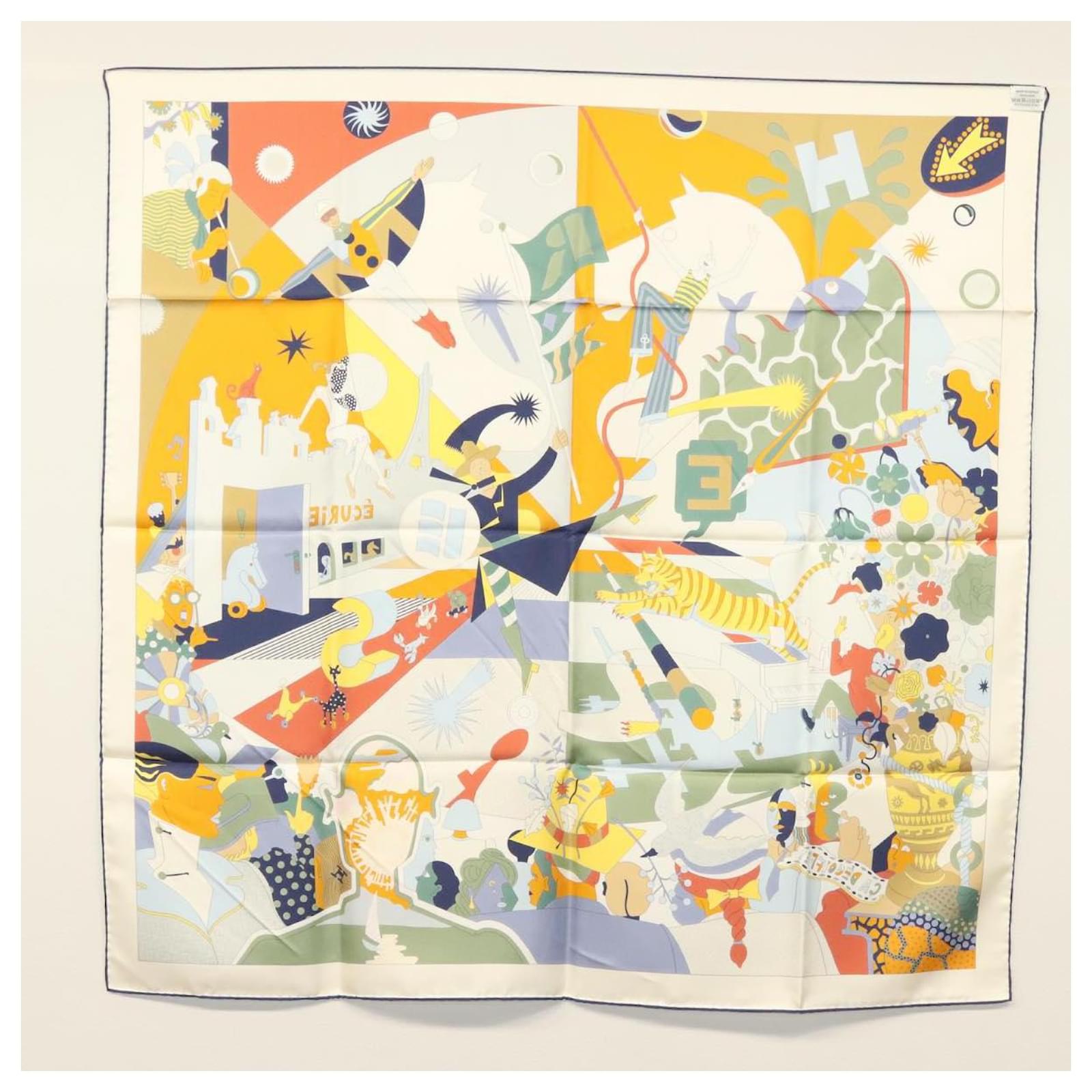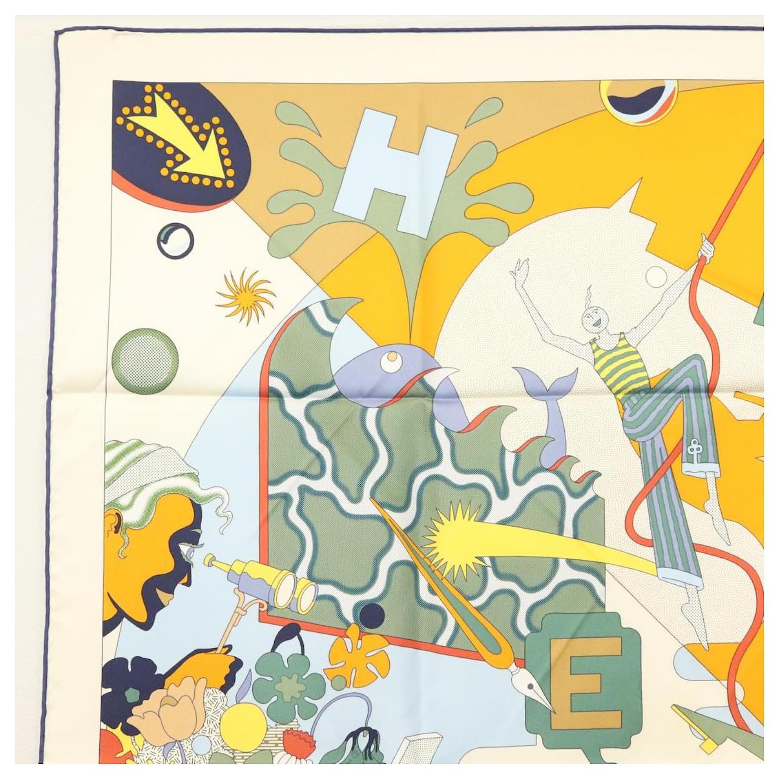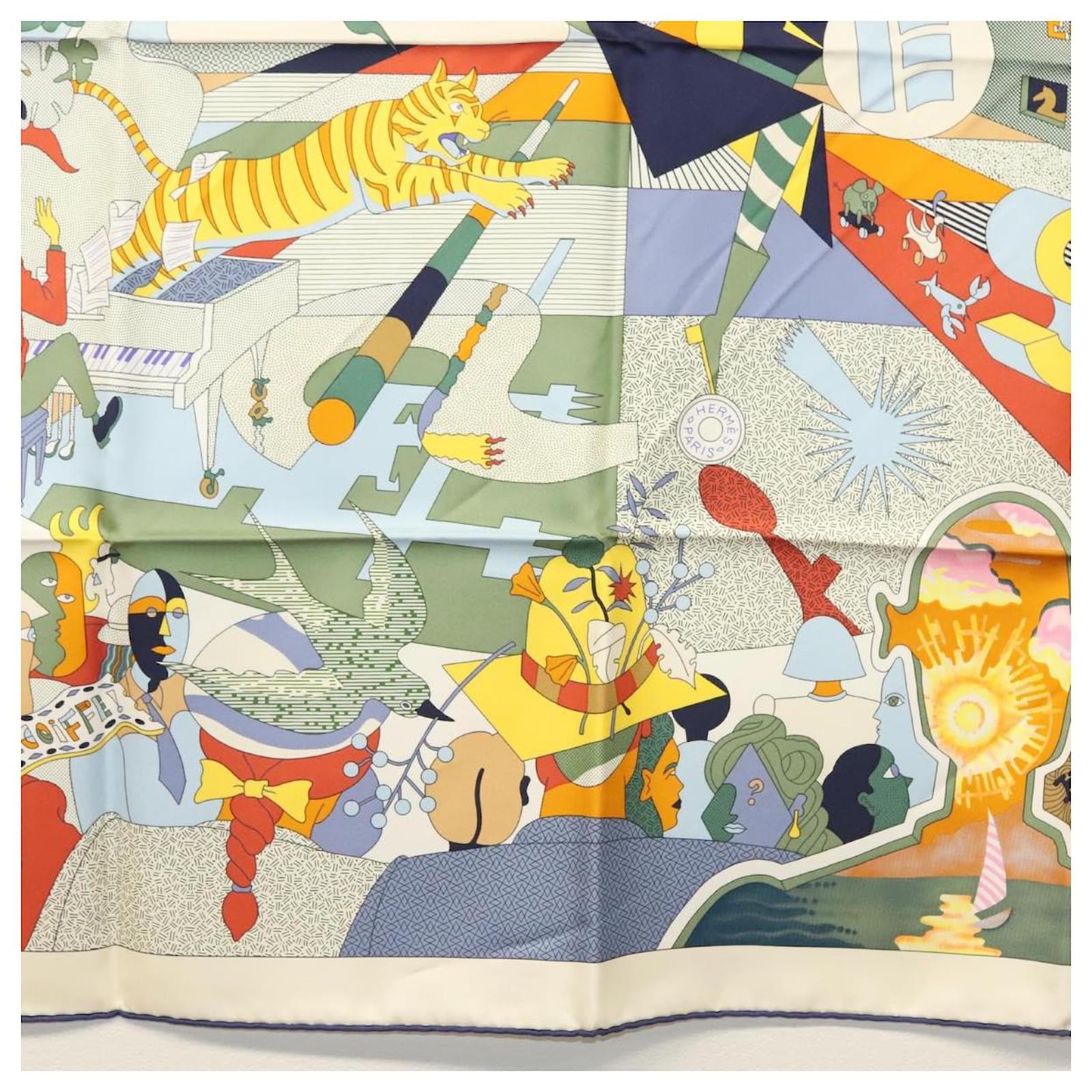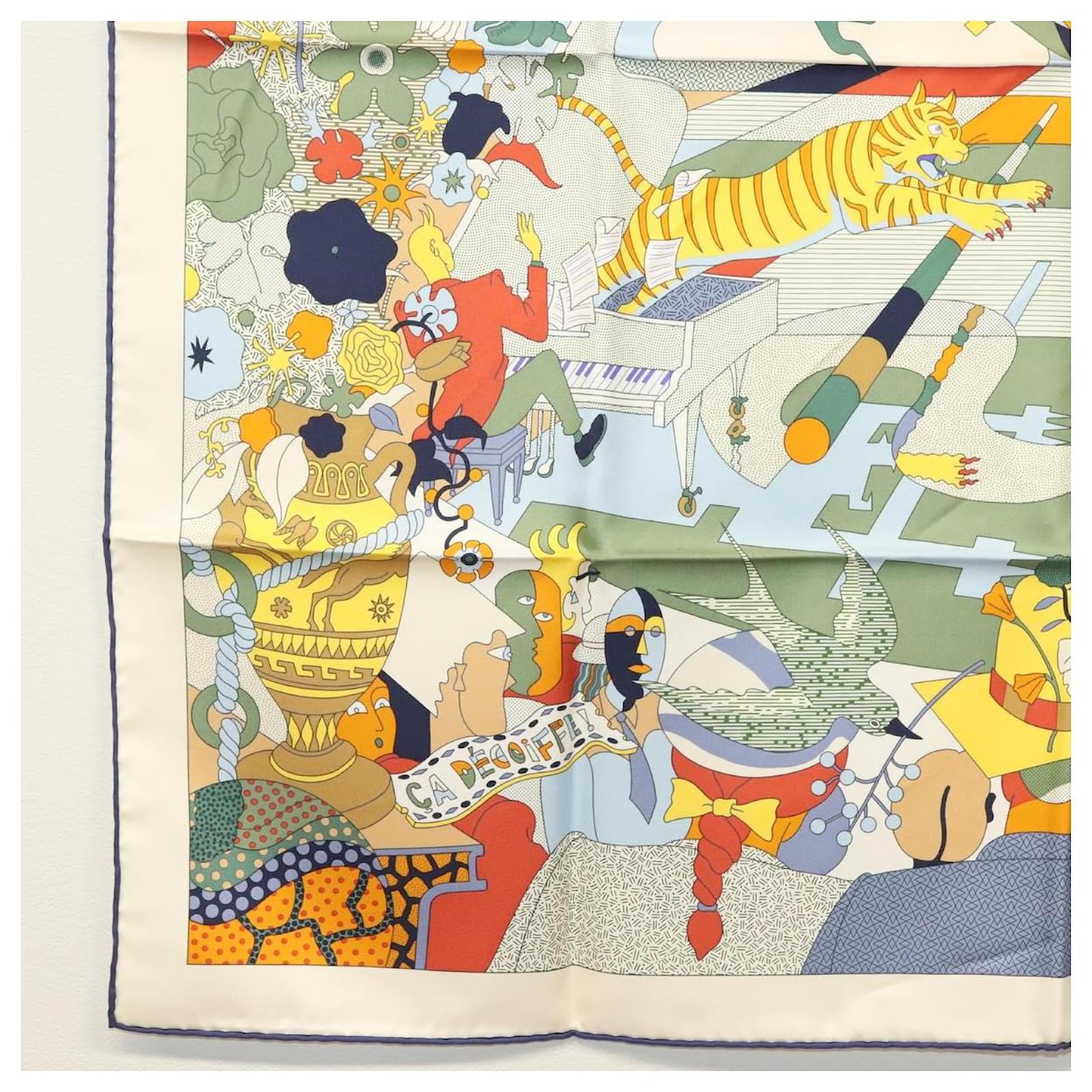Hermès Écharpe HERMES Carré 90 ""CA DECOIFFE!"" Soie Beige Auth 137450M