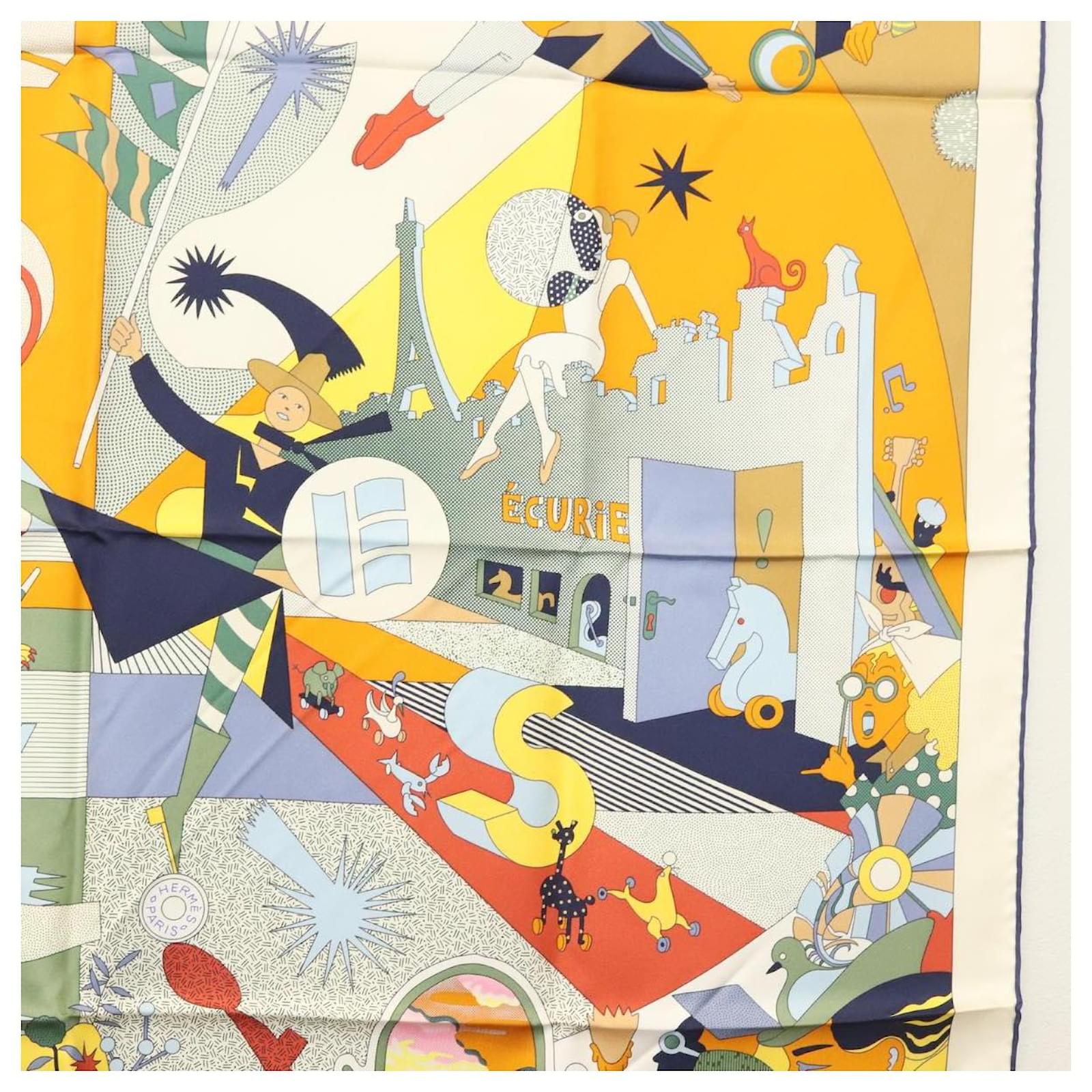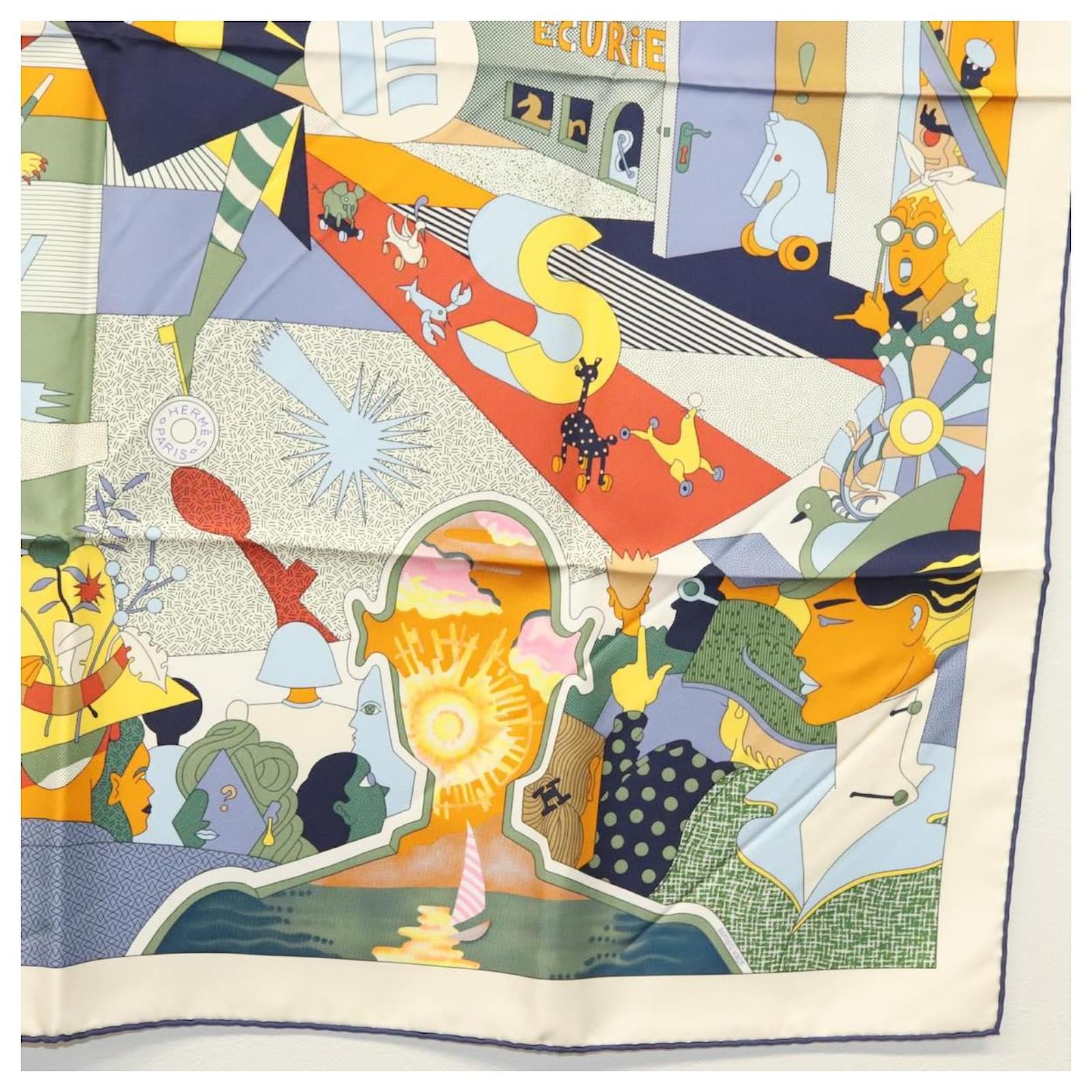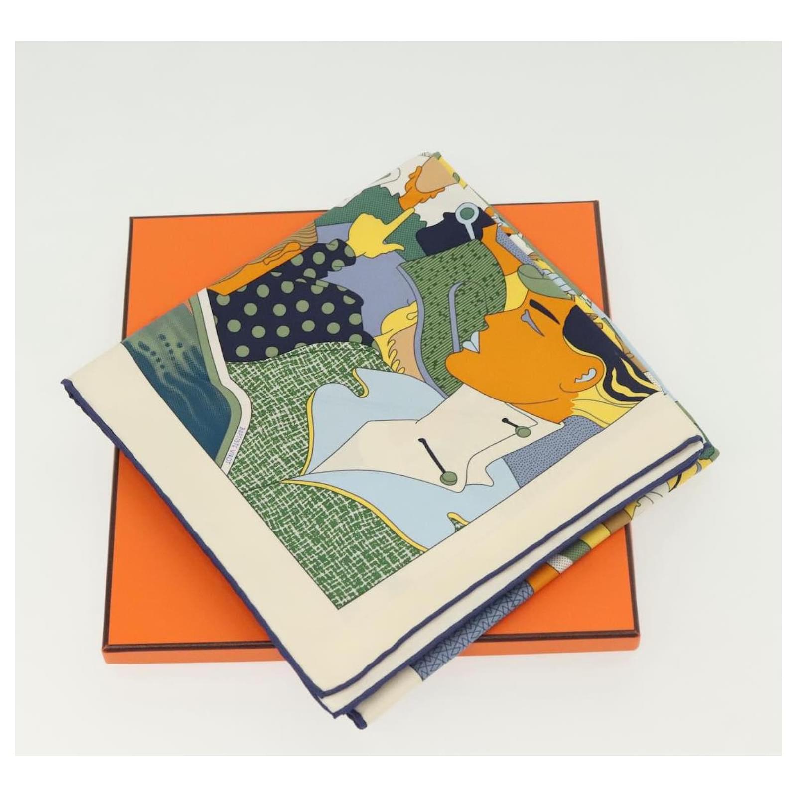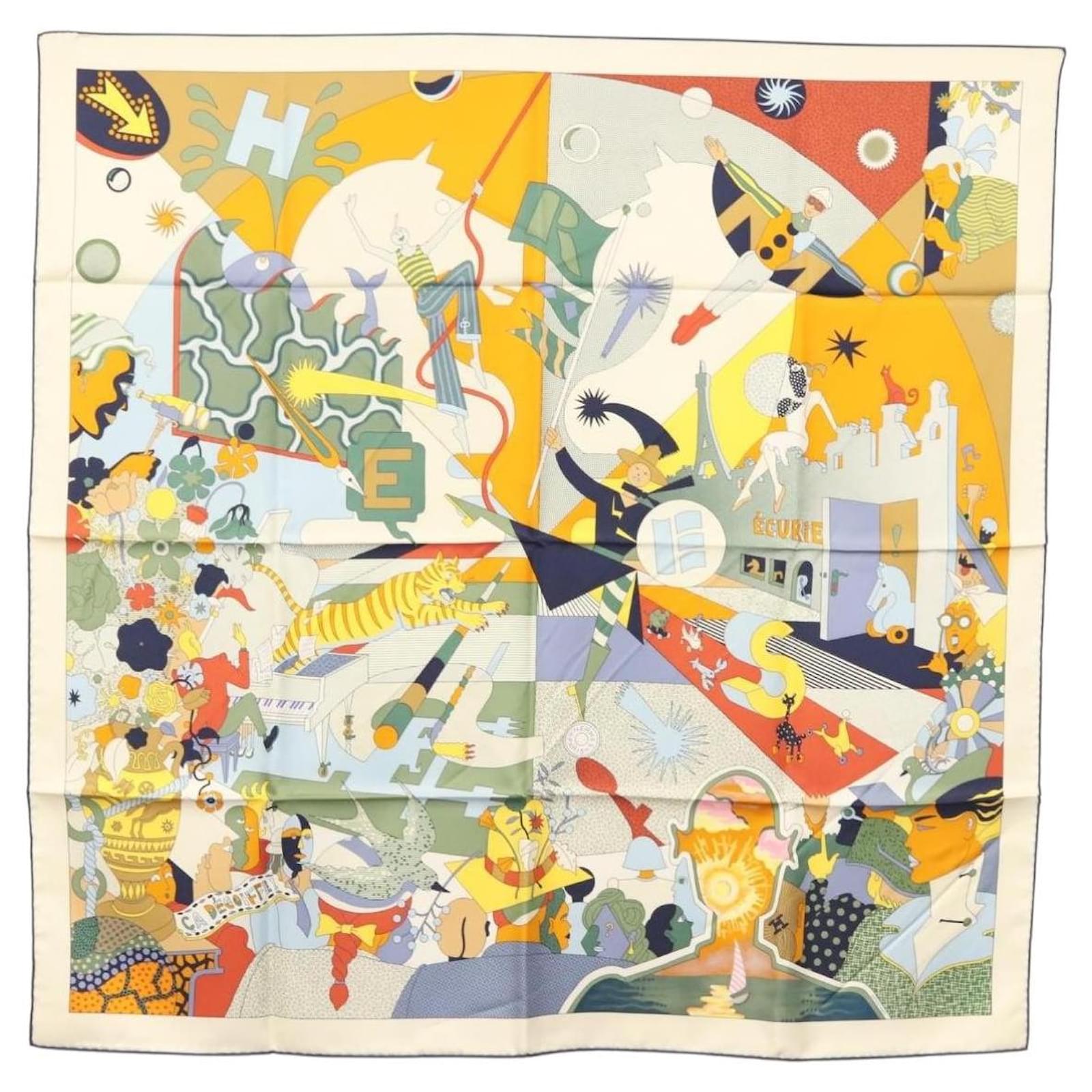Hermès Écharpe HERMES Carré 90 ""CA DECOIFFE!"" Soie Beige Auth 137450M