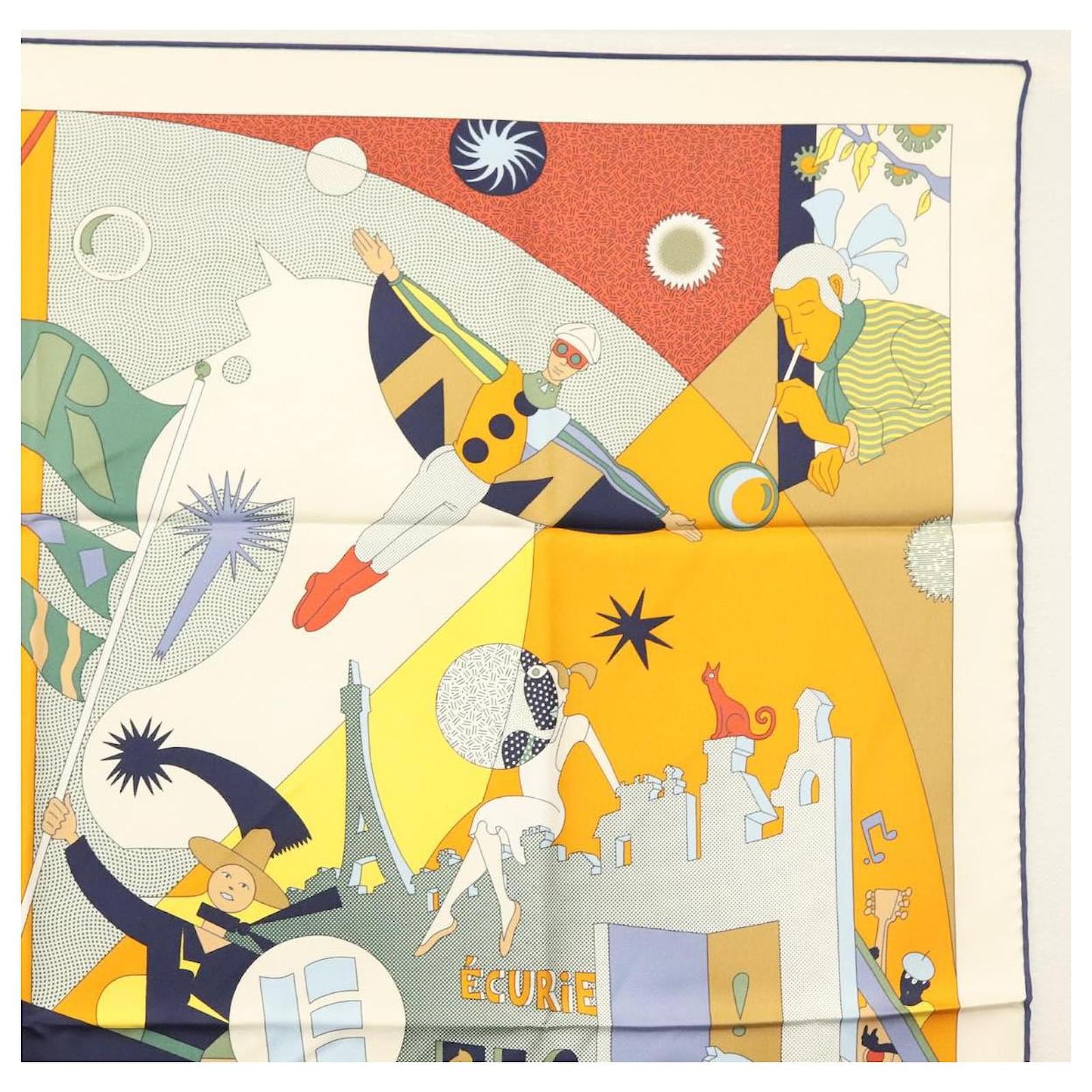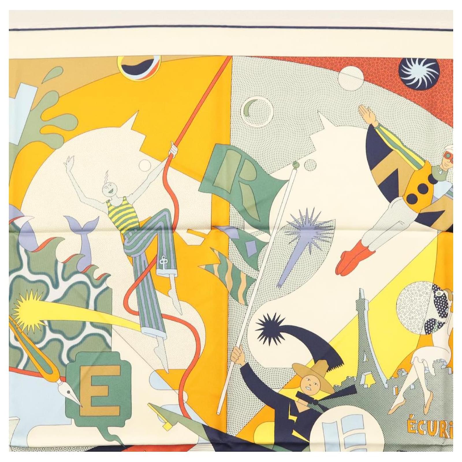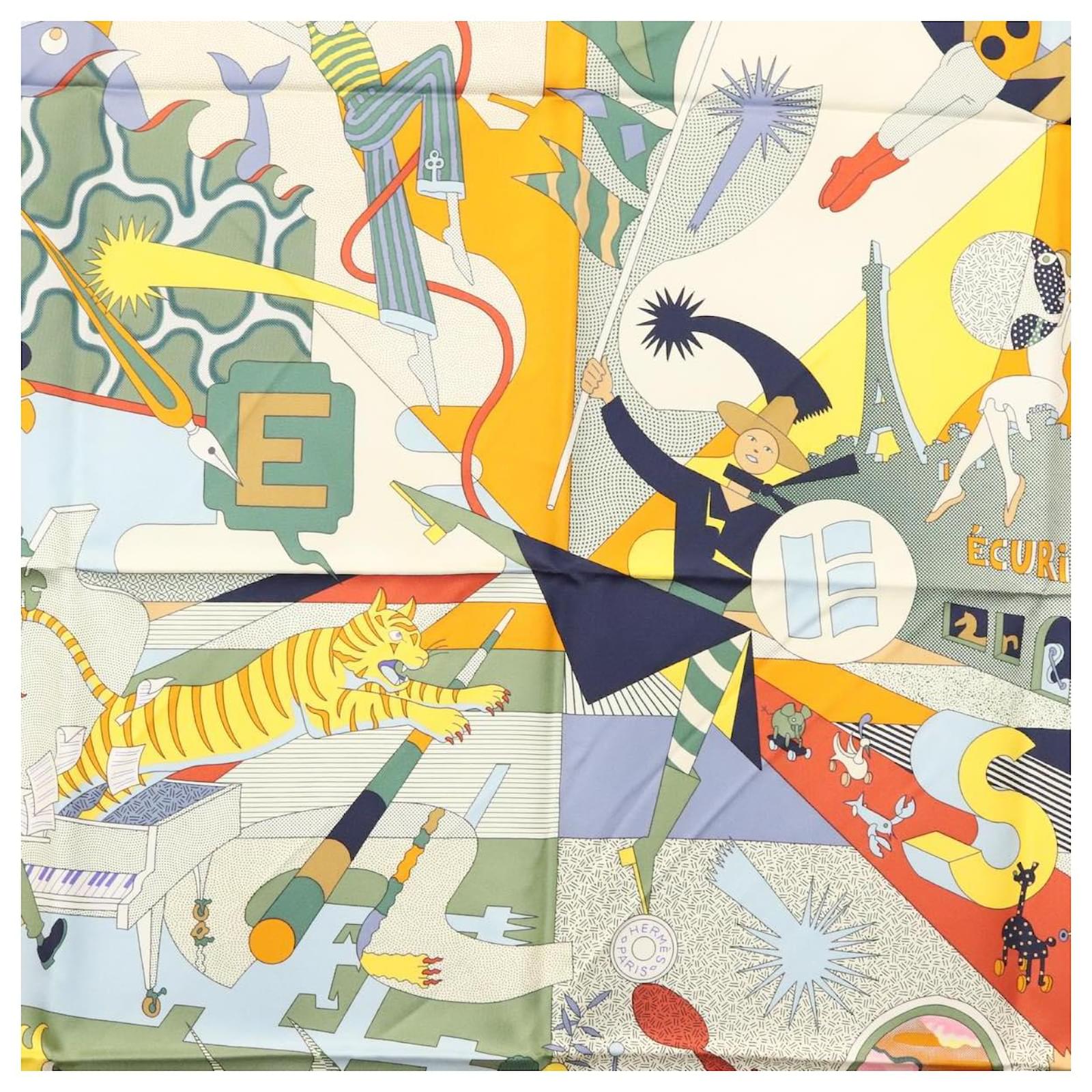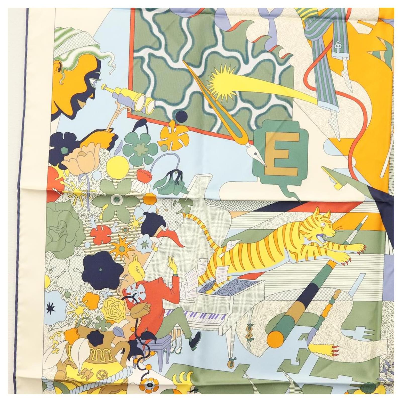 Hermès Écharpe HERMES Carré 90 ""CA DECOIFFE!"" Soie Beige Auth 137450M