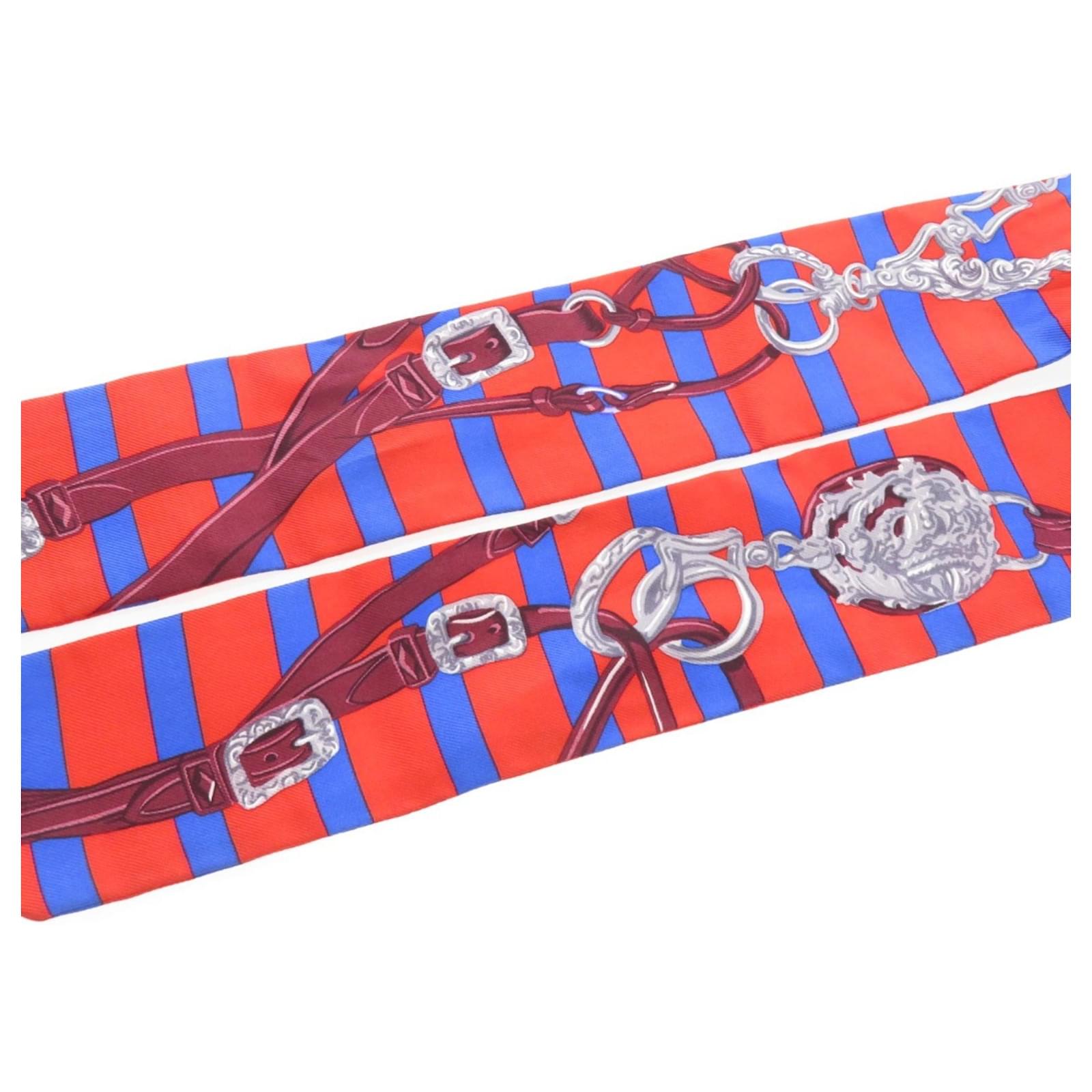 Ce foulard Twilly Hermès est fabriqué en soie et présente une couleur rouge vif, ce qui en fait un accessoire élégant pour les femmes. Mesurant 86 cm x 5 cm (environ 33,85'' x 1,96''), il est conçu pour être polyvalent. Le foulard est en très bon état, classé A, avec seulement de légères traces d'utilisation, y compris de légères plis de surface et quelques rayures. Aucun accessoire supplémentaire n'est inclus avec l'article. Les acheteurs potentiels sont encouragés à consulter les images pour une vue détaillée de l'état du foulard.