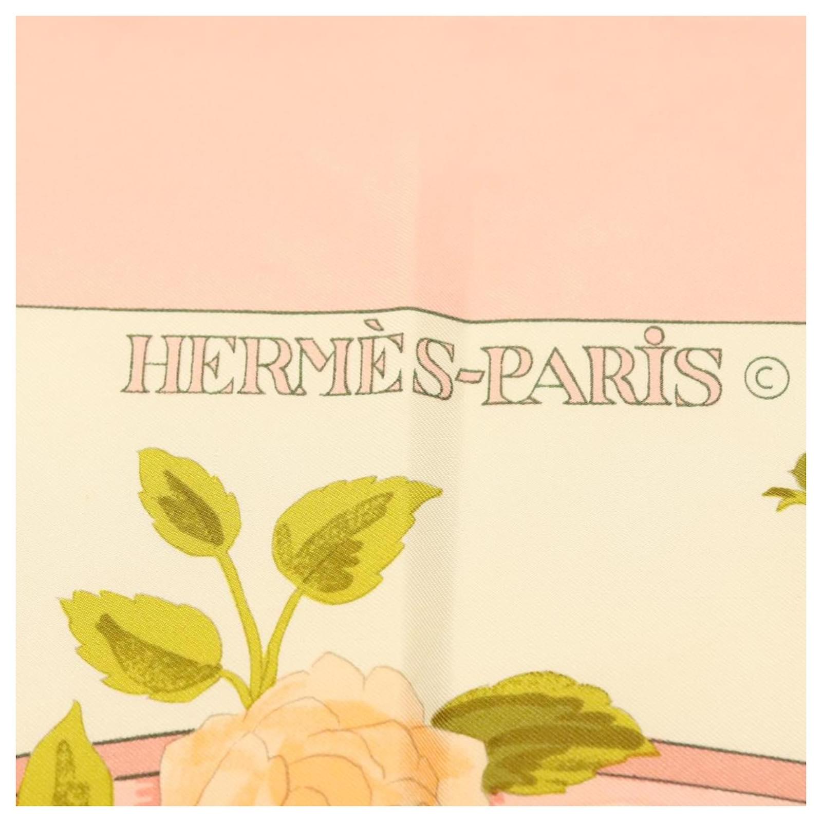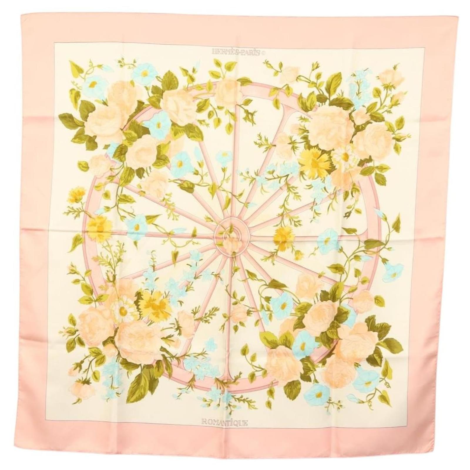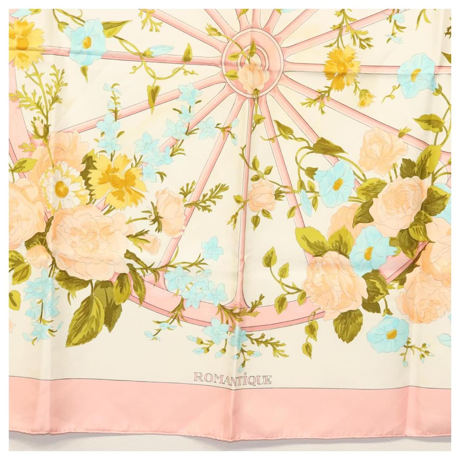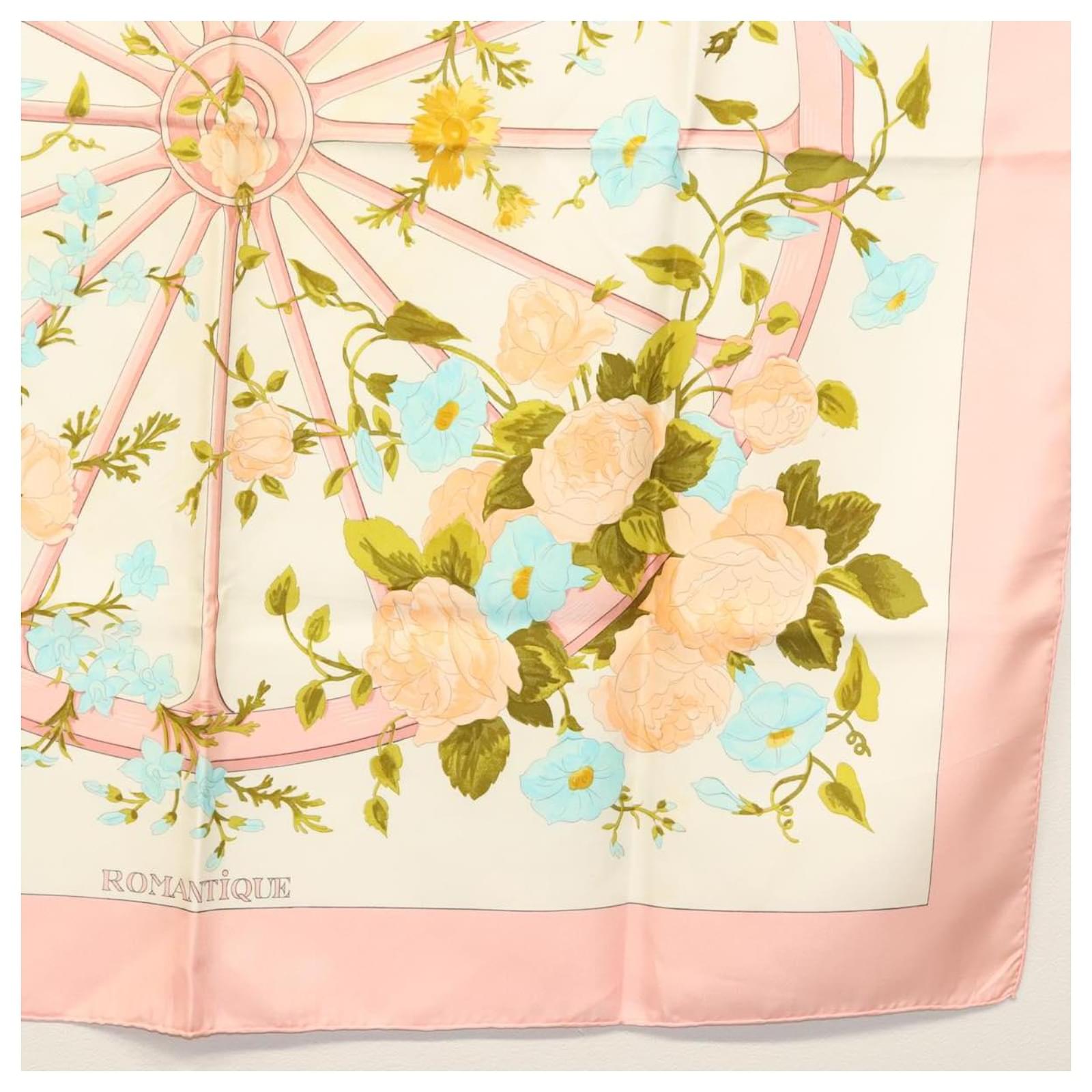 Hermès Foulard HERMES Carré 90 ""ROMANTIQUE"" Soie Rose Auth 134923