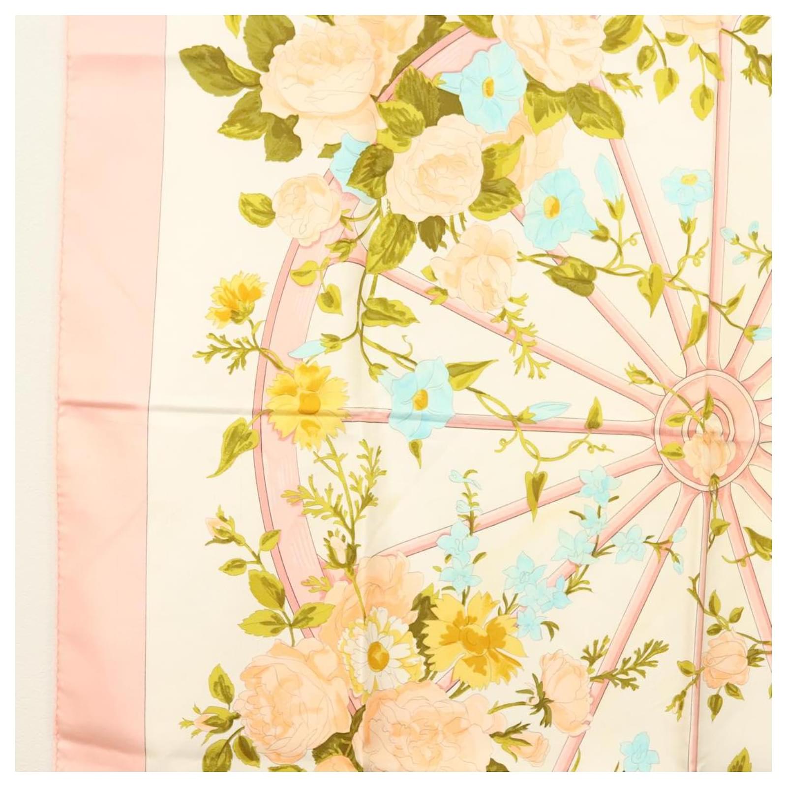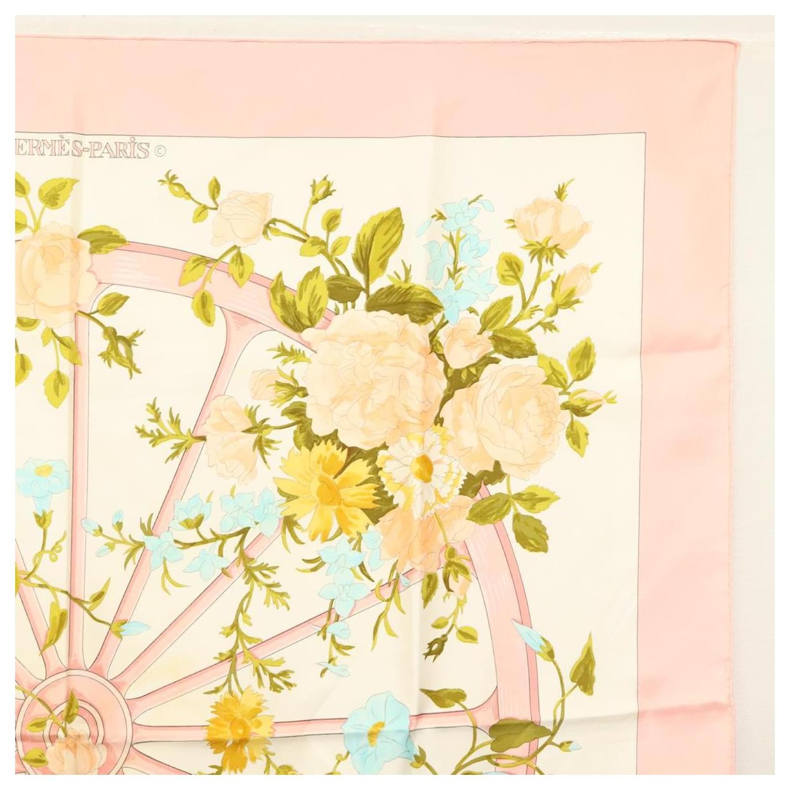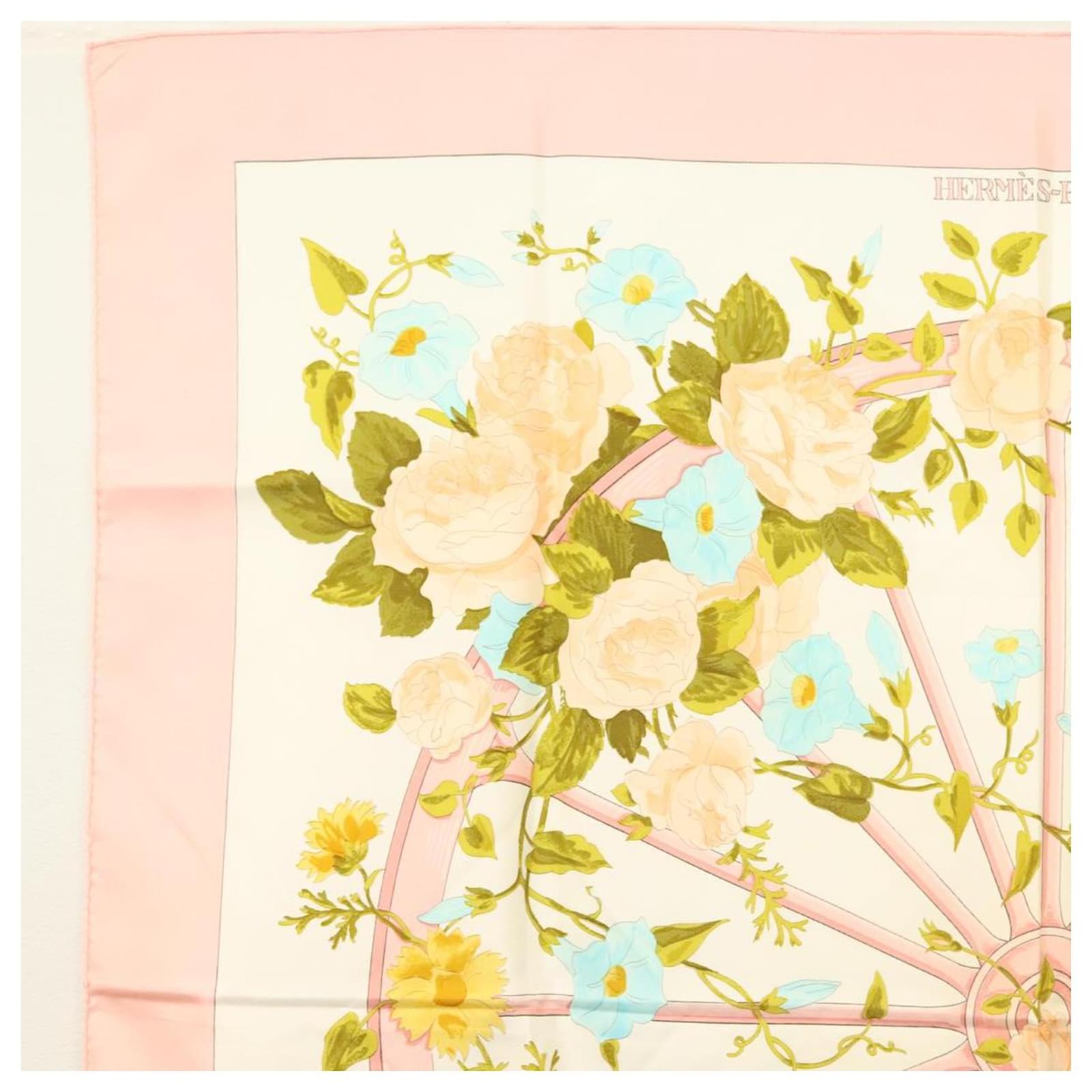 Hermès Foulard HERMES Carré 90 ""ROMANTIQUE"" Soie Rose Auth 134923