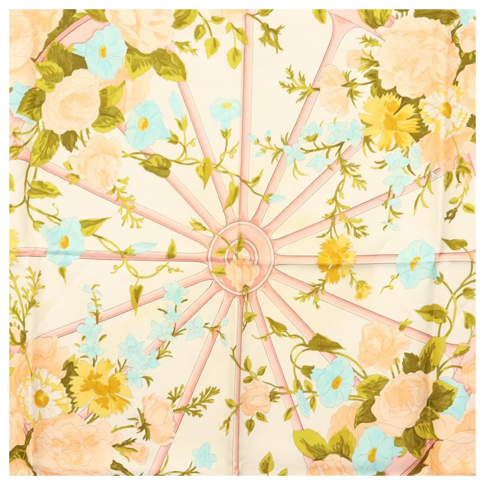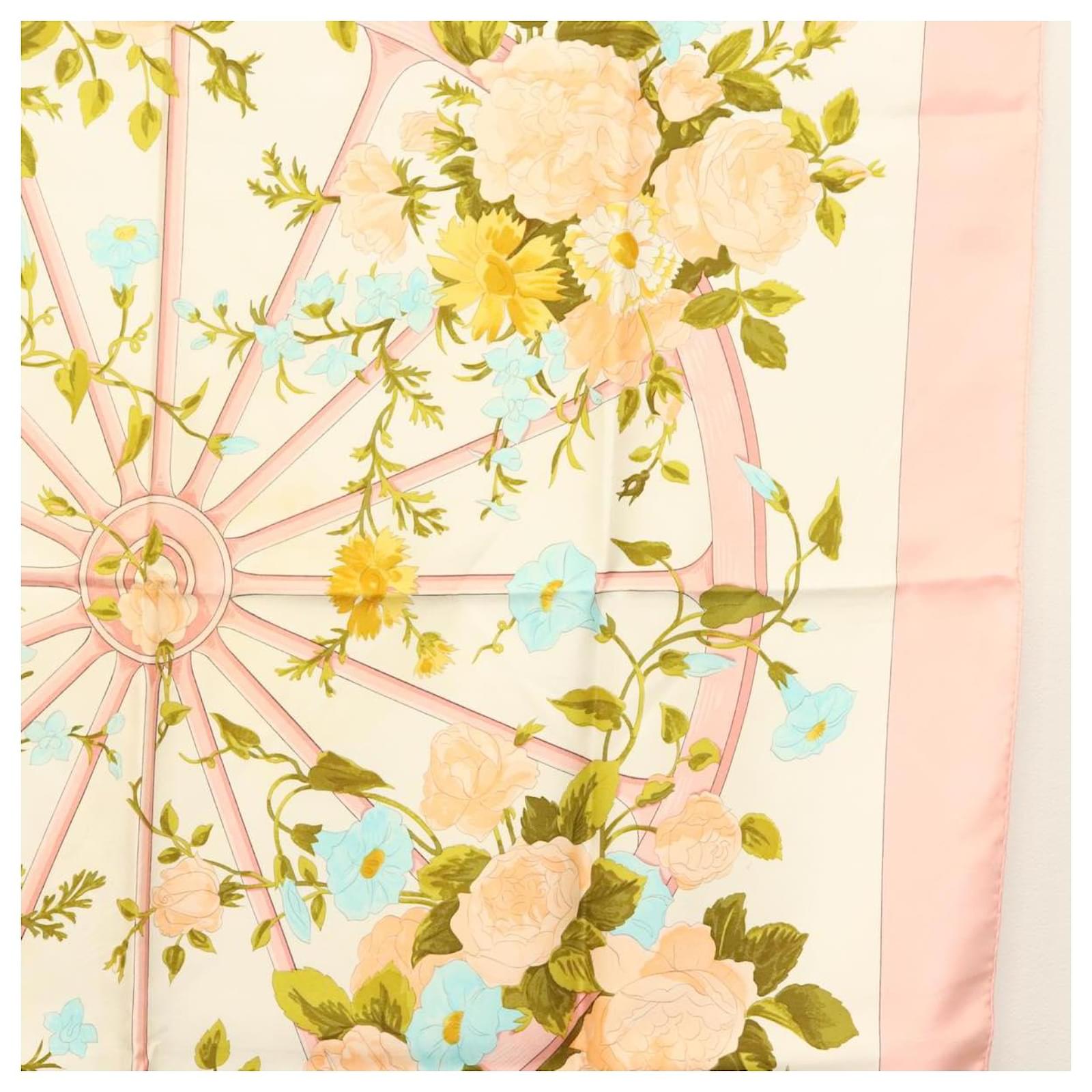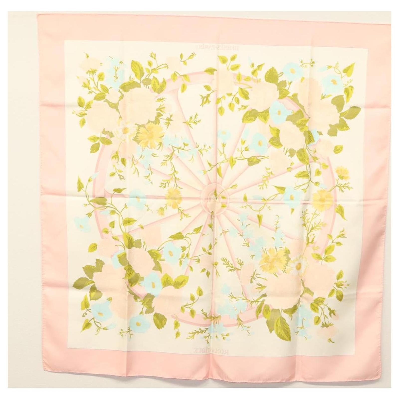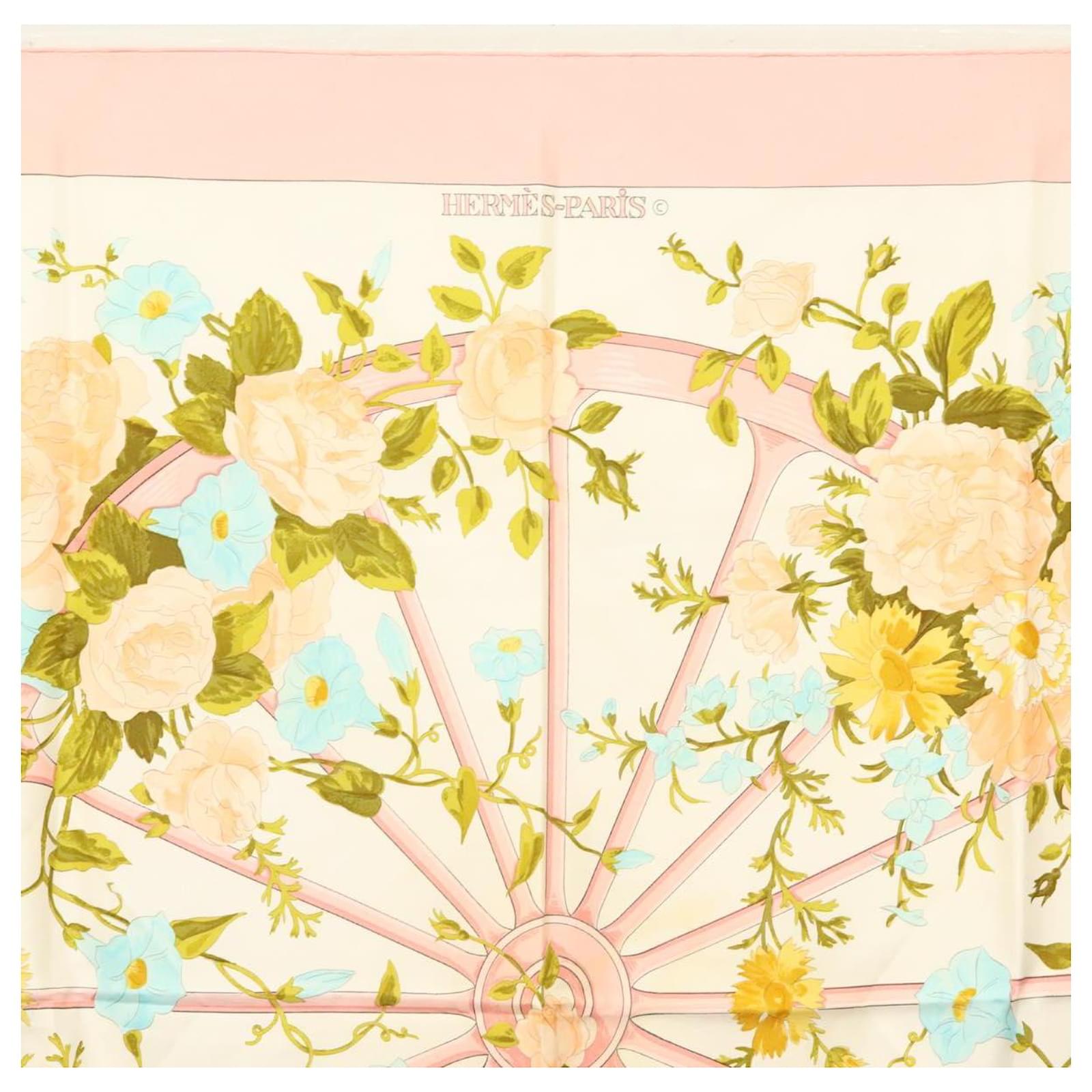 Hermès Foulard HERMES Carré 90 ""ROMANTIQUE"" Soie Rose Auth 134923