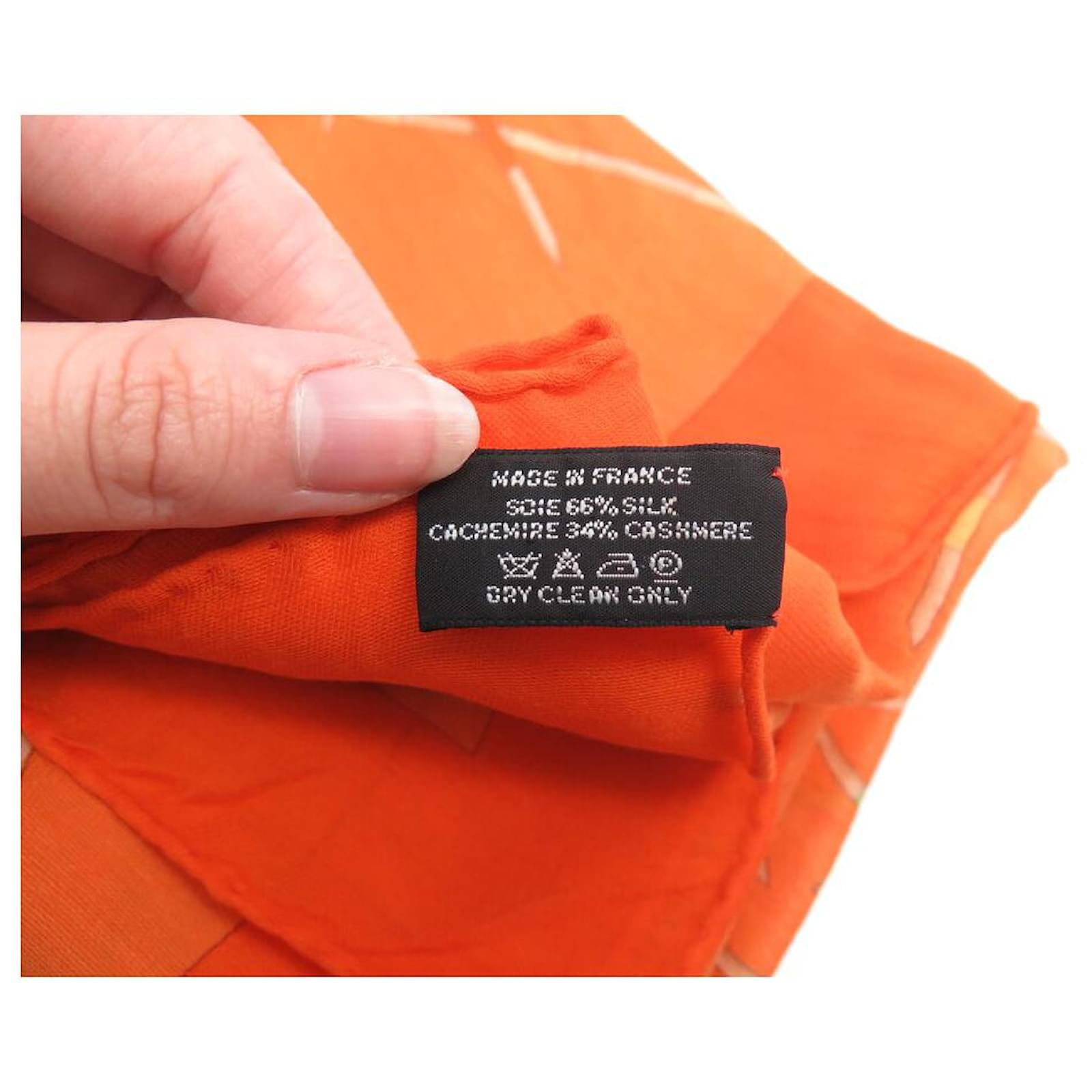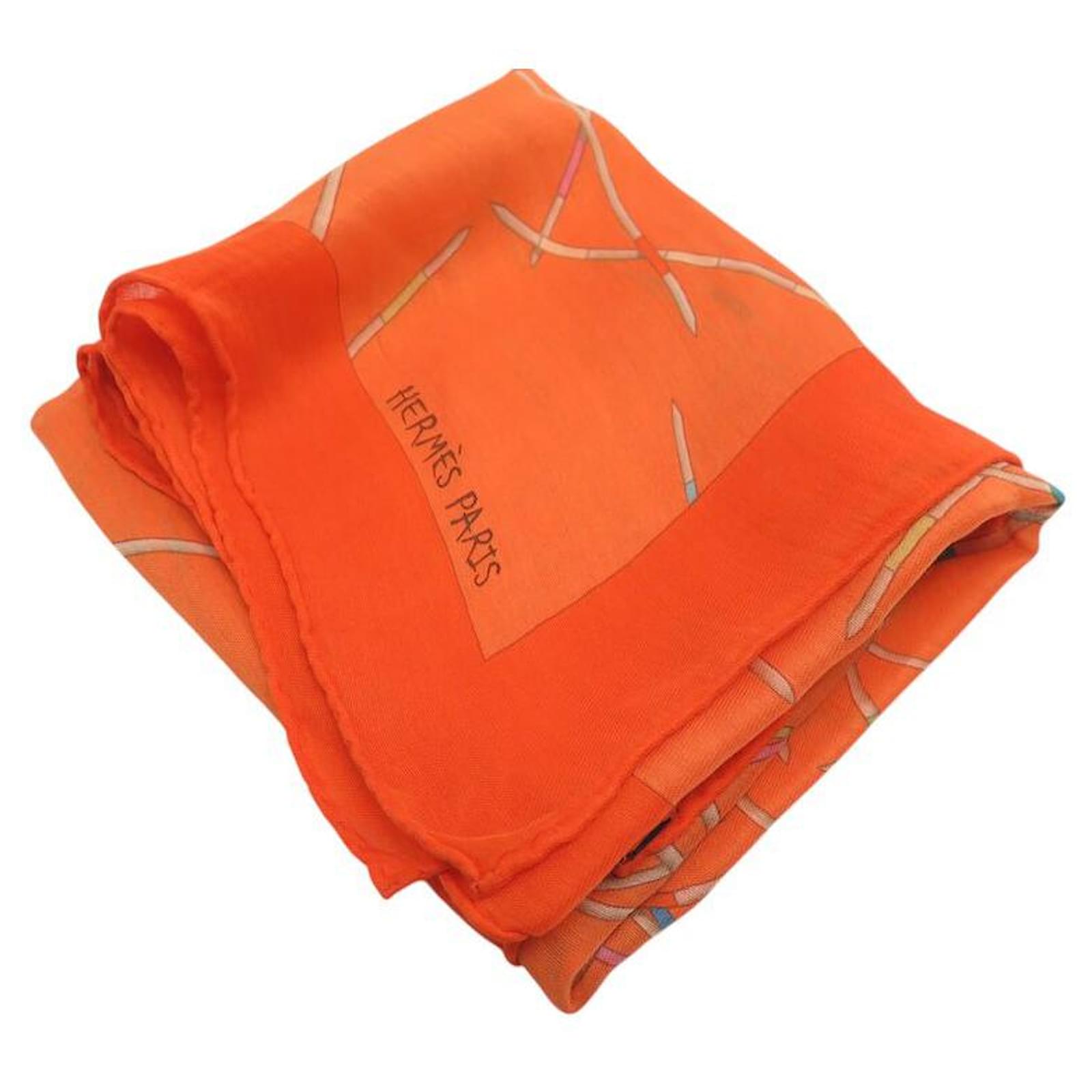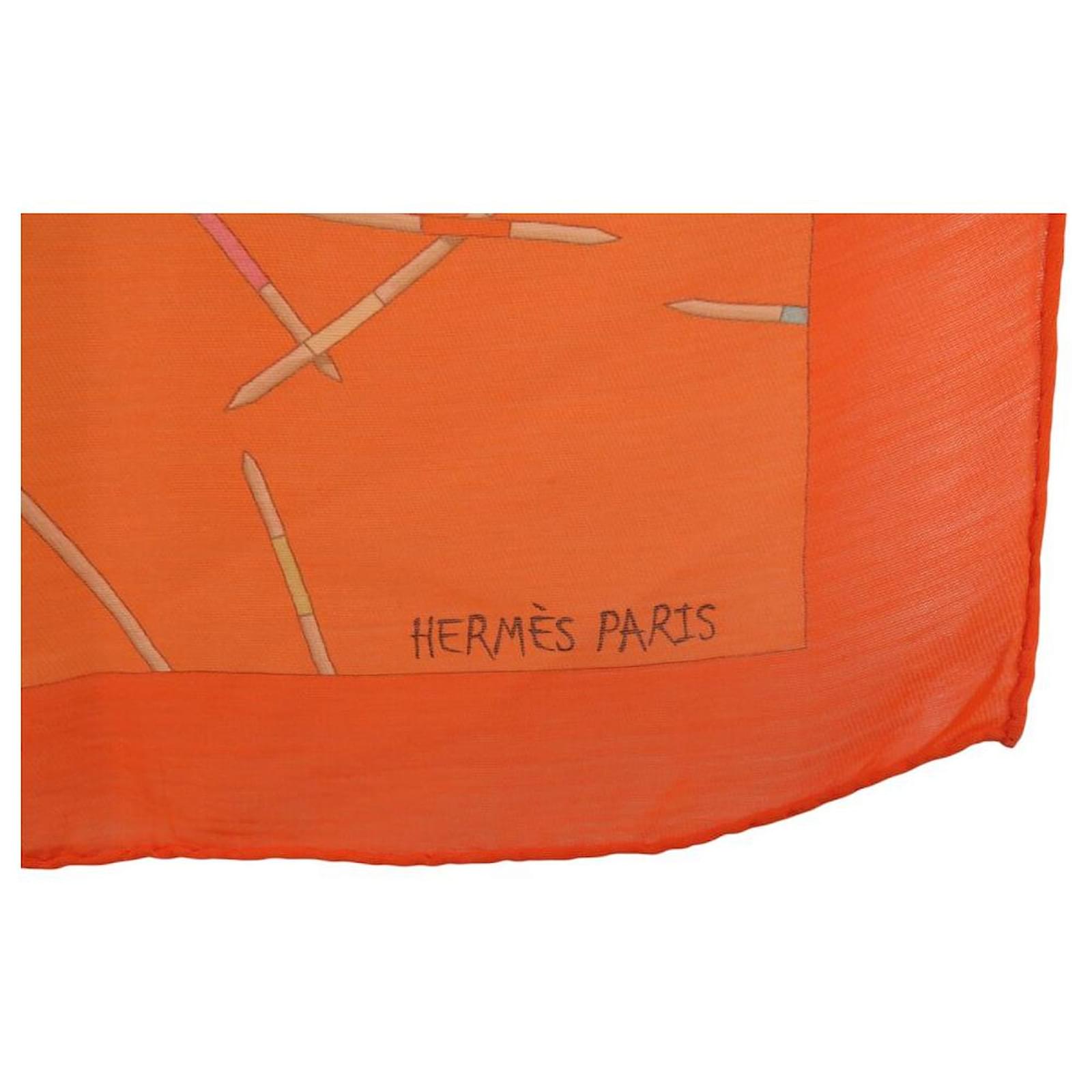Hermès FOULARD HERMES MIKADO CARRE 70 EN CACHEMIRE & SOIE ORANGE CASHMERE SILK SCARF