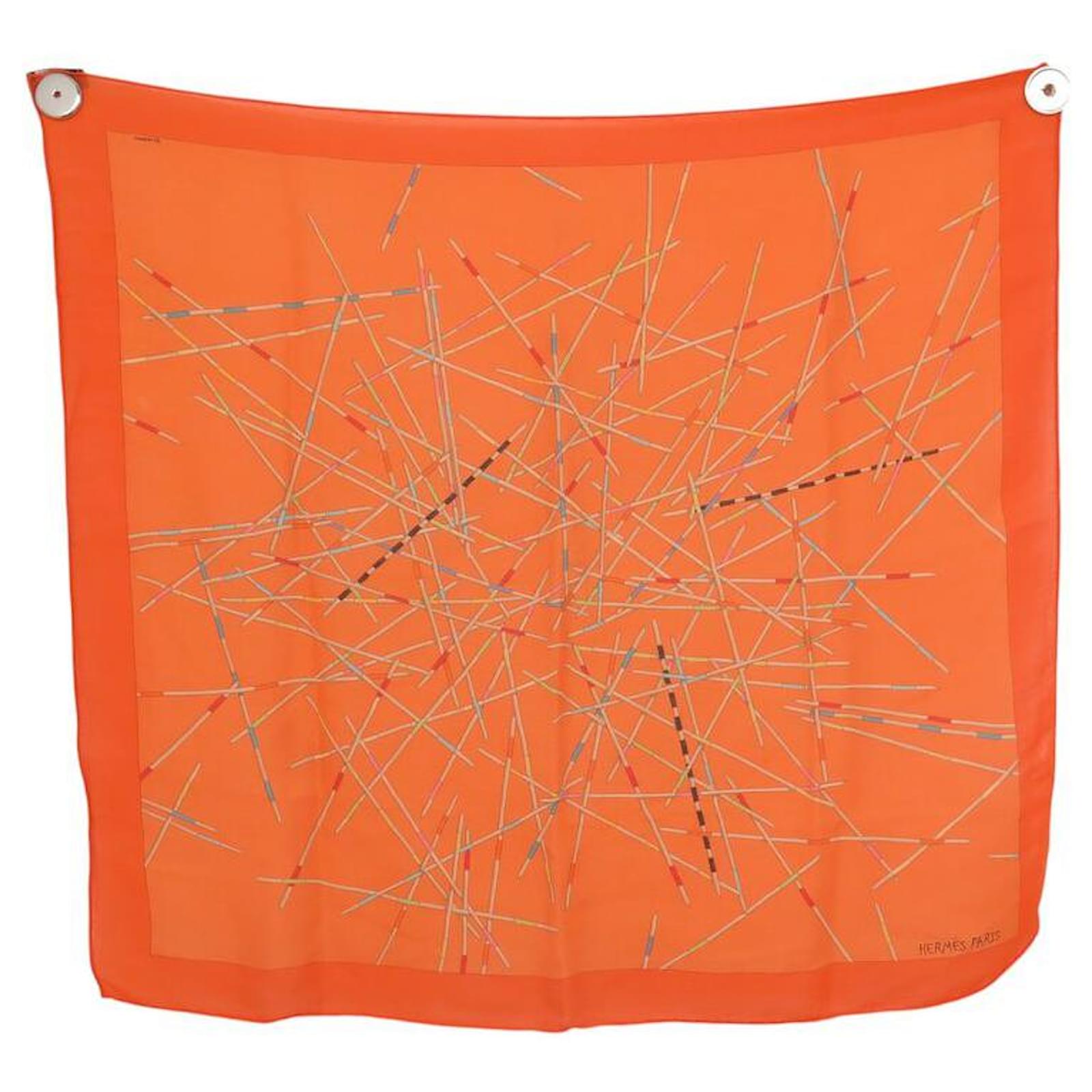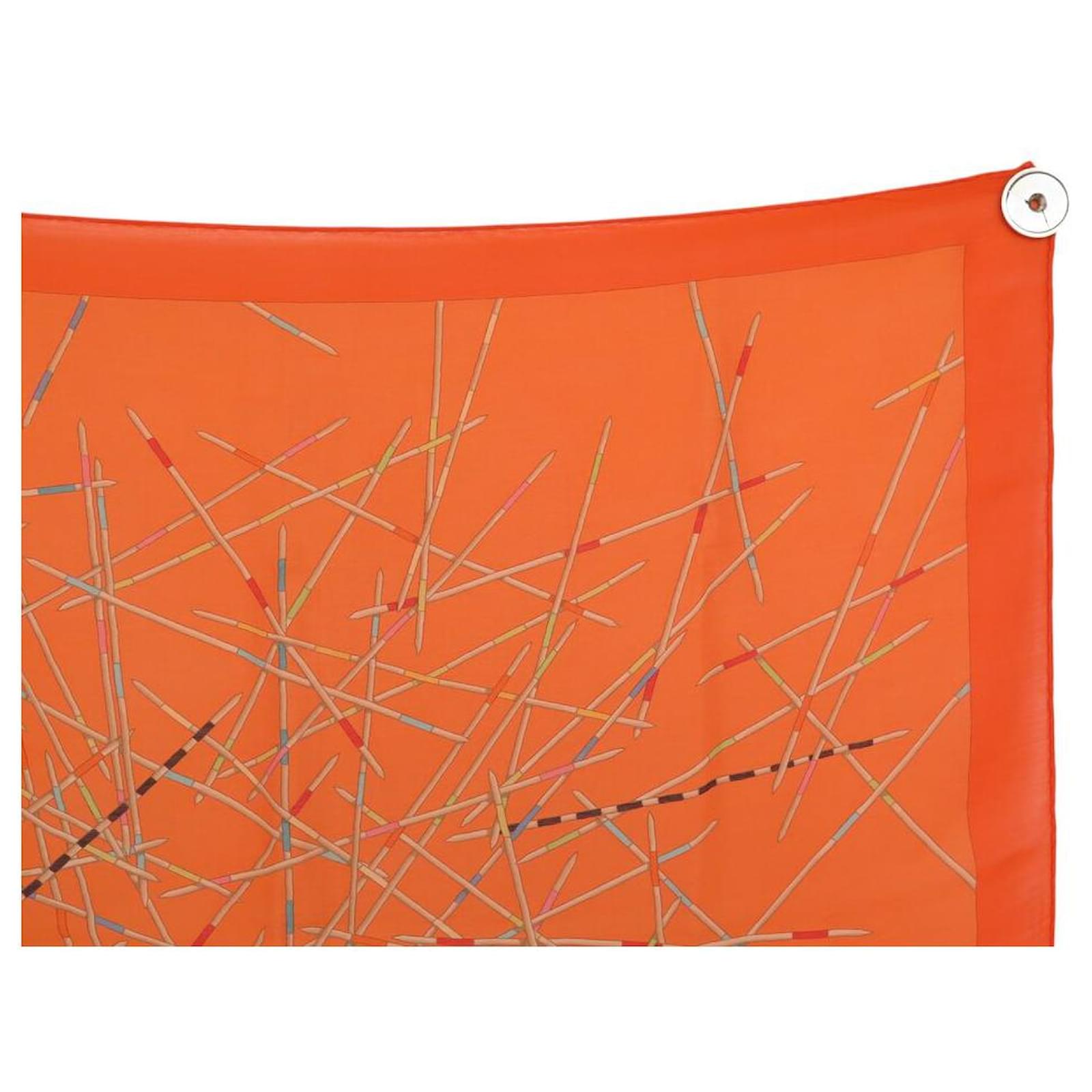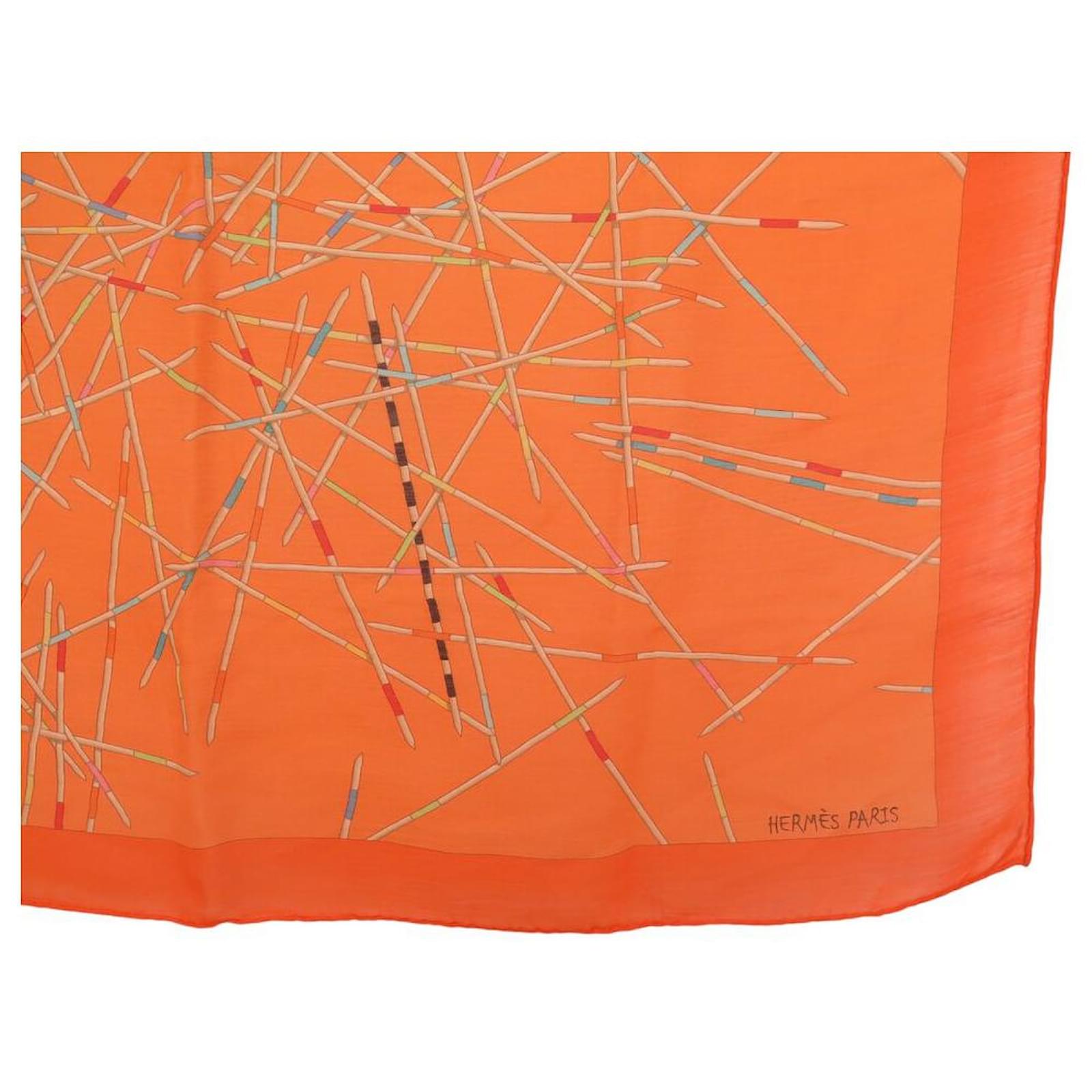 Hermès FOULARD HERMES MIKADO CARRE 70 EN CACHEMIRE & SOIE ORANGE CASHMERE SILK SCARF