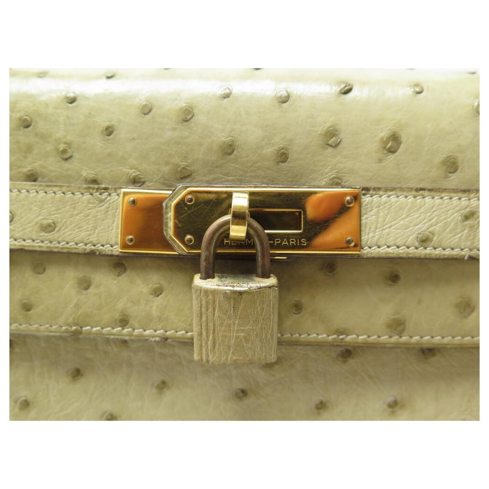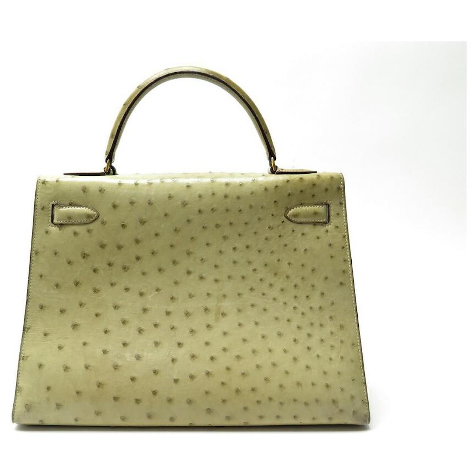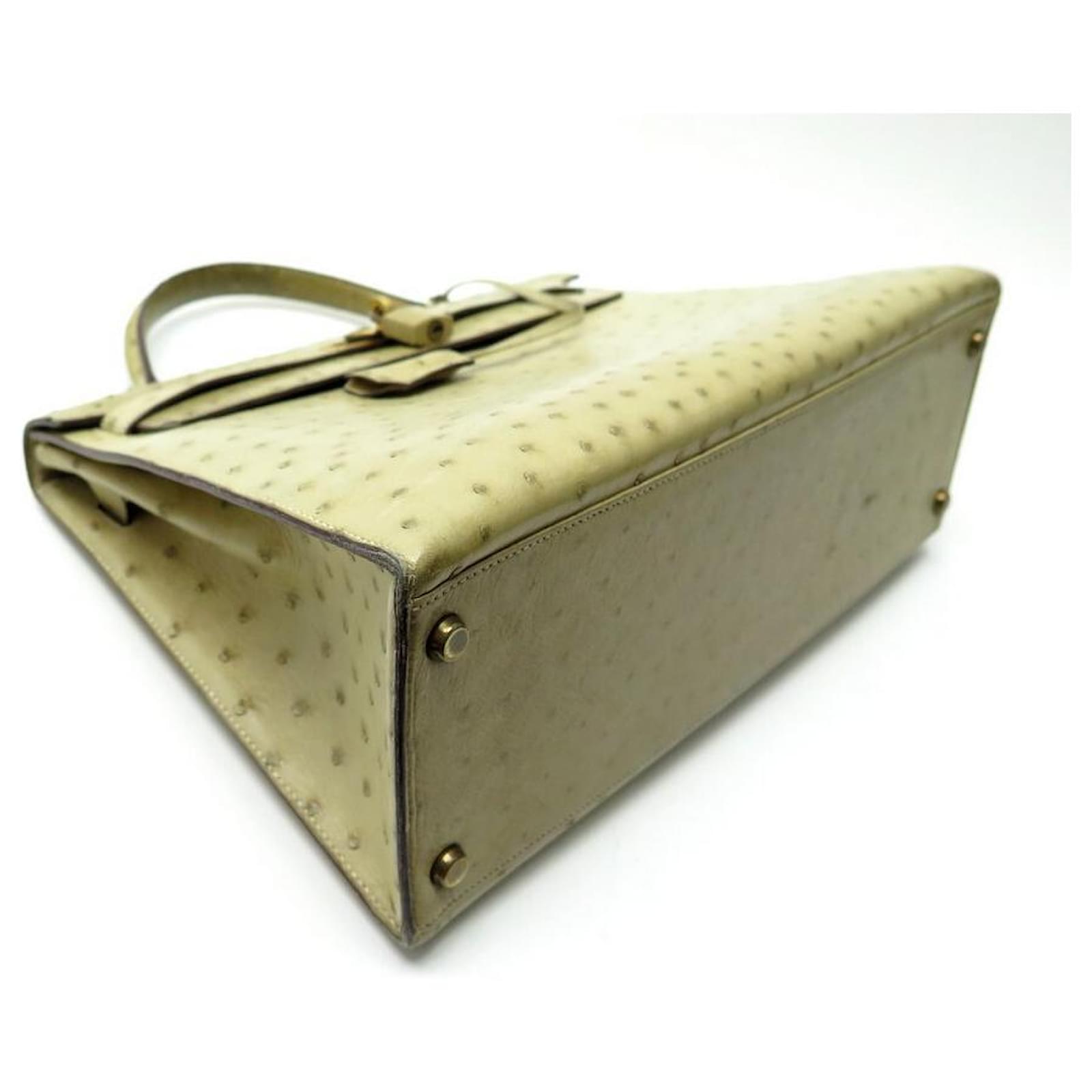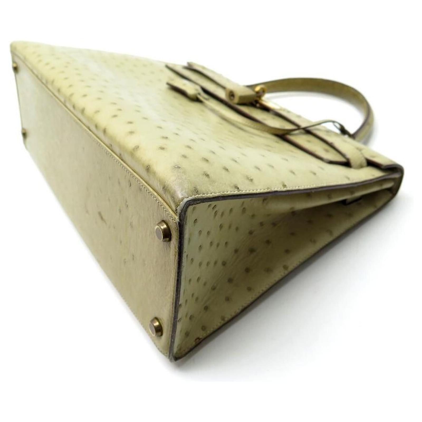 Hermès BOLSA HERMES KELLY 32 SELLIER DE CUIR DE AVESTRUZ TILLEUL VINTAGE Bege