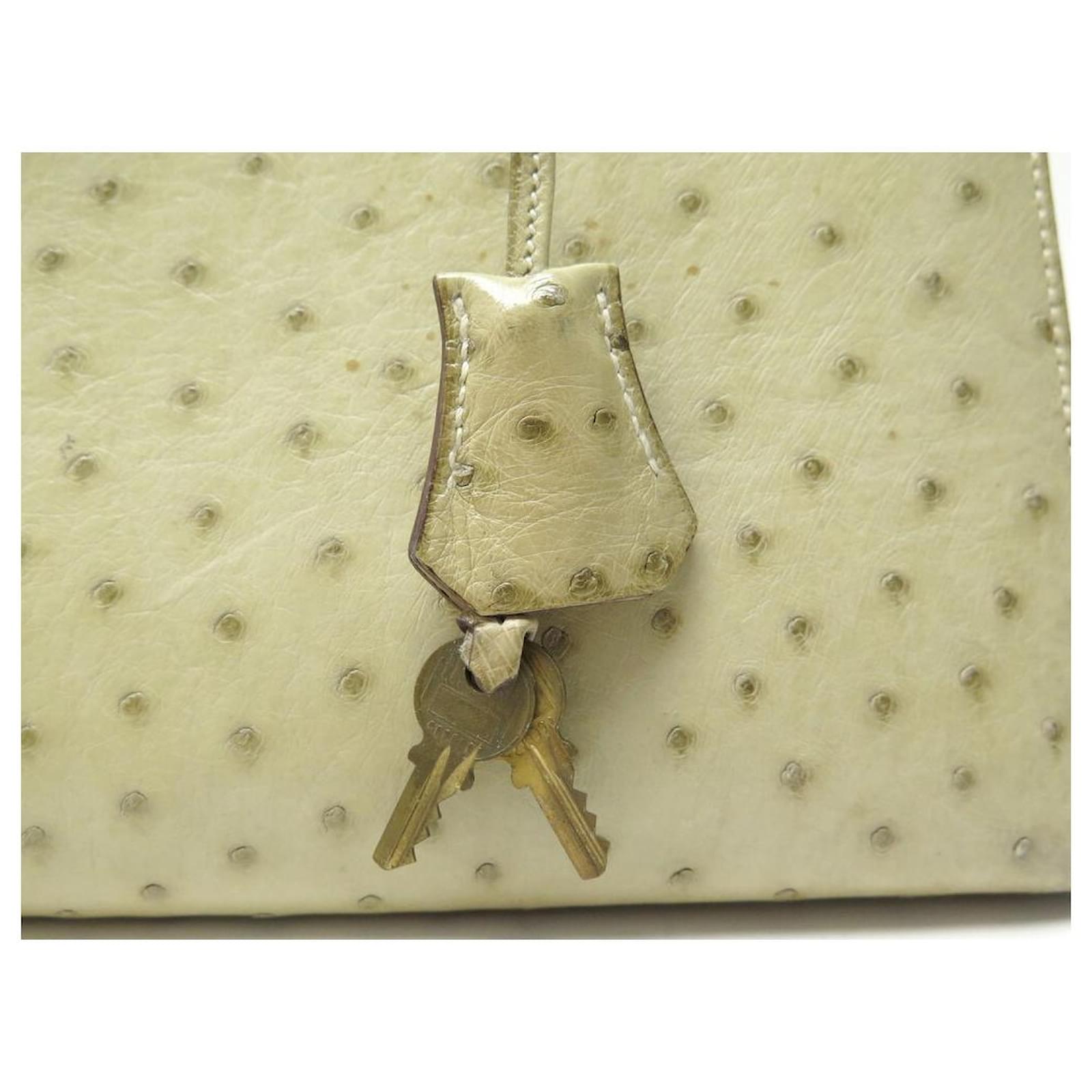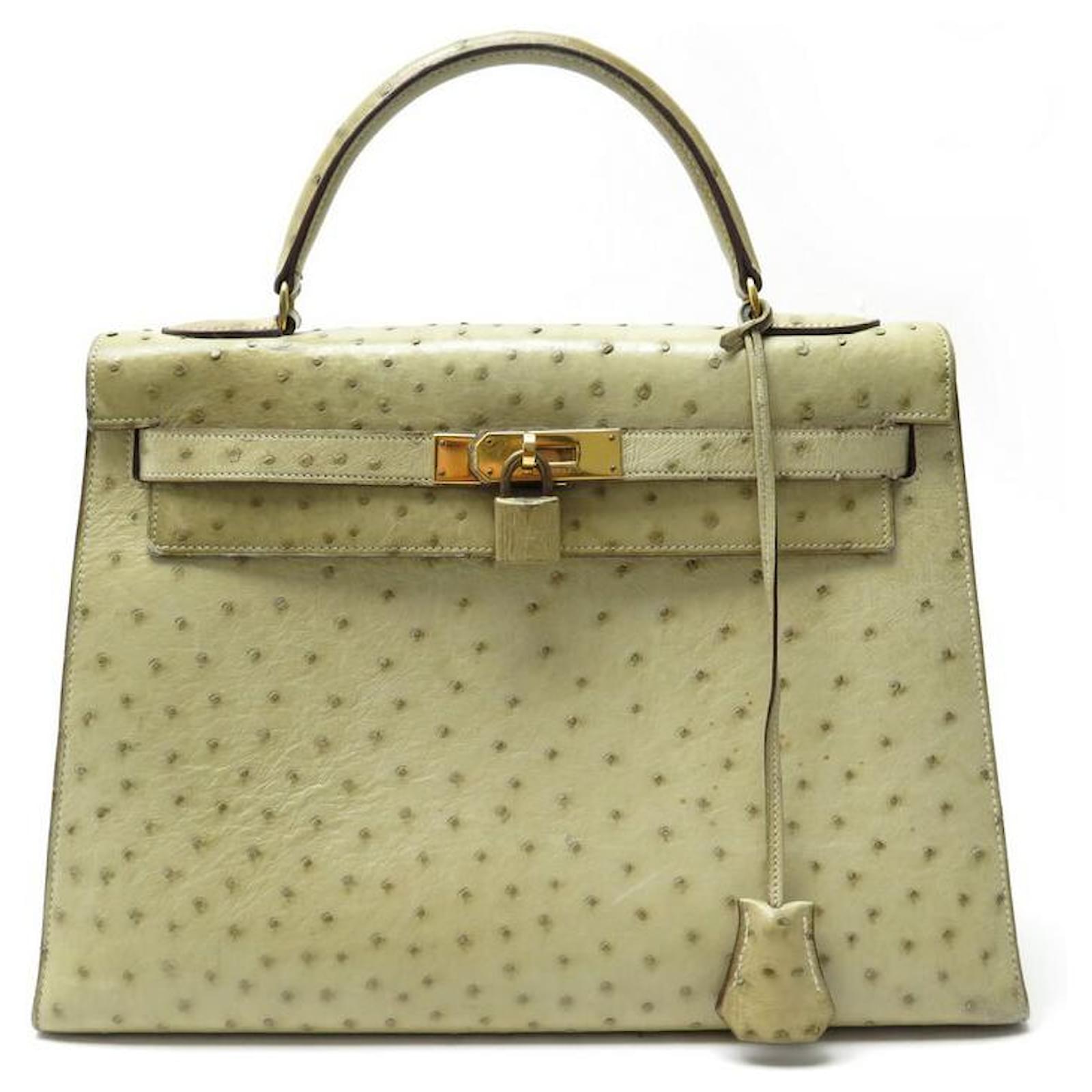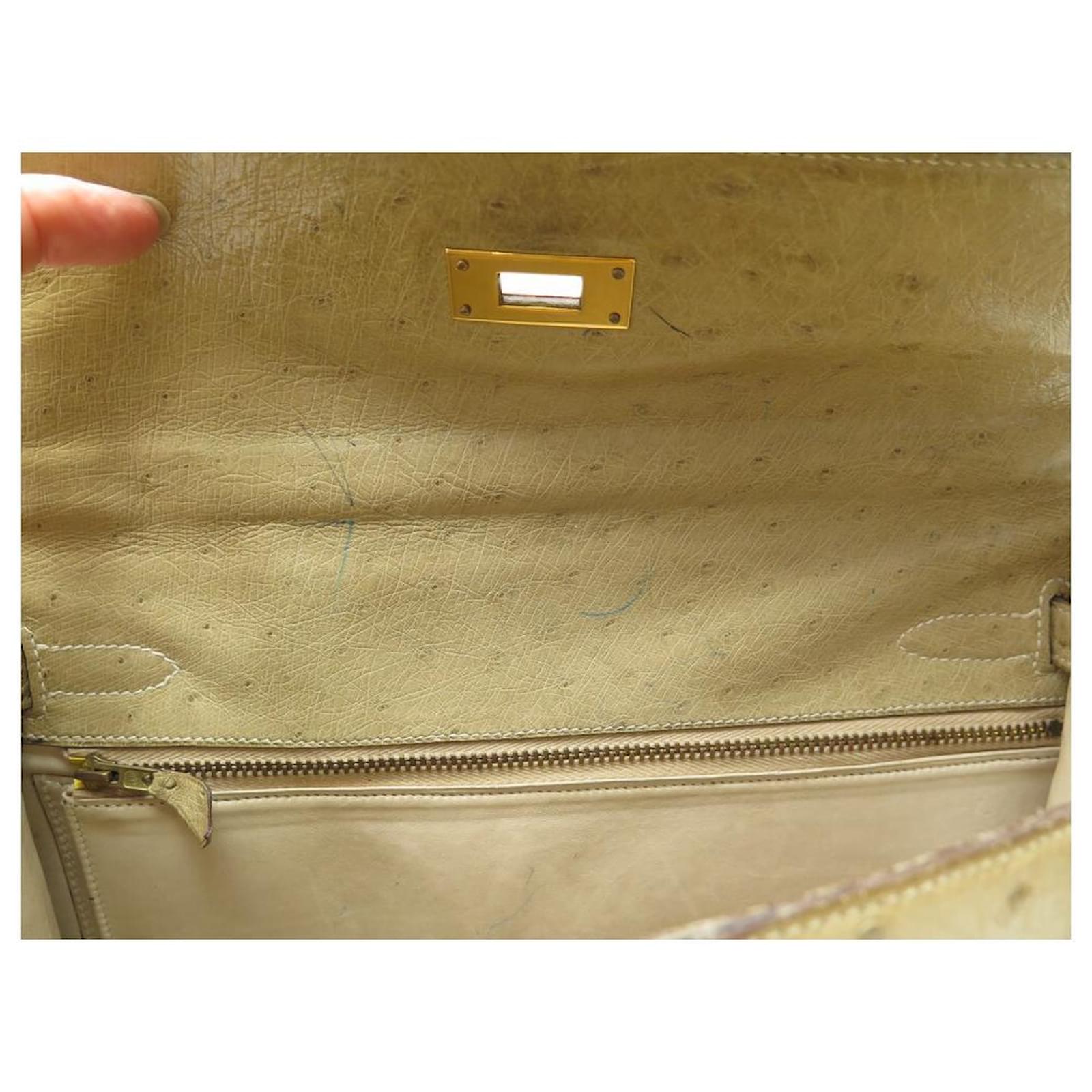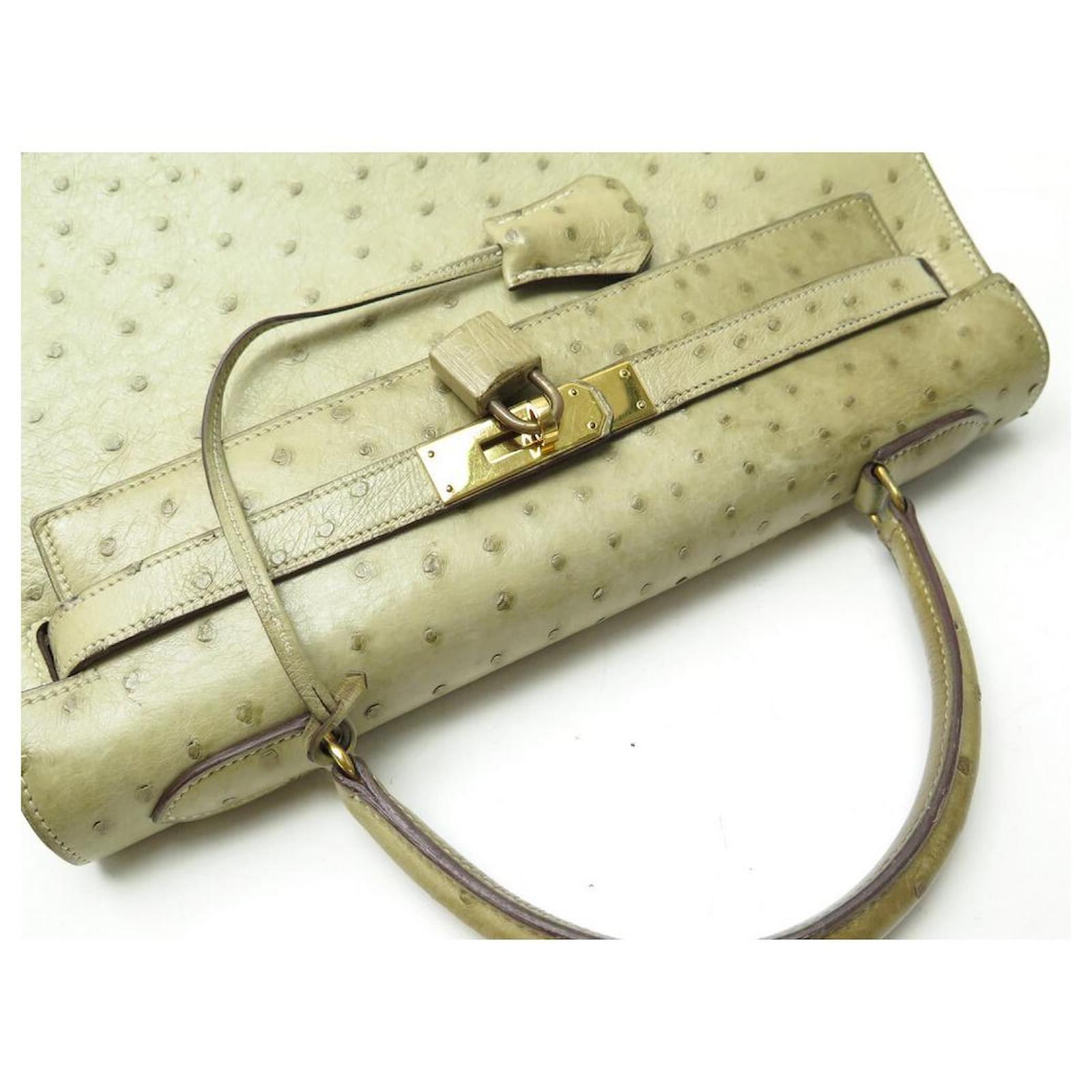 Hermès BOLSA HERMES KELLY 32 SELLIER DE CUIR DE AVESTRUZ TILLEUL VINTAGE Bege