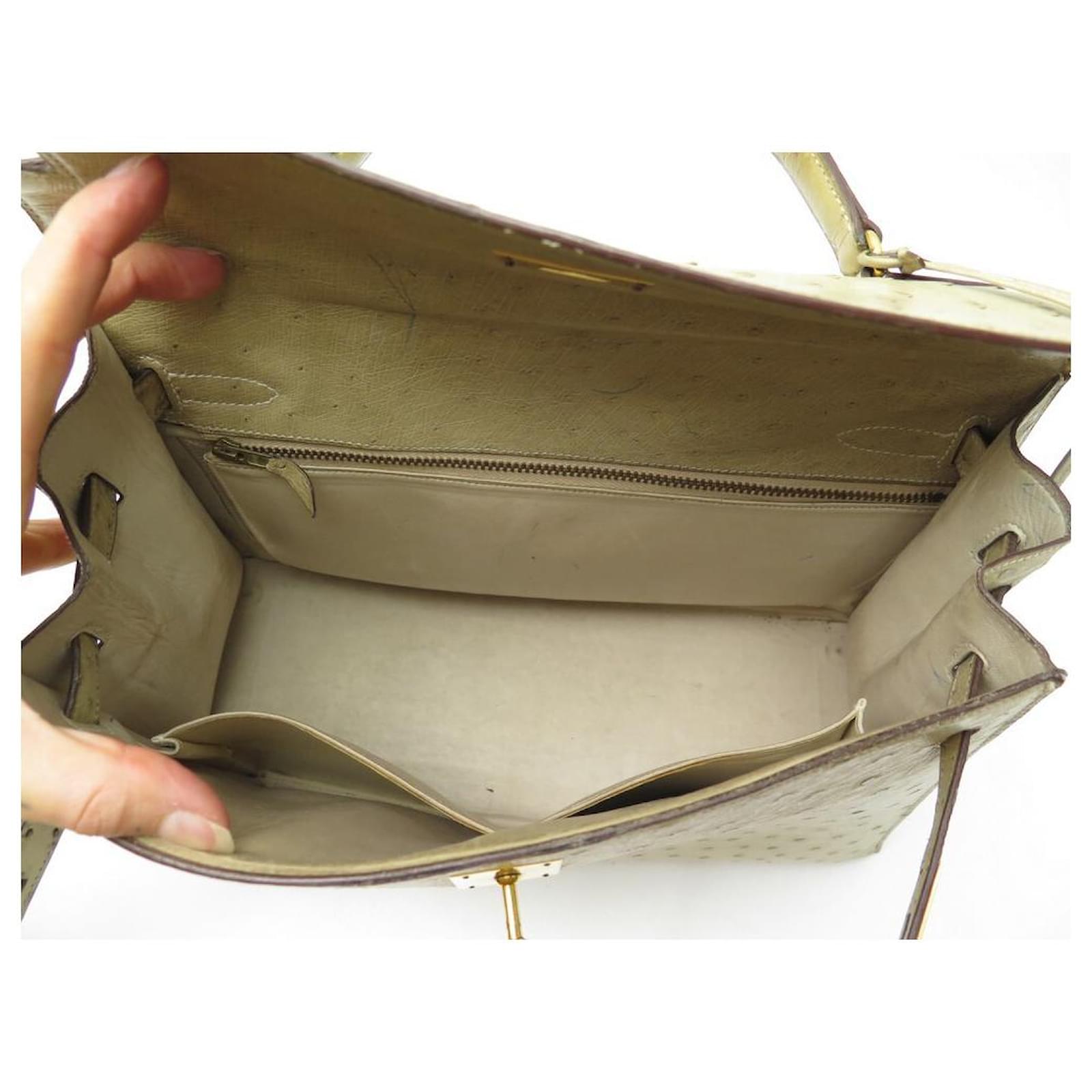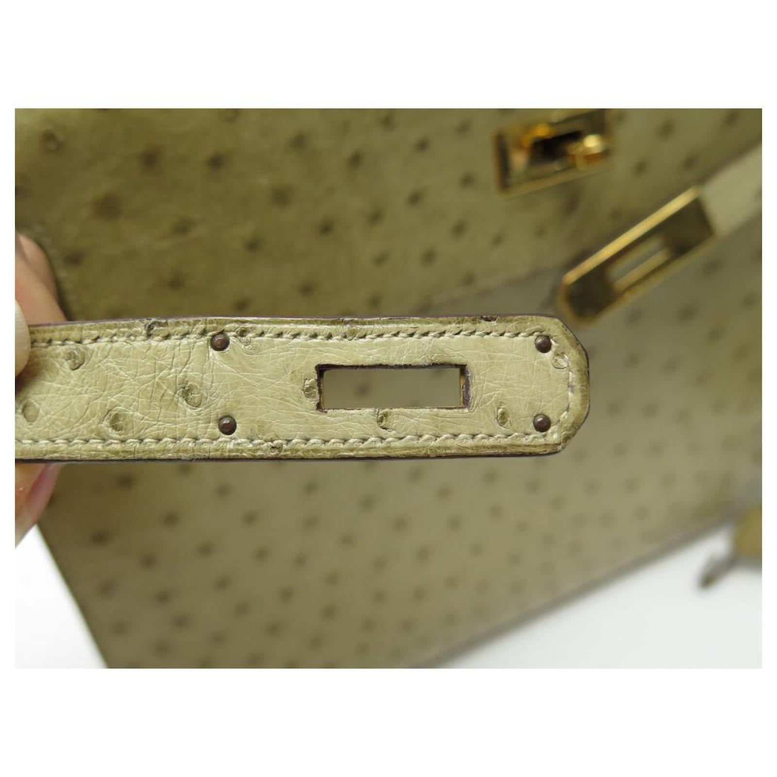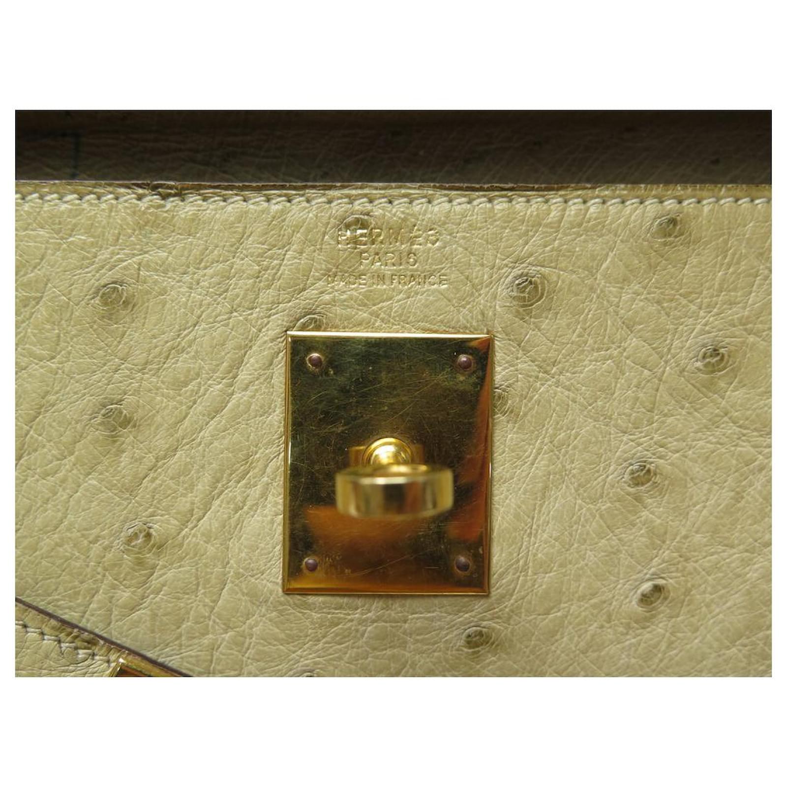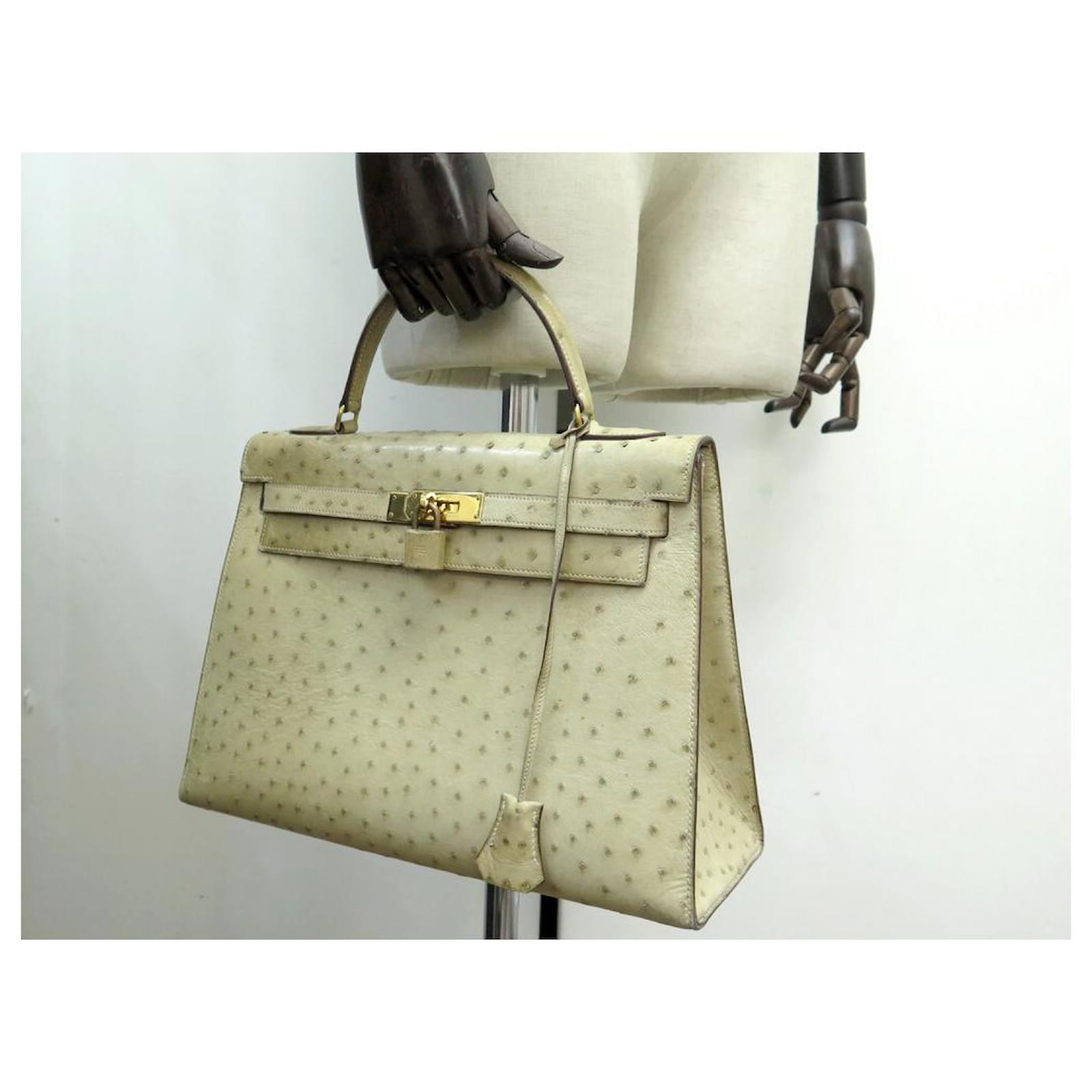 Hermès BOLSA HERMES KELLY 32 SELLIER DE CUIR DE AVESTRUZ TILLEUL VINTAGE Bege